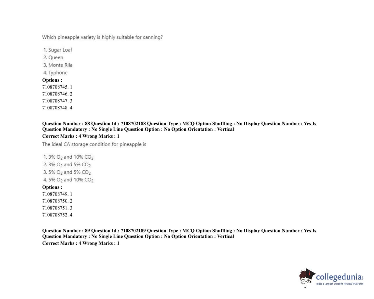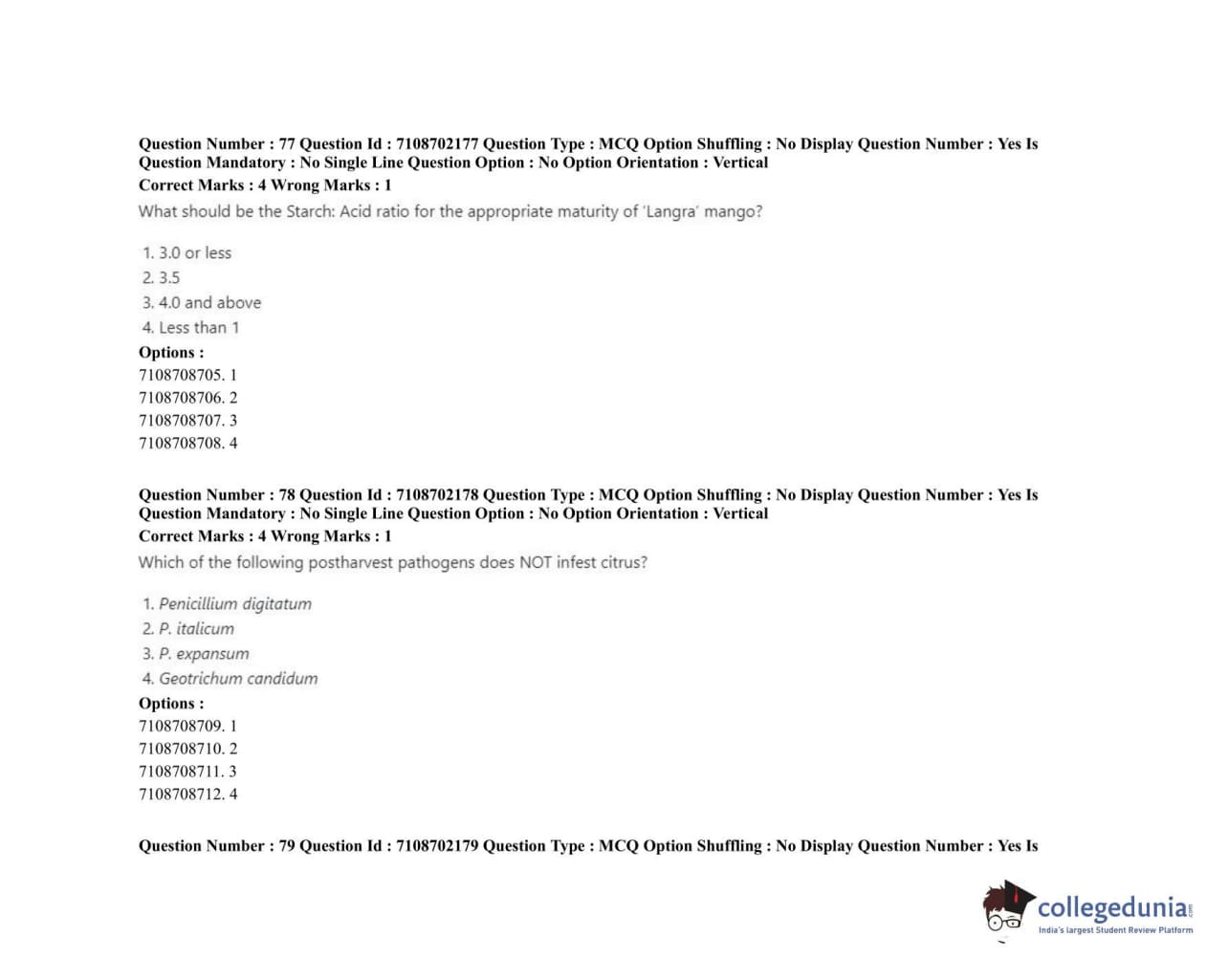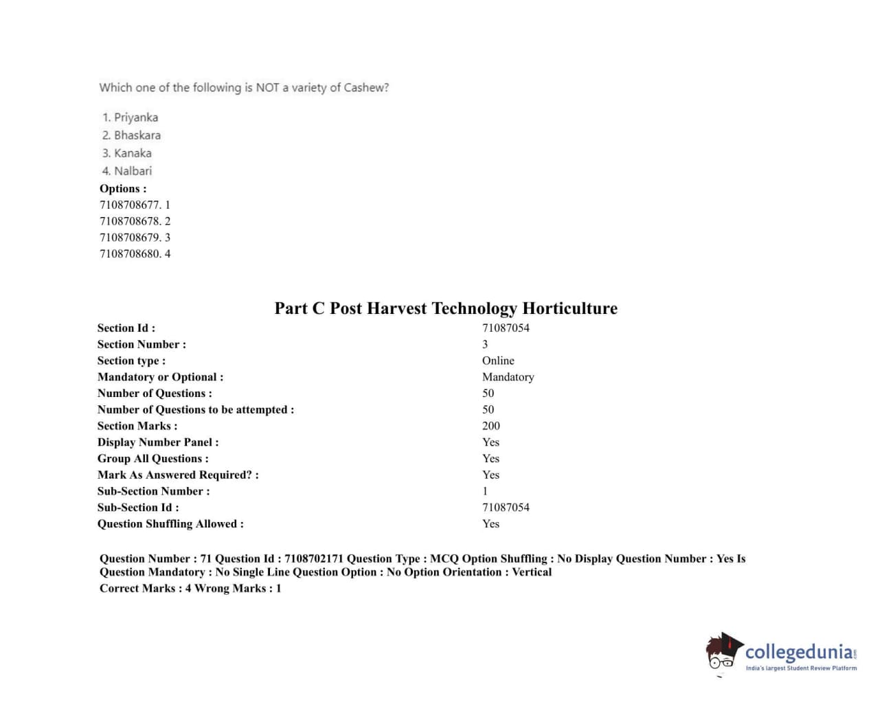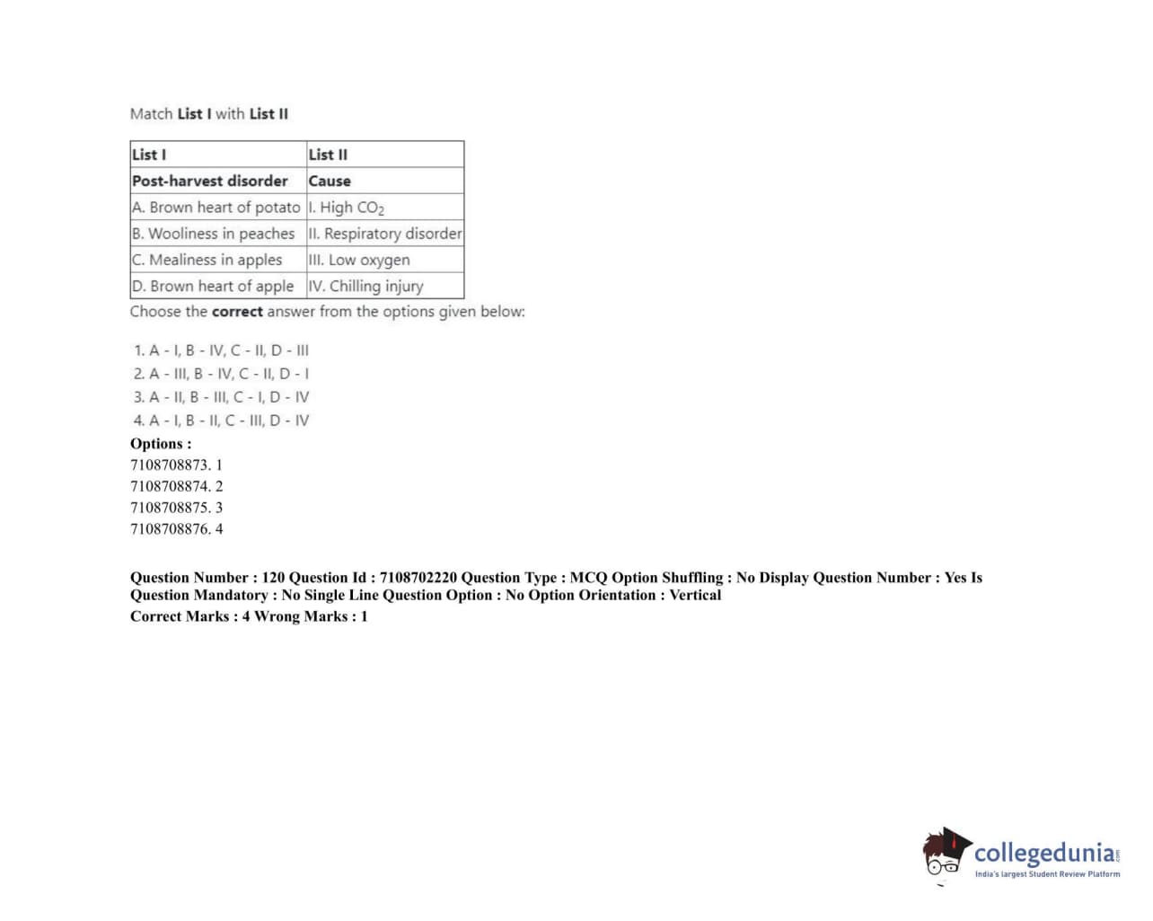 ICAR AIEEA 2020 JRF - POST HARVEST TECHNOLOGY HORTICULTURE Question Paper with Answer Key PDFs Afternoon Session
