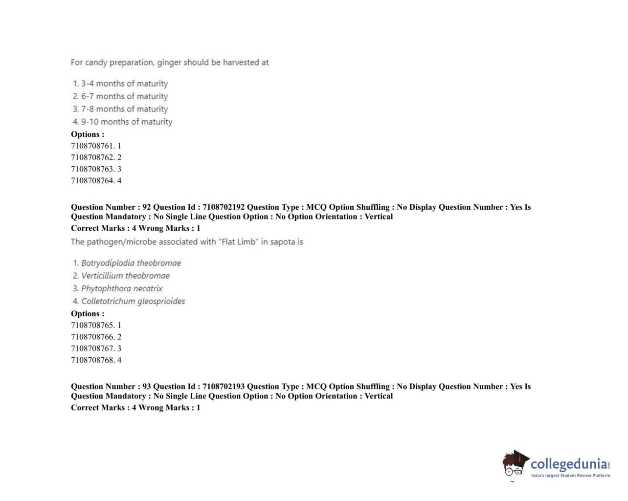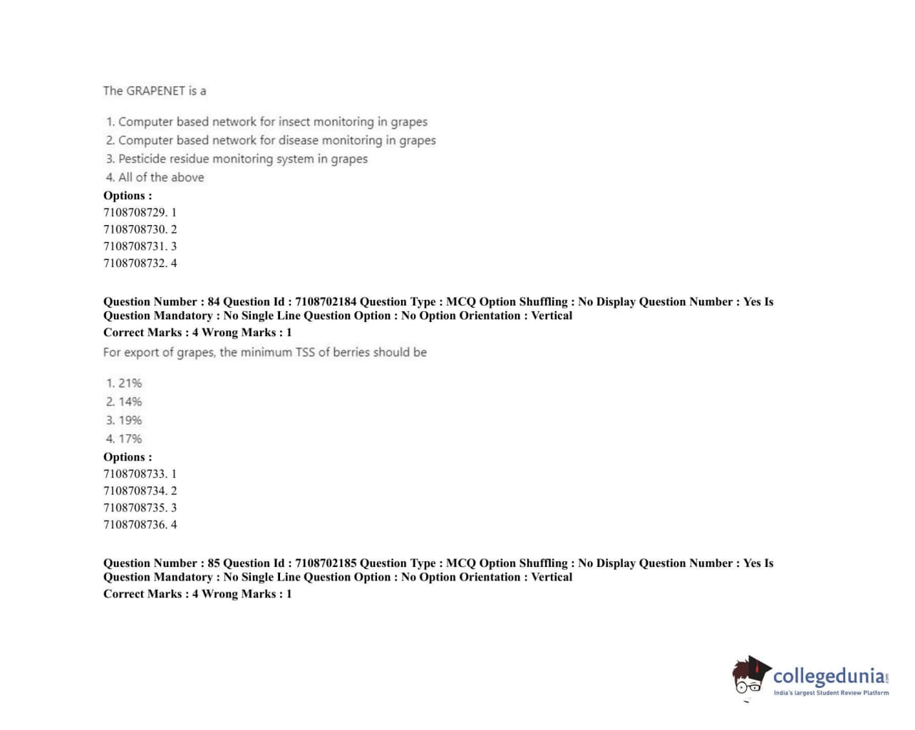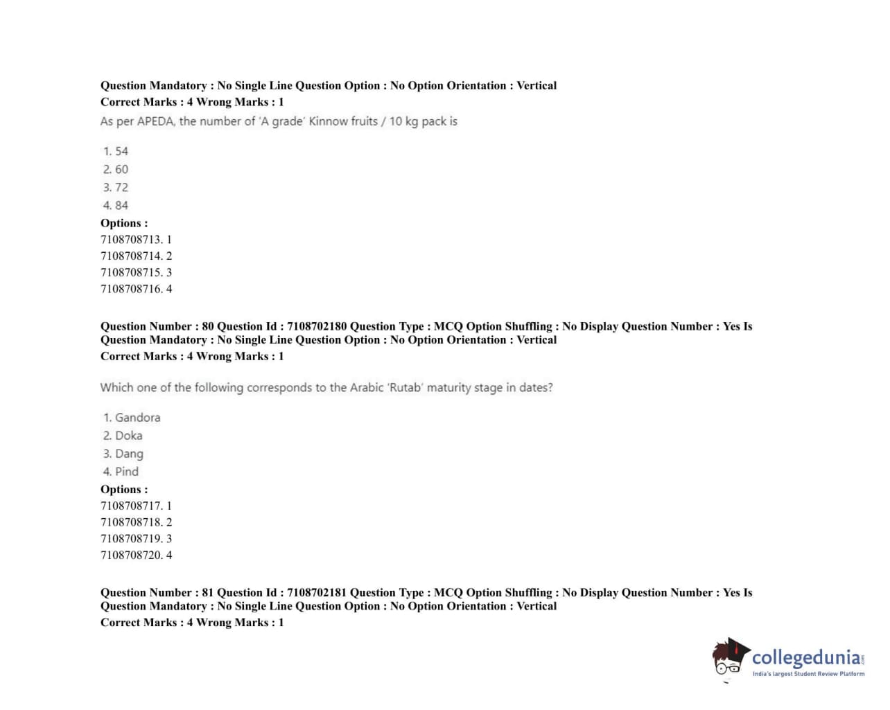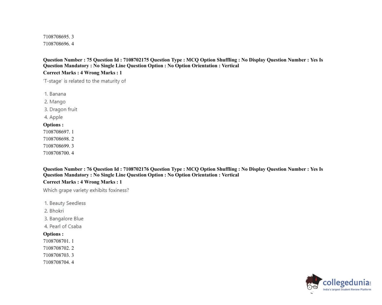 ICAR AIEEA 2020 JRF - POST HARVEST TECHNOLOGY HORTICULTURE Question Paper with Answer Key PDFs Afternoon Session