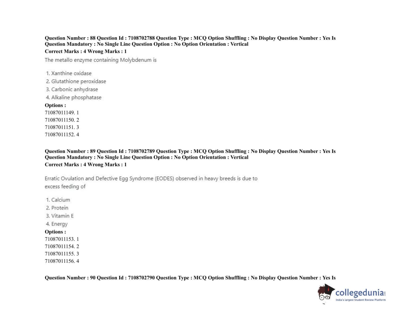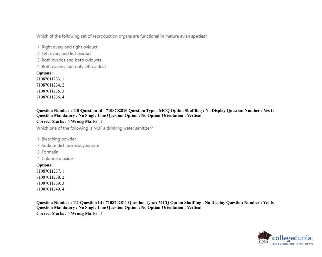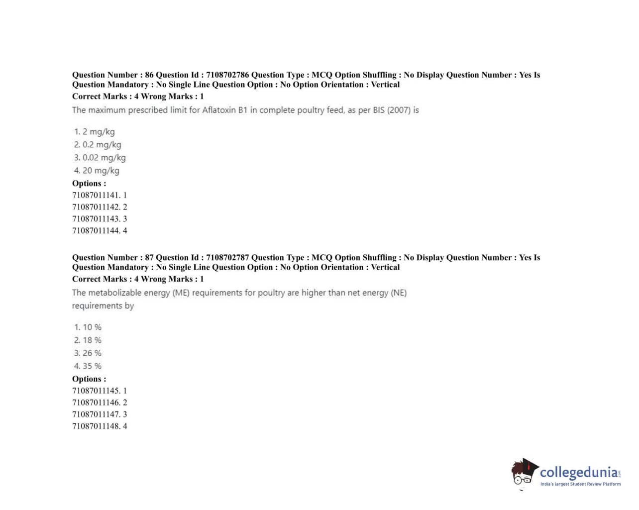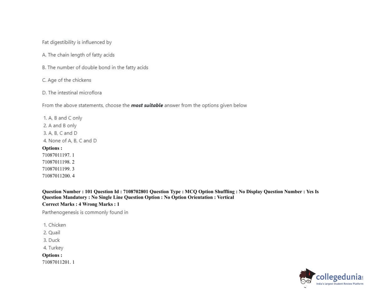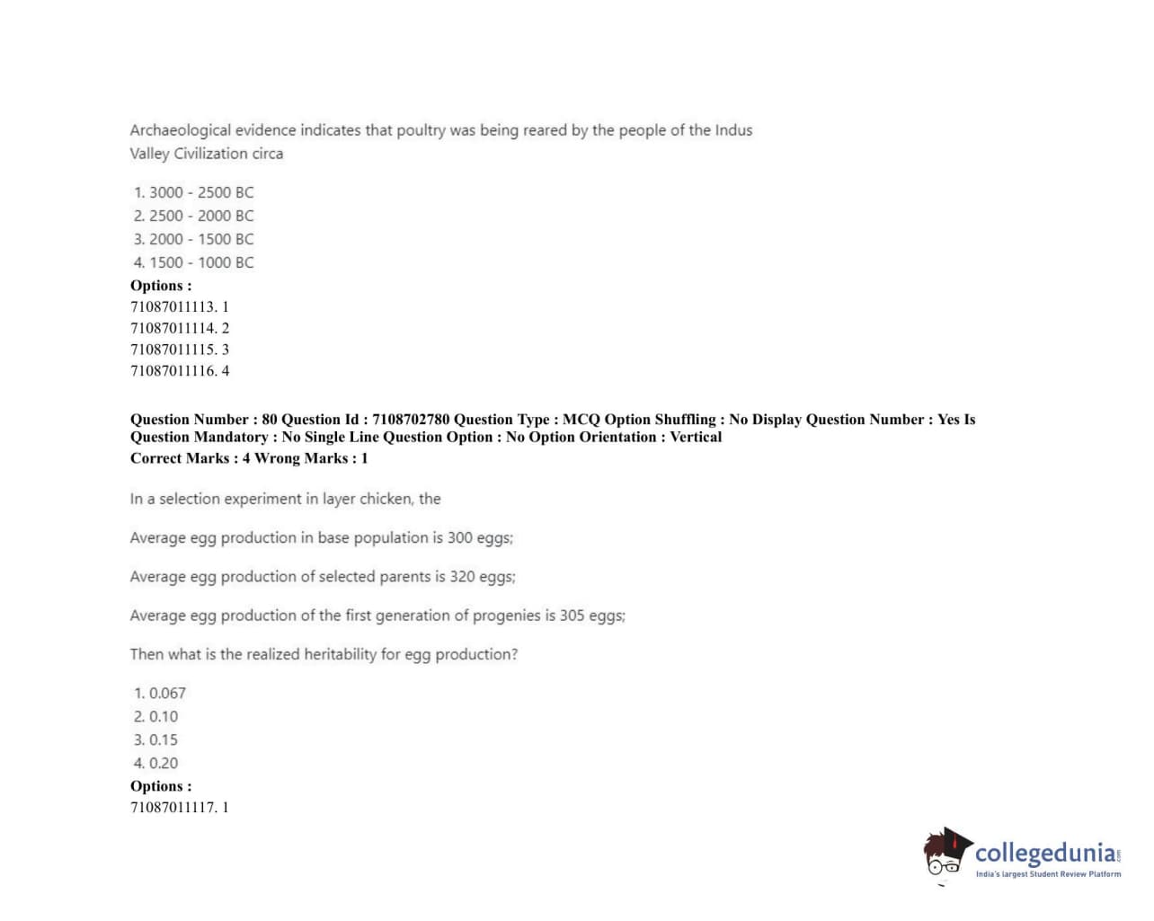 ICAR AIEEA 2020 JRF - POULTRY SCIENCE Question Paper with Answer Key PDFs Afternoon Session