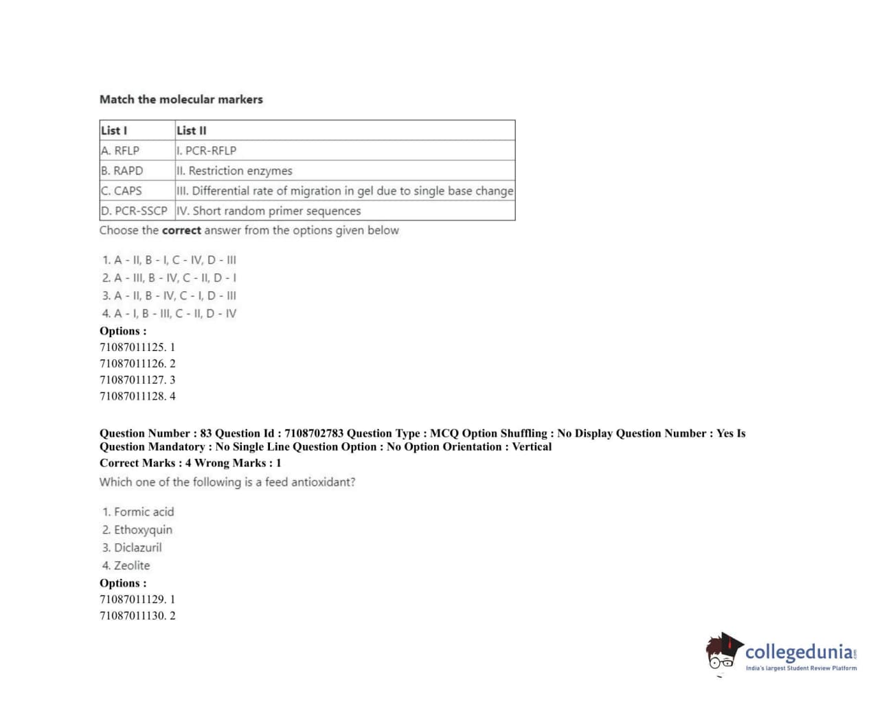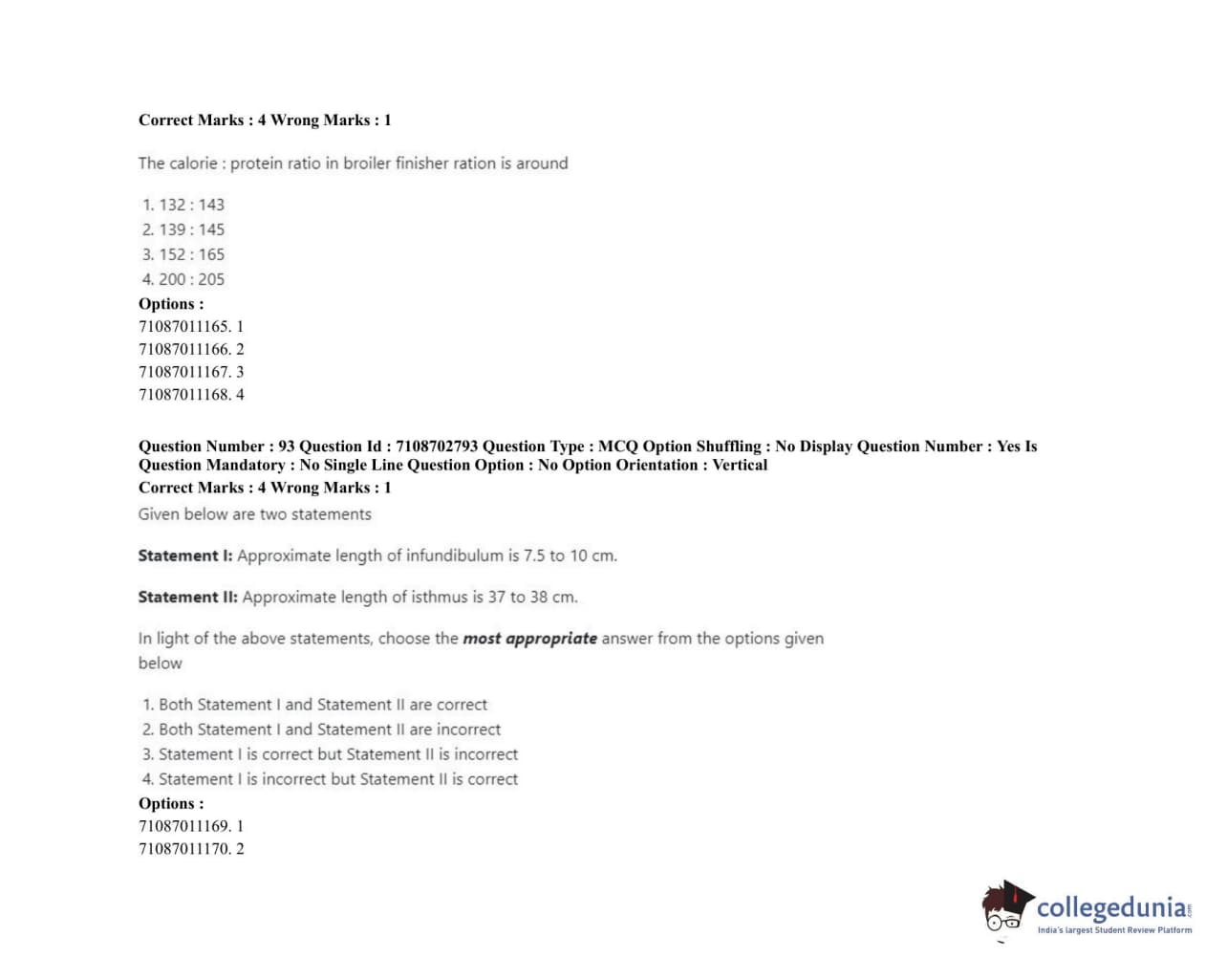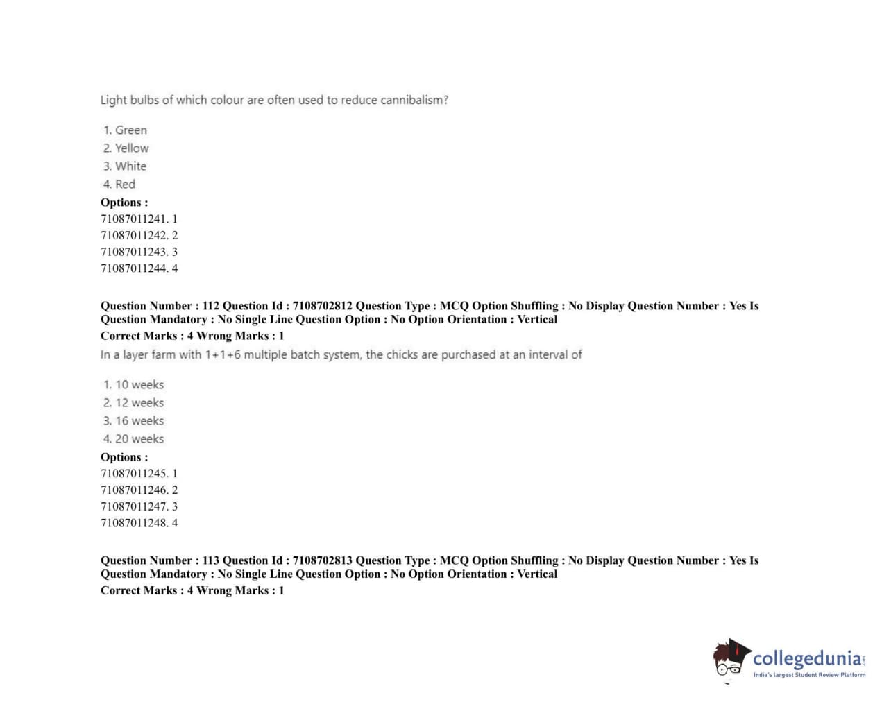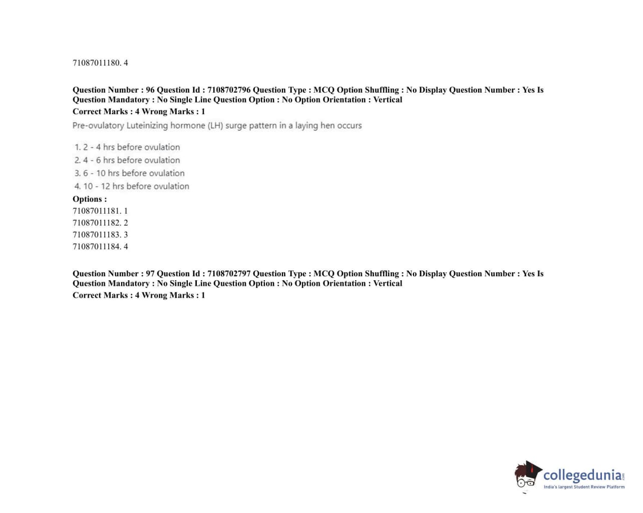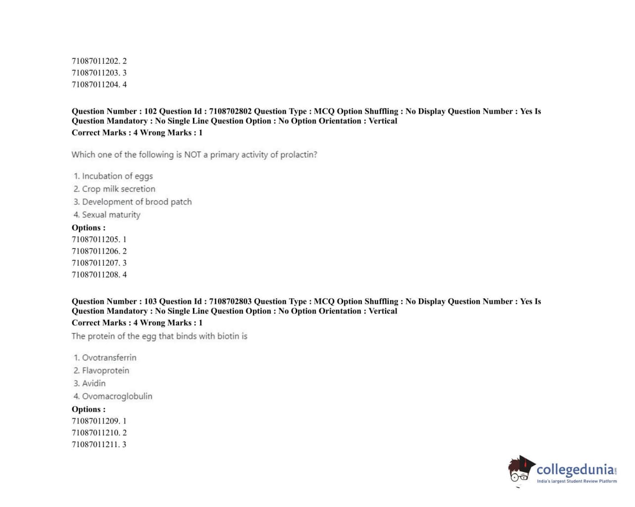 ICAR AIEEA 2020 JRF - POULTRY SCIENCE Question Paper with Answer Key PDFs Afternoon Session