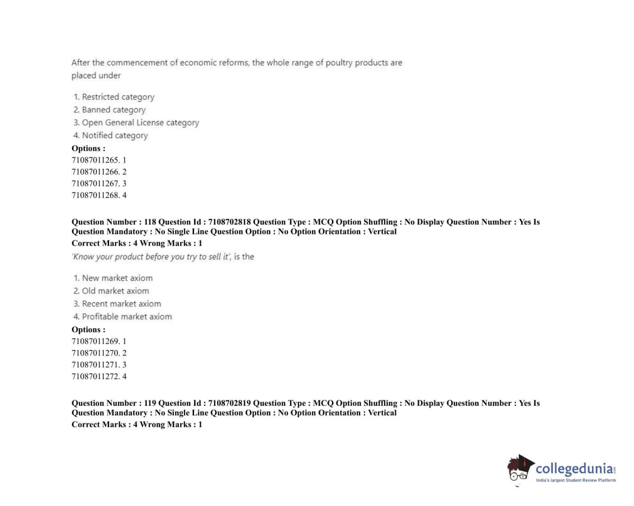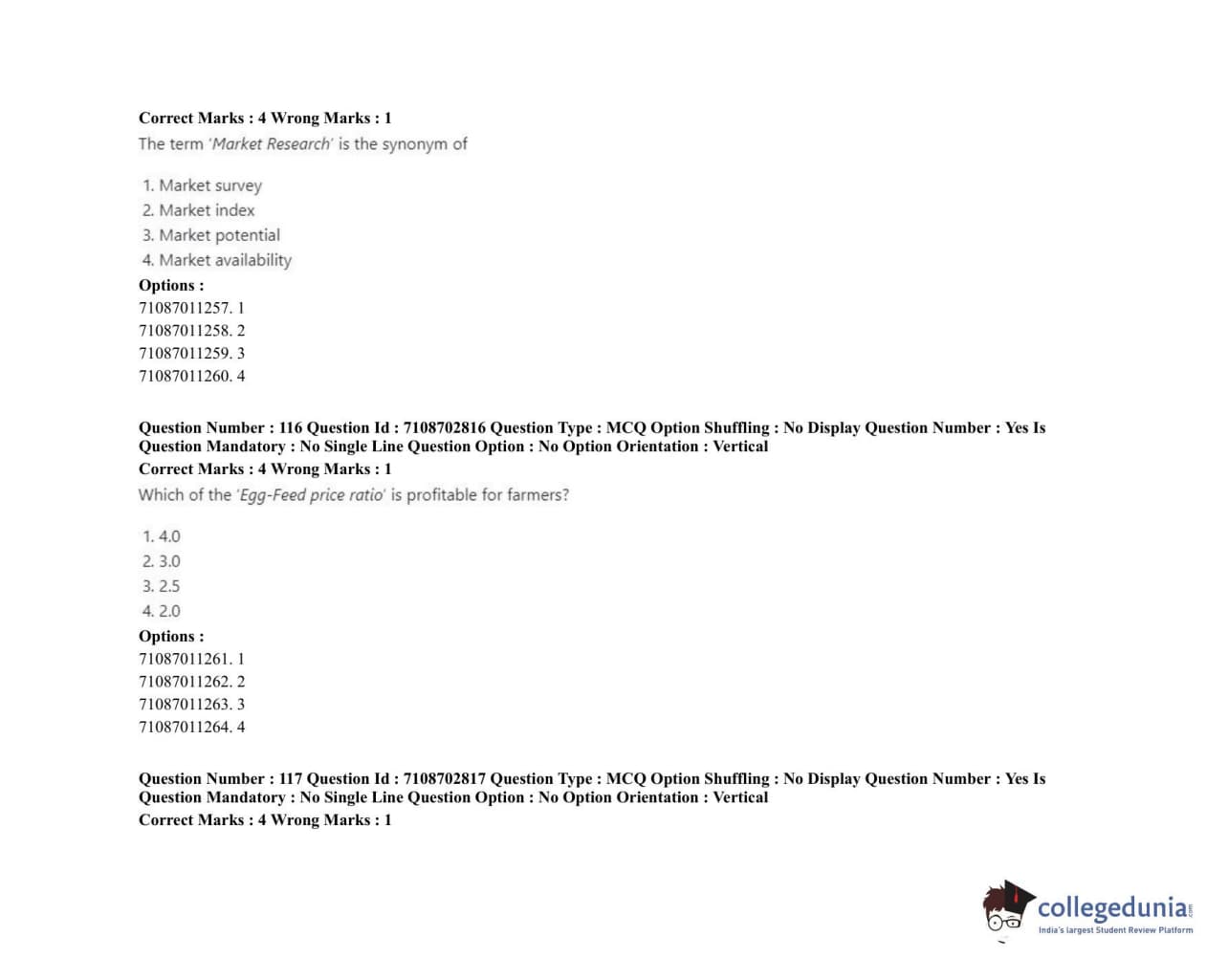 ICAR AIEEA 2020 JRF - POULTRY SCIENCE Question paper with answer key pdf conducted on September 23, 2020 in Afternoon Session is available for download. The exam was successfully organized by National Testing Agency (NTA). The question paper comprised a total of 120 questions.