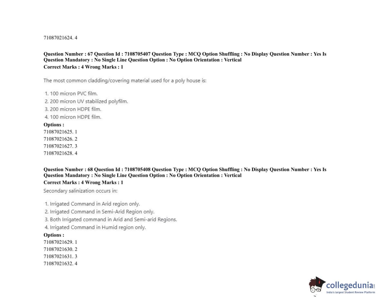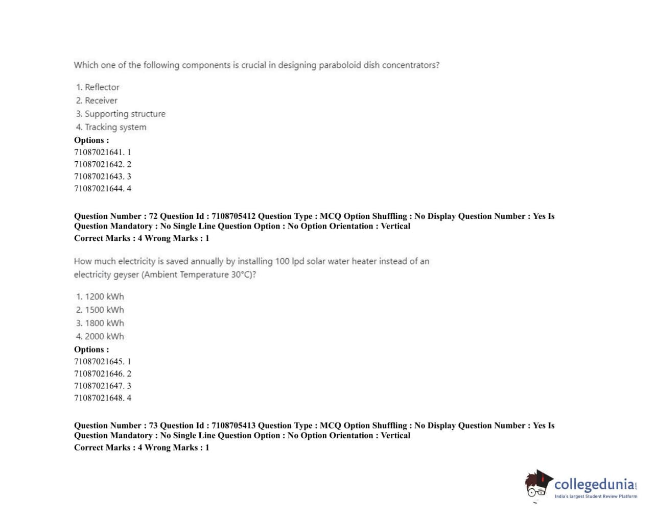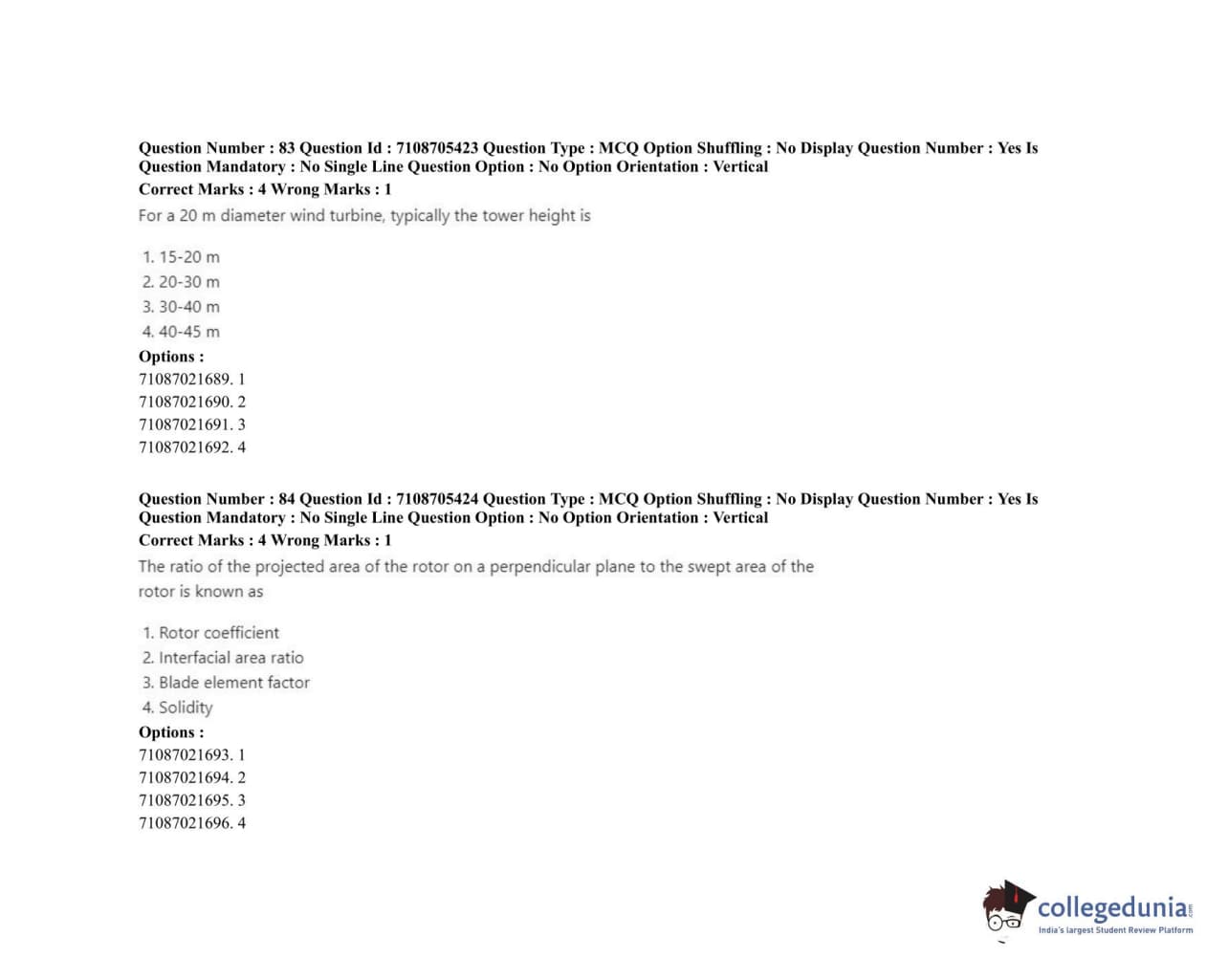 ICAR AIEEA 2020 JRF - RENEWABLE ENERGY ENGINEERING Question Paper with Answer Key PDFs Afternoon Session