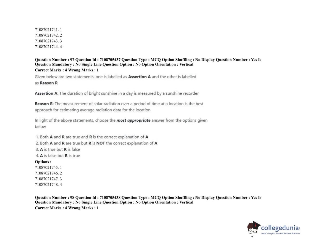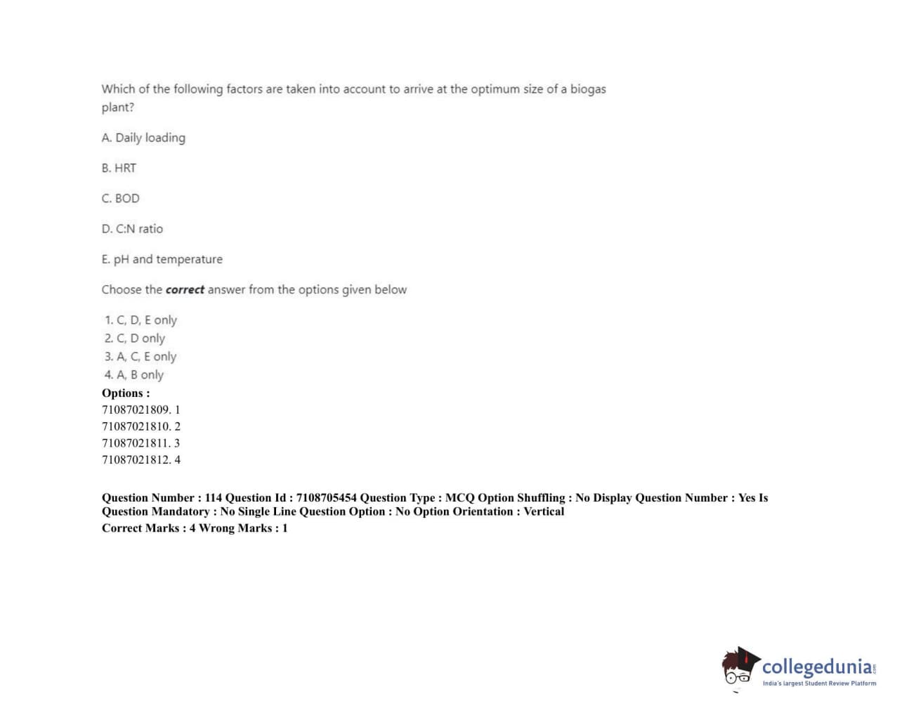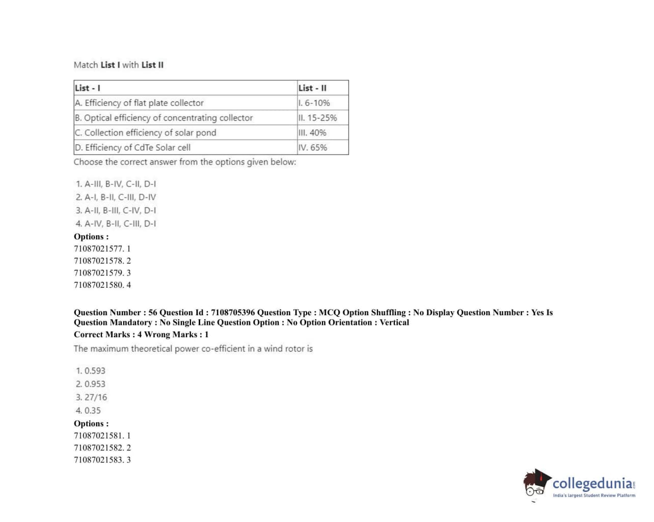 ICAR AIEEA 2020 JRF - RENEWABLE ENERGY ENGINEERING Question Paper with Answer Key PDFs Afternoon Session