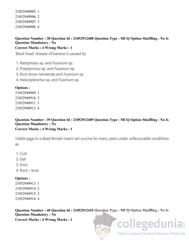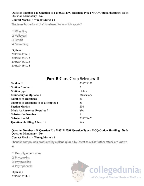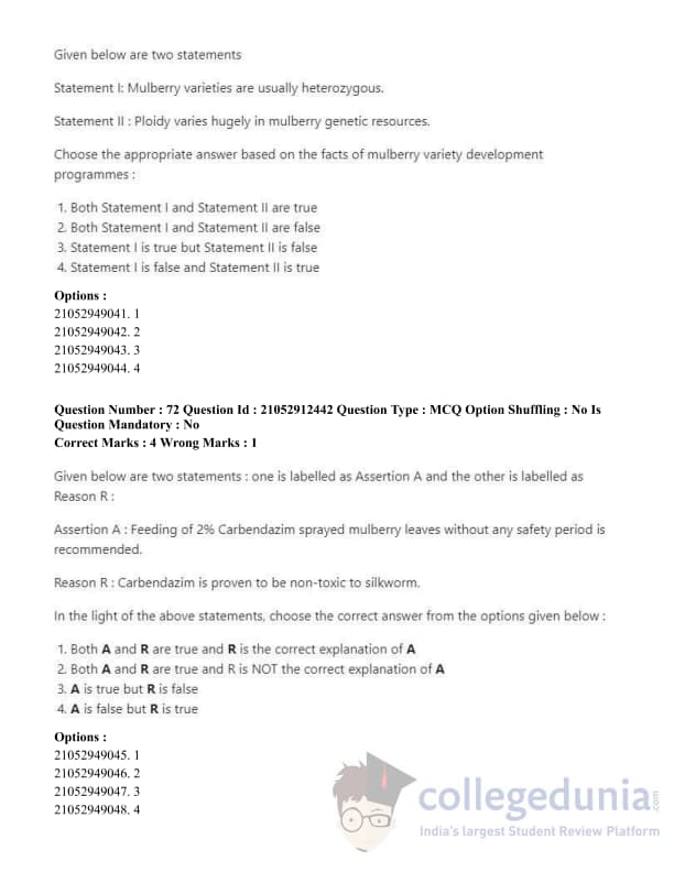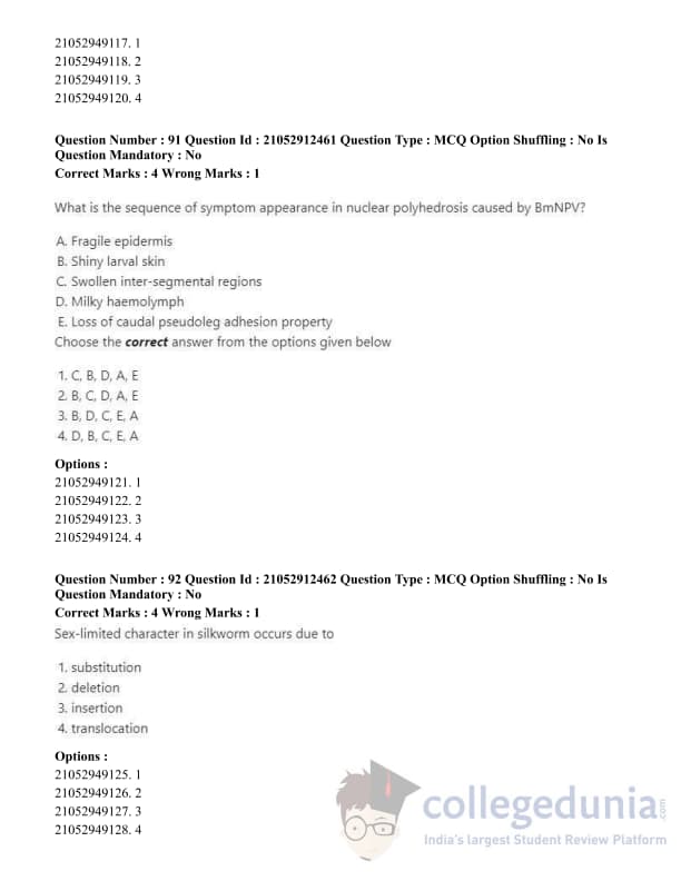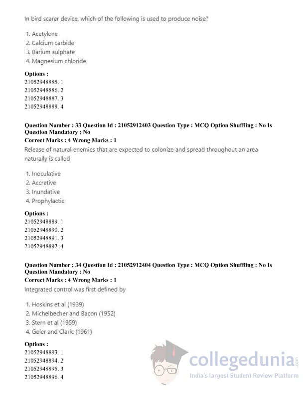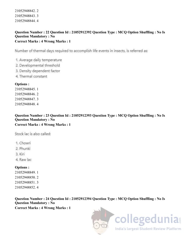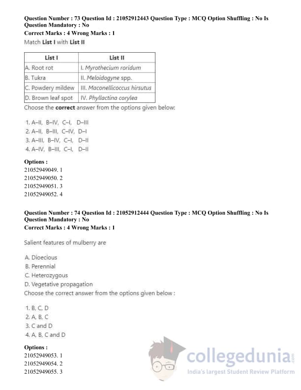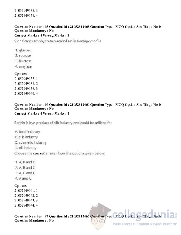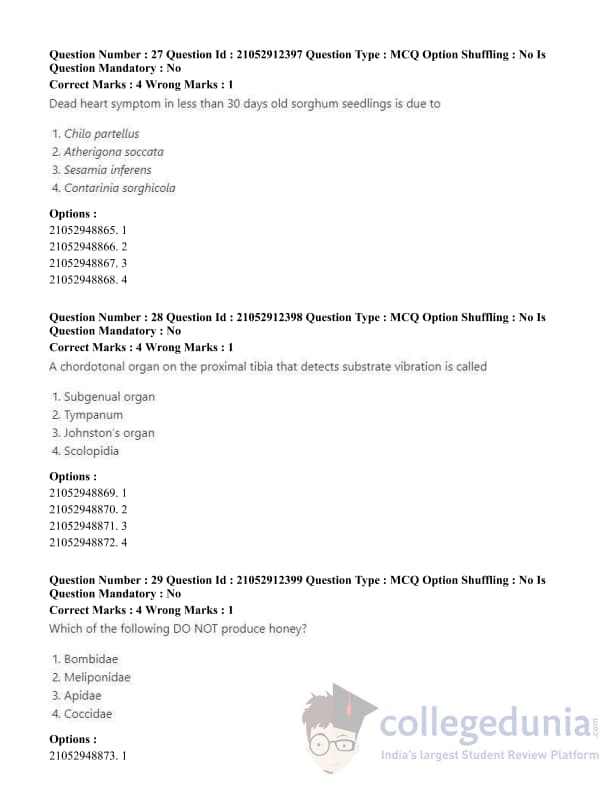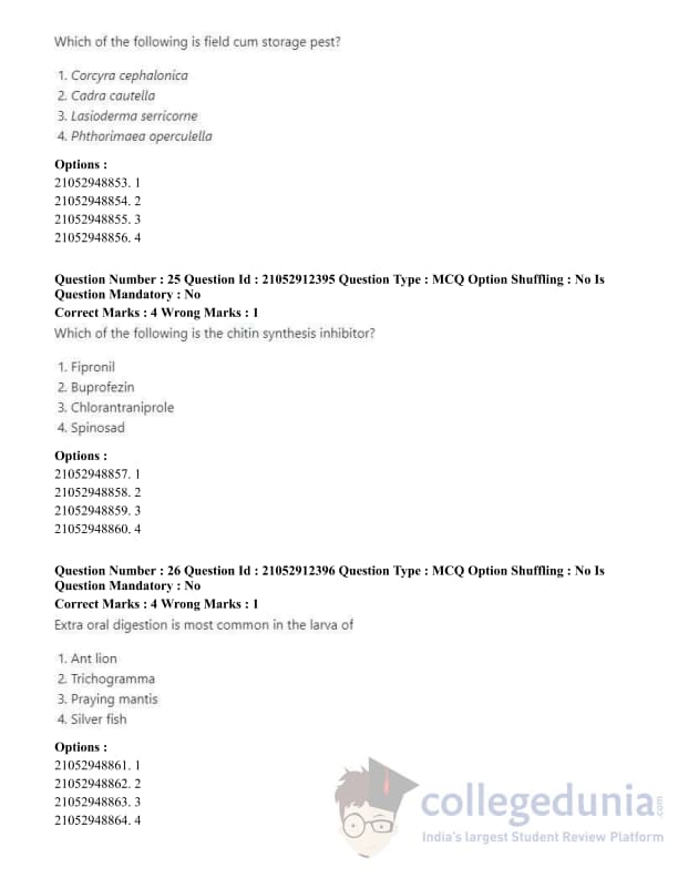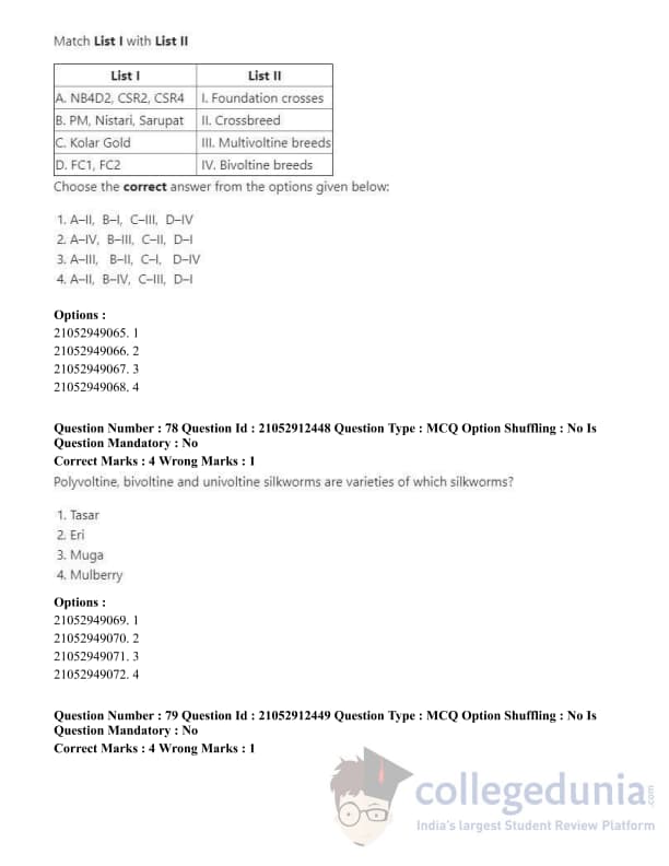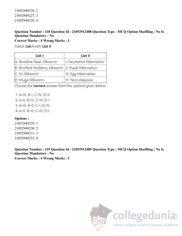 ICAR AIEEA 2020 JRF - SERICULTURE Question Paper with Answer Key PDFs Afternoon Session