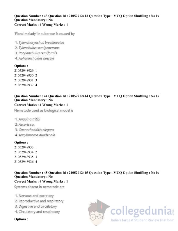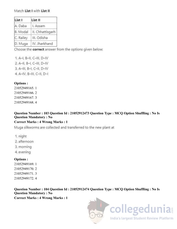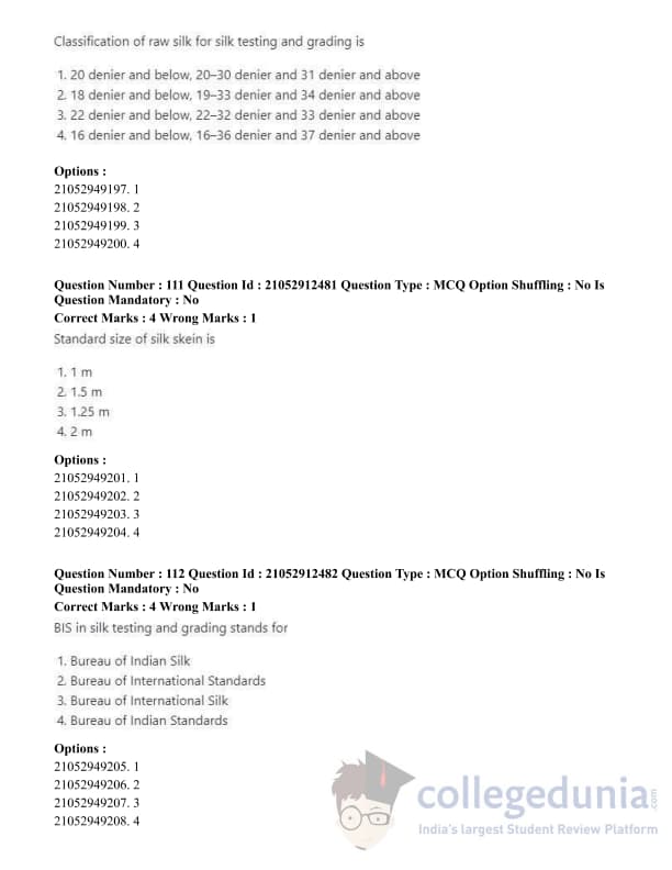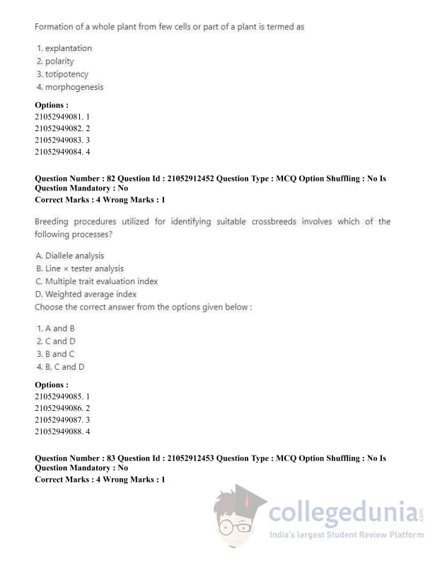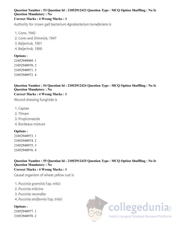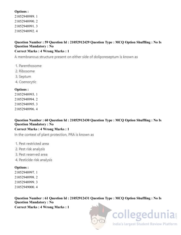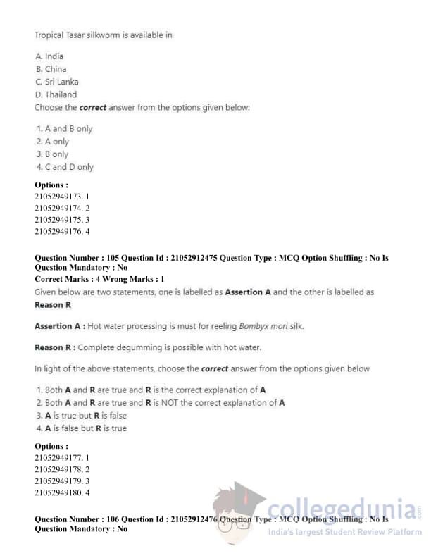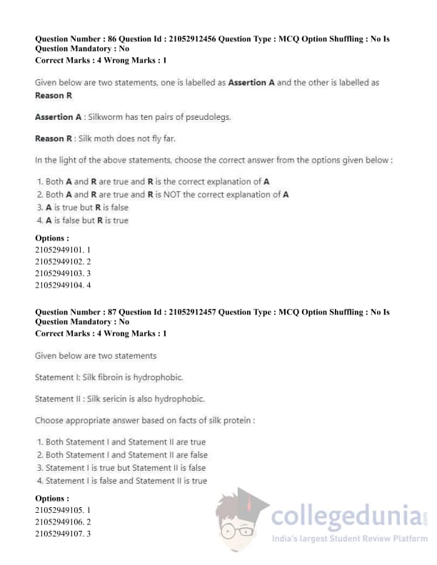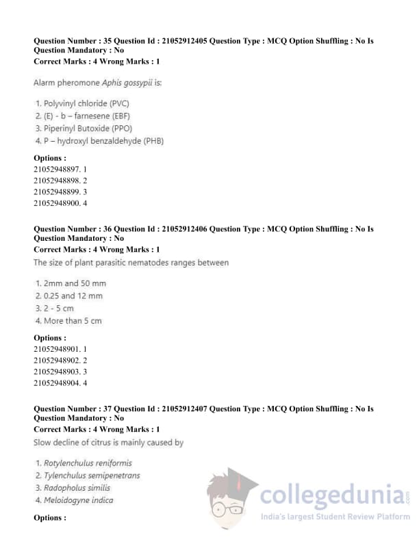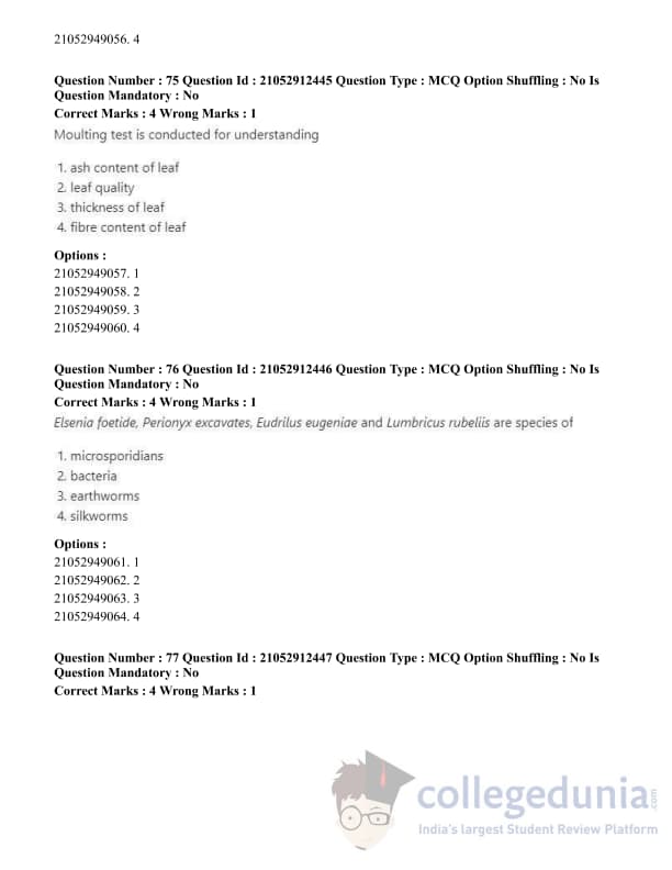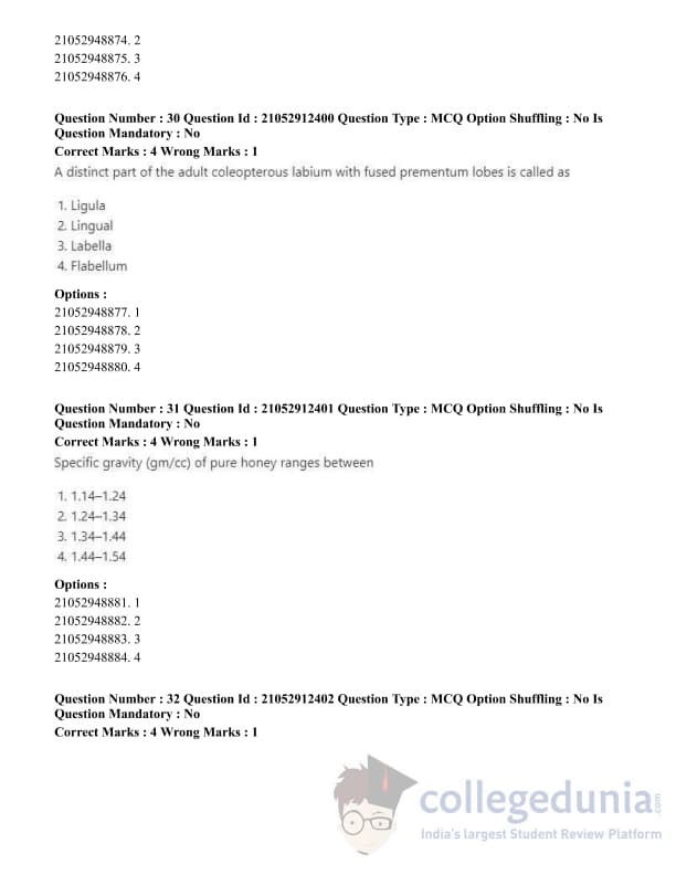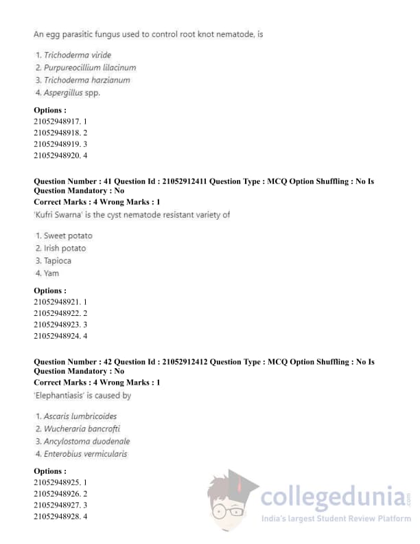 ICAR AIEEA 2020 JRF - SERICULTURE Question Paper with Answer Key PDFs Afternoon Session