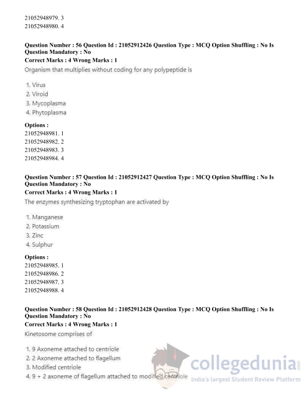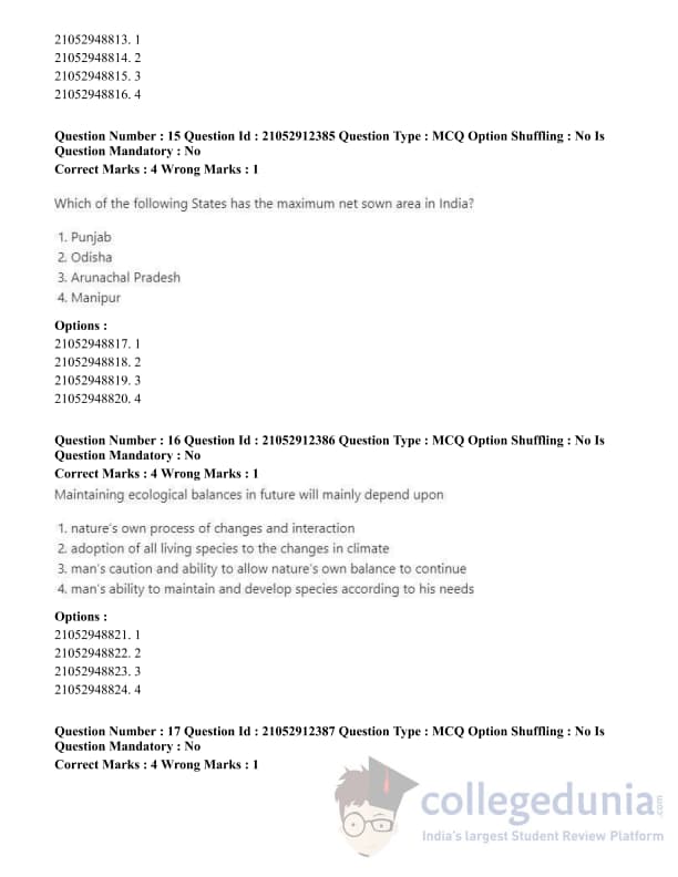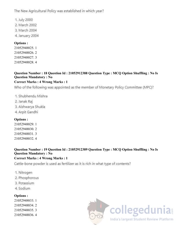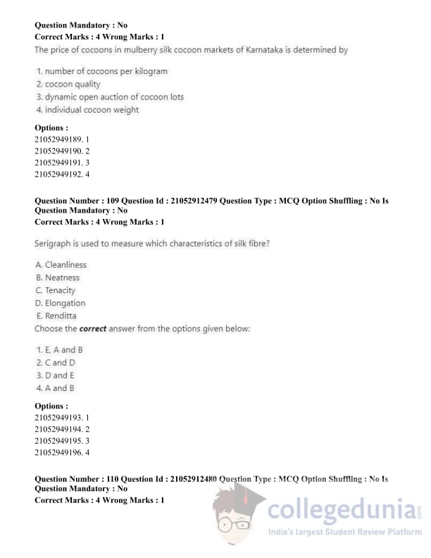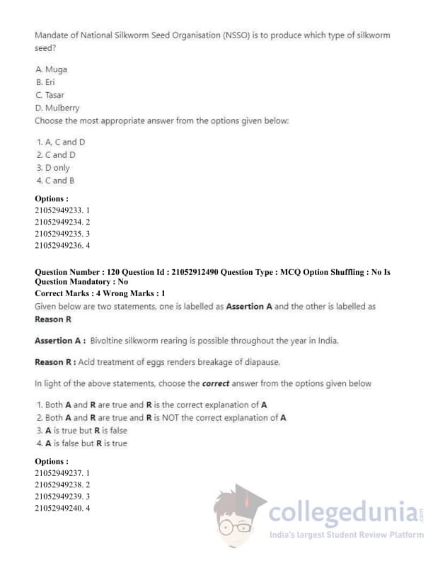 ICAR AIEEA 2020 JRF - SERICULTURE Question paper with answer key pdf conducted on October 12, 2020 in Afternoon Session is available for download. The exam was successfully organized by National Testing Agency (NTA). The question paper comprised a total of 120 questions.