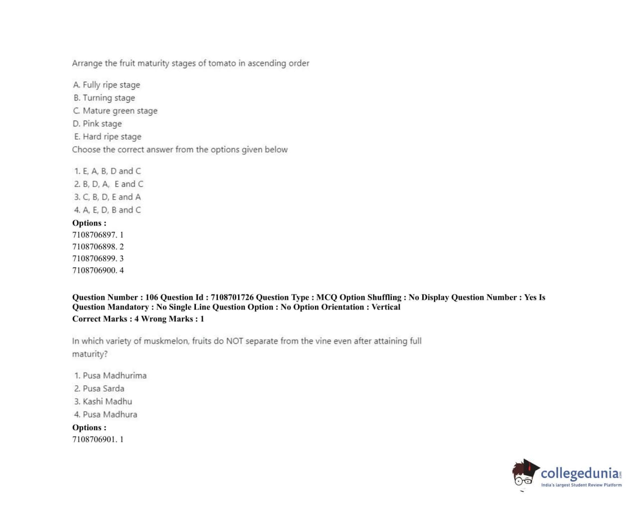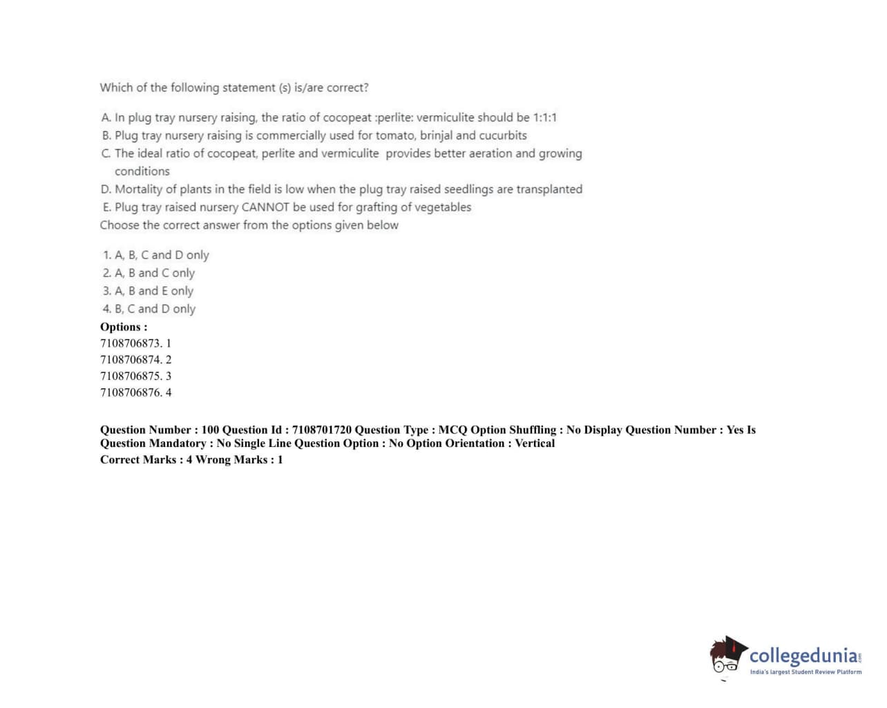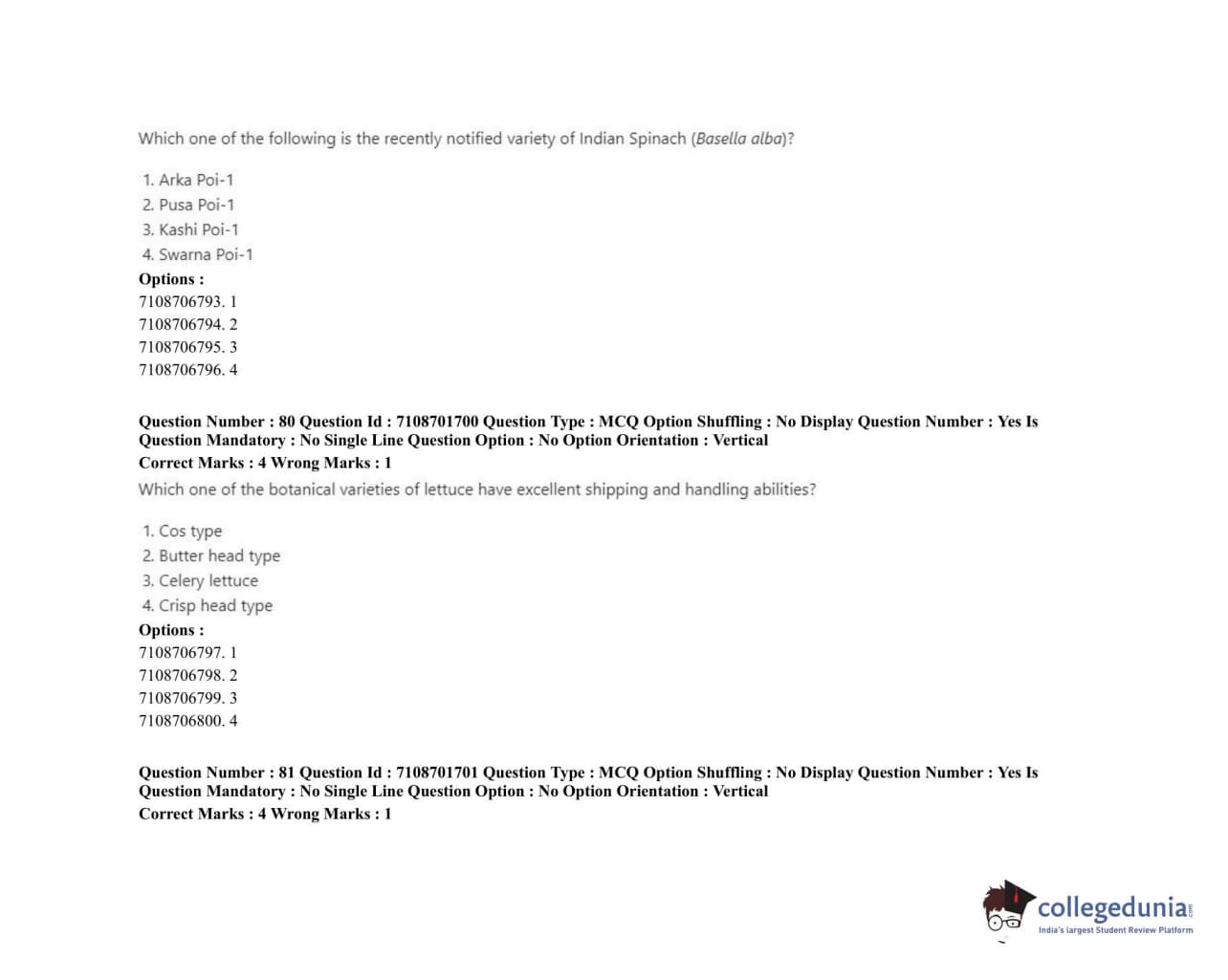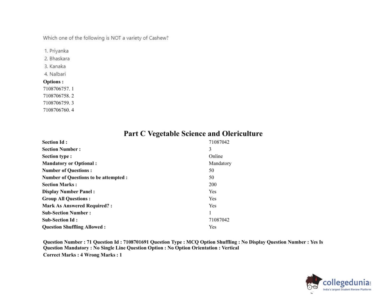 ICAR AIEEA 2020 JRF - VEGETABLE SCIENCE AND OLERICULTURE Question Paper with Answer Key PDFs Afternoon Session
