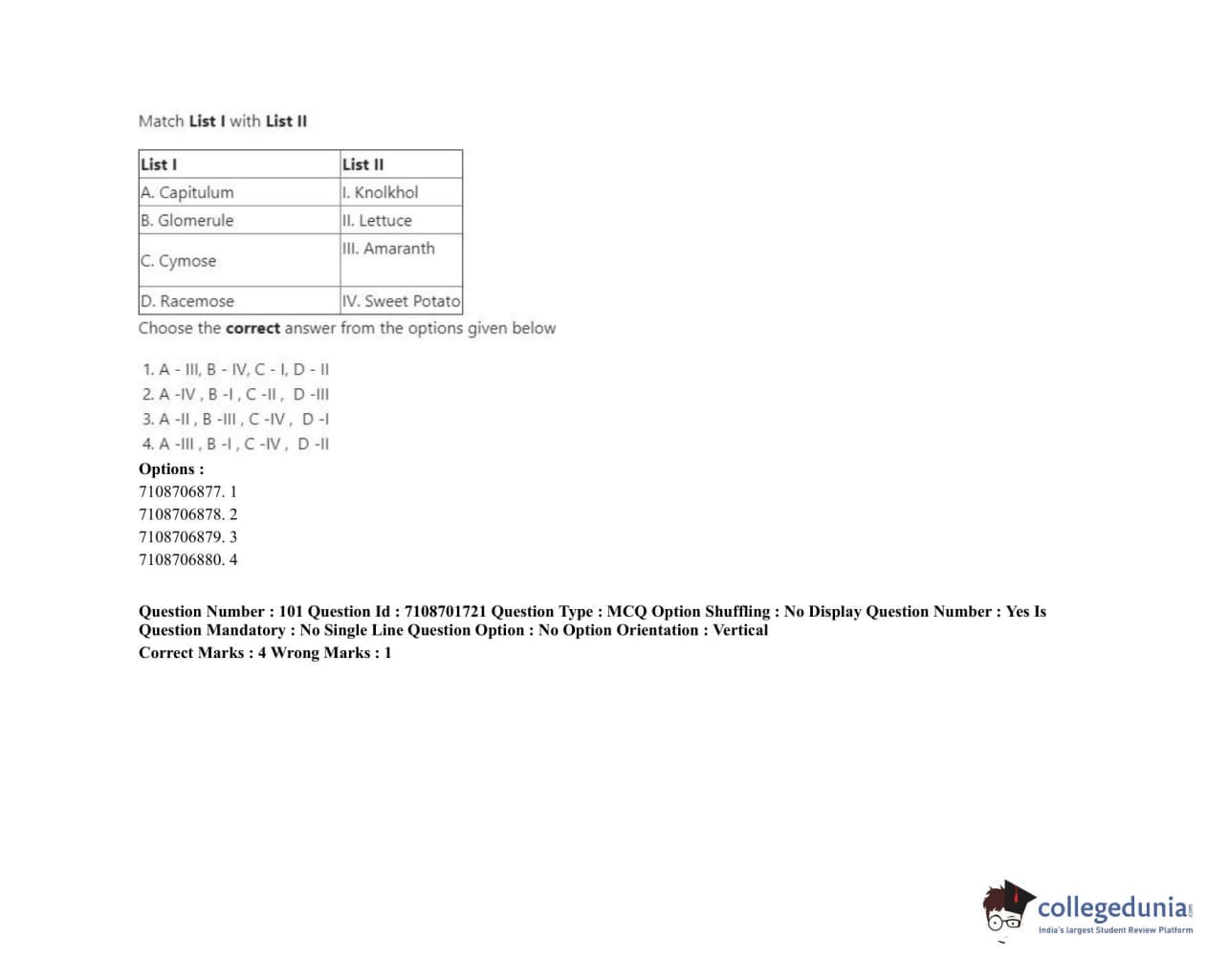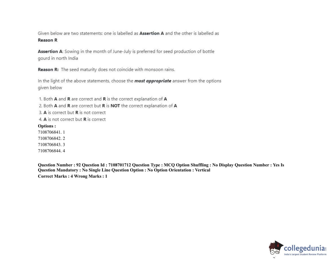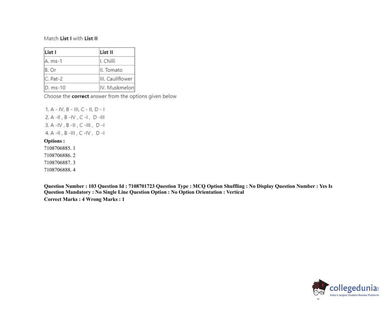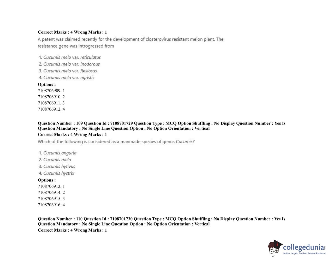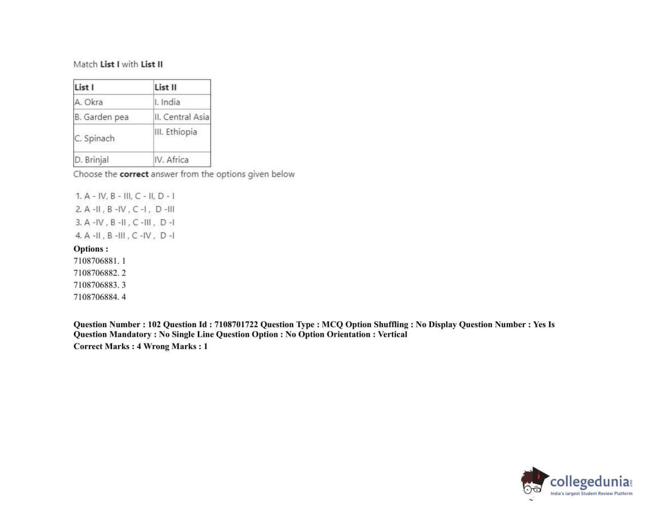 ICAR AIEEA 2020 JRF - VEGETABLE SCIENCE AND OLERICULTURE Question Paper with Answer Key PDFs Afternoon Session