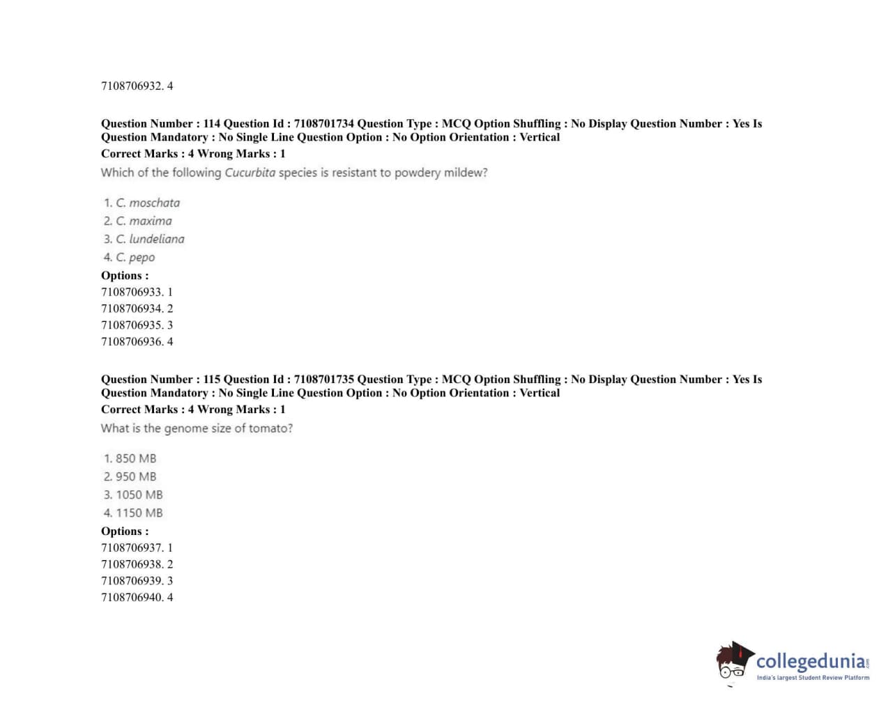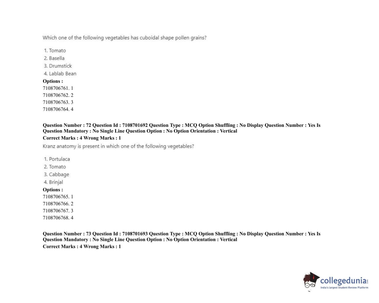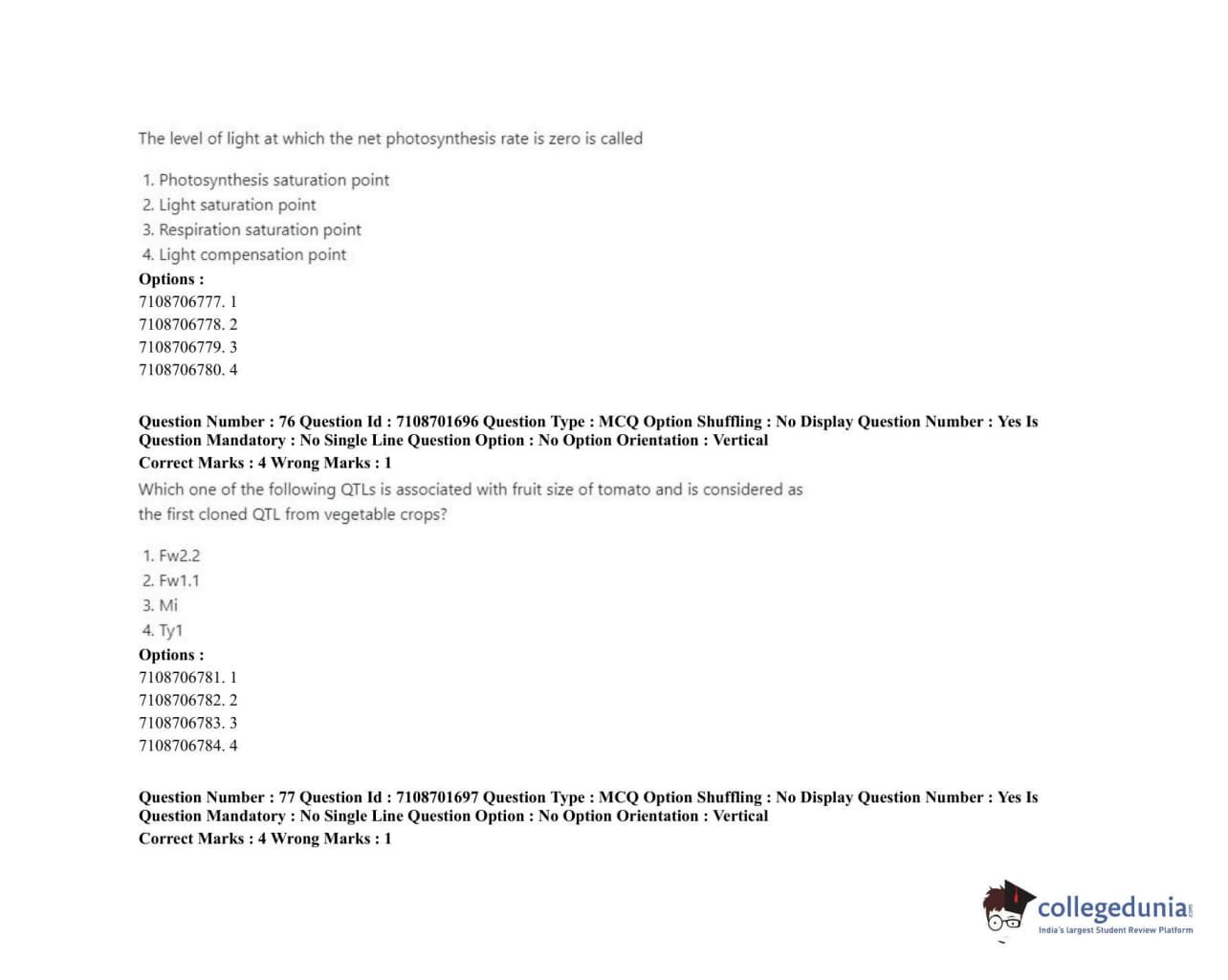 | ICAR AIEEA 2020 JRF - VEGETABLE SCIENCE AND OLERICULTURE Question Paper PDF | ICAR AIEEA 2020 JRF - VEGETABLE SCIENCE AND OLERICULTURE Answer Key PDF |