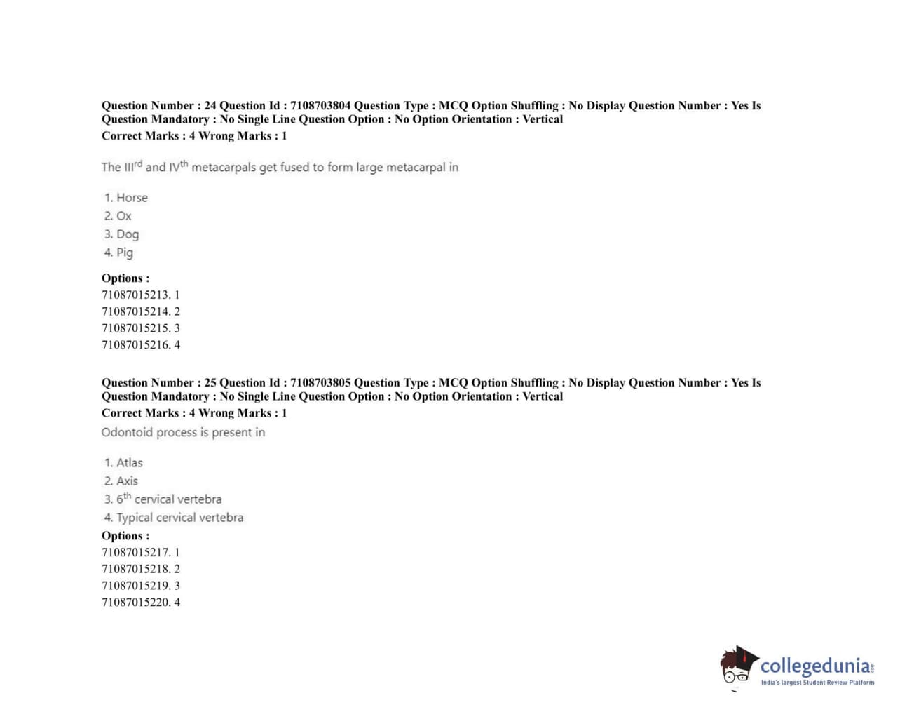 | ICAR AIEEA 2020 JRF - VETERINARY ANATOMY AND HISTOLOGY Question Paper PDF | ICAR AIEEA 2020 JRF - VETERINARY ANATOMY AND HISTOLOGY Answer Key PDF |