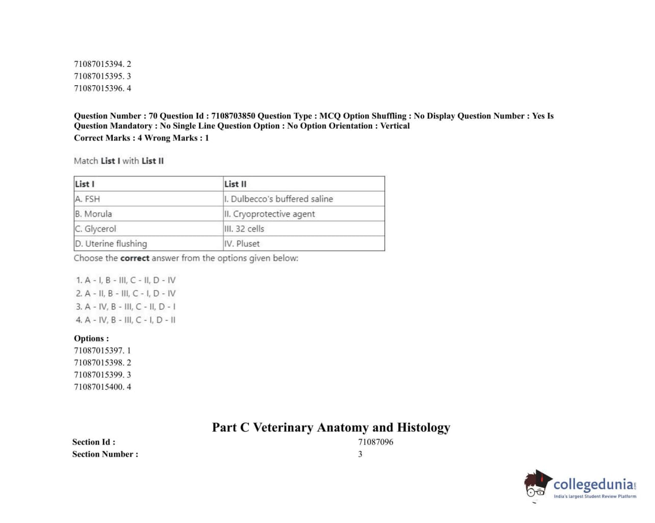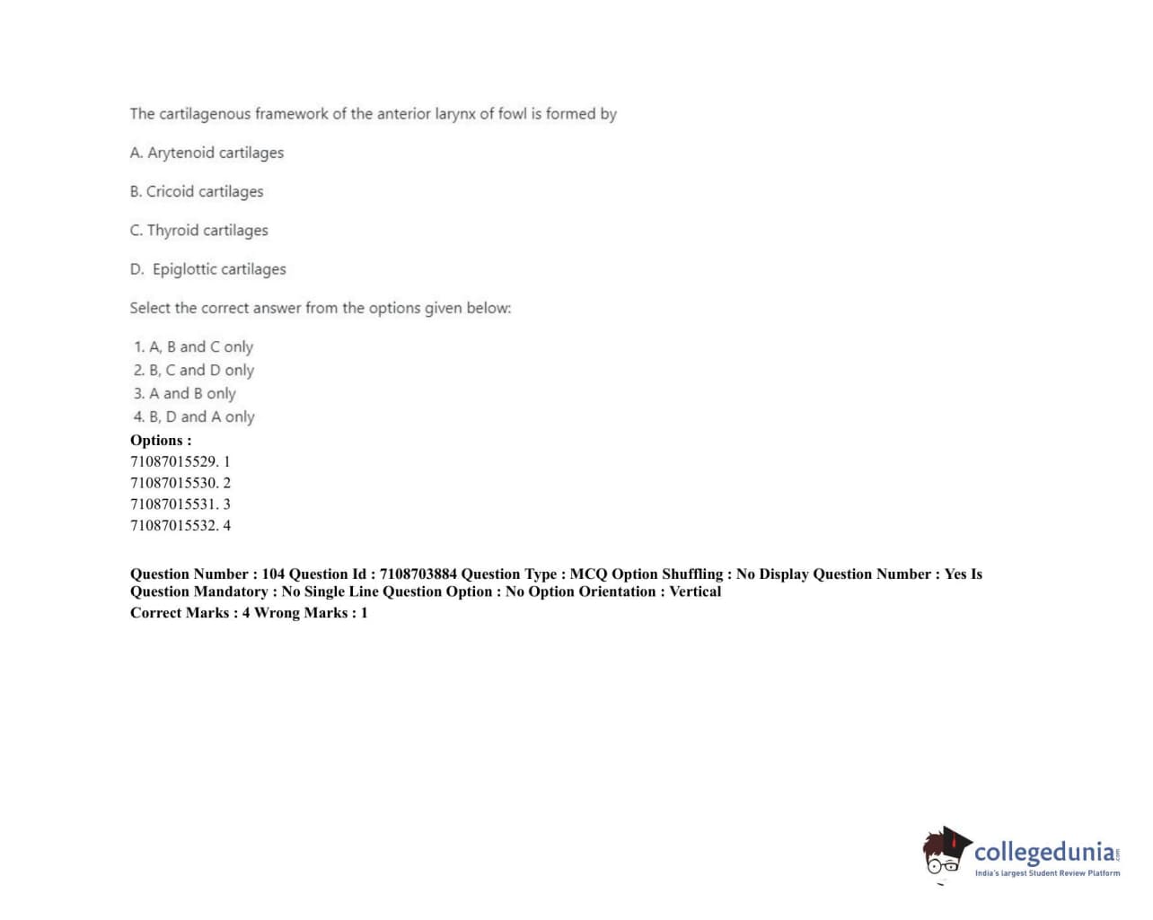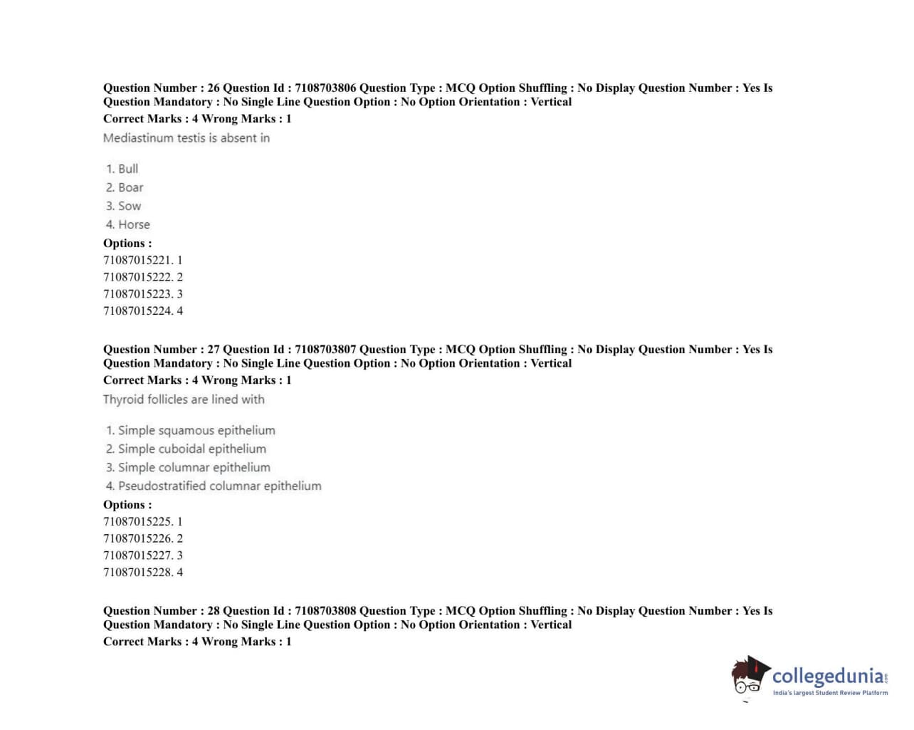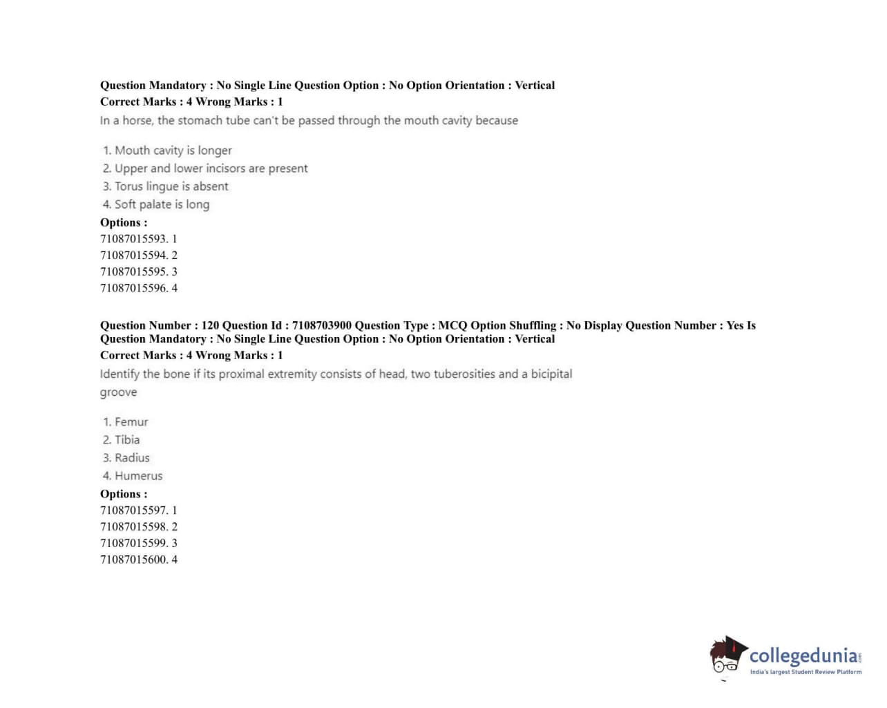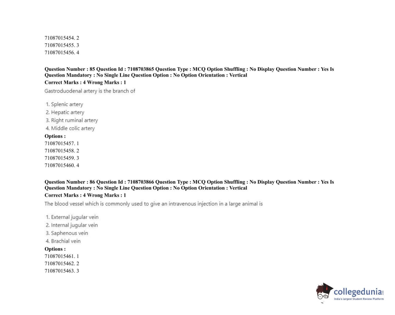 ICAR AIEEA 2020 JRF - VETERINARY ANATOMY AND HISTOLOGY Question Paper with Answer Key PDFs Afternoon Session
