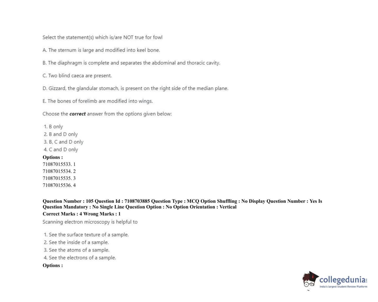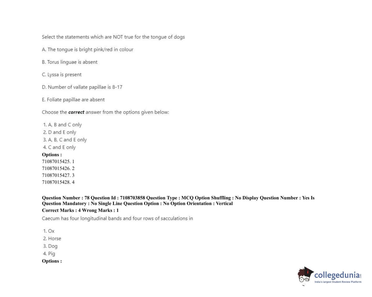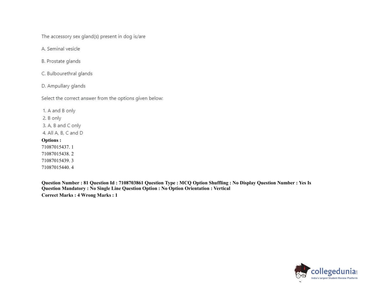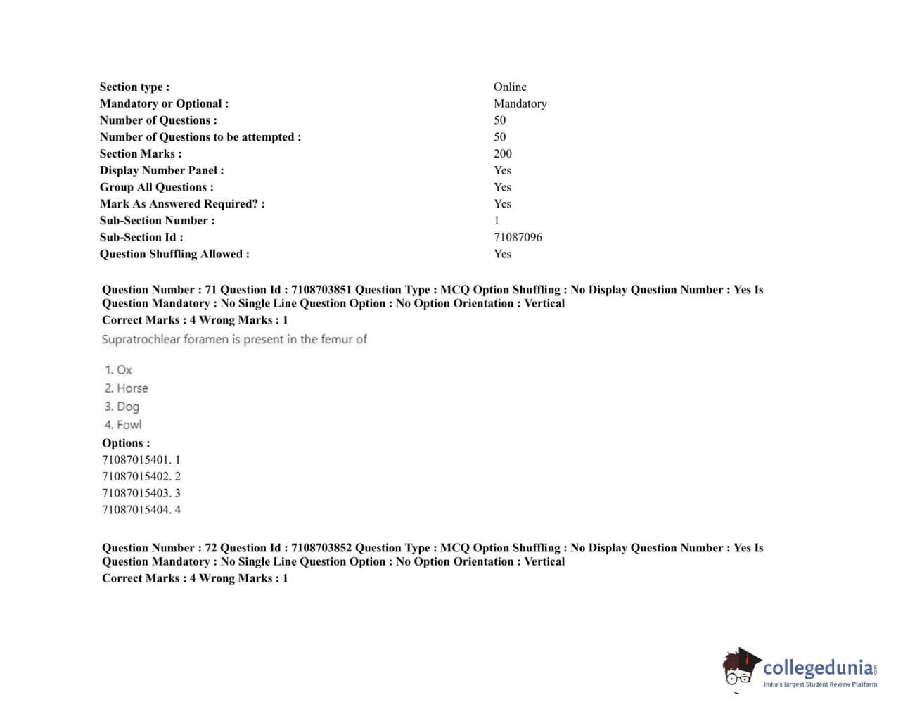 ICAR AIEEA 2020 JRF - VETERINARY ANATOMY AND HISTOLOGY Question Paper with Answer Key PDFs Afternoon Session