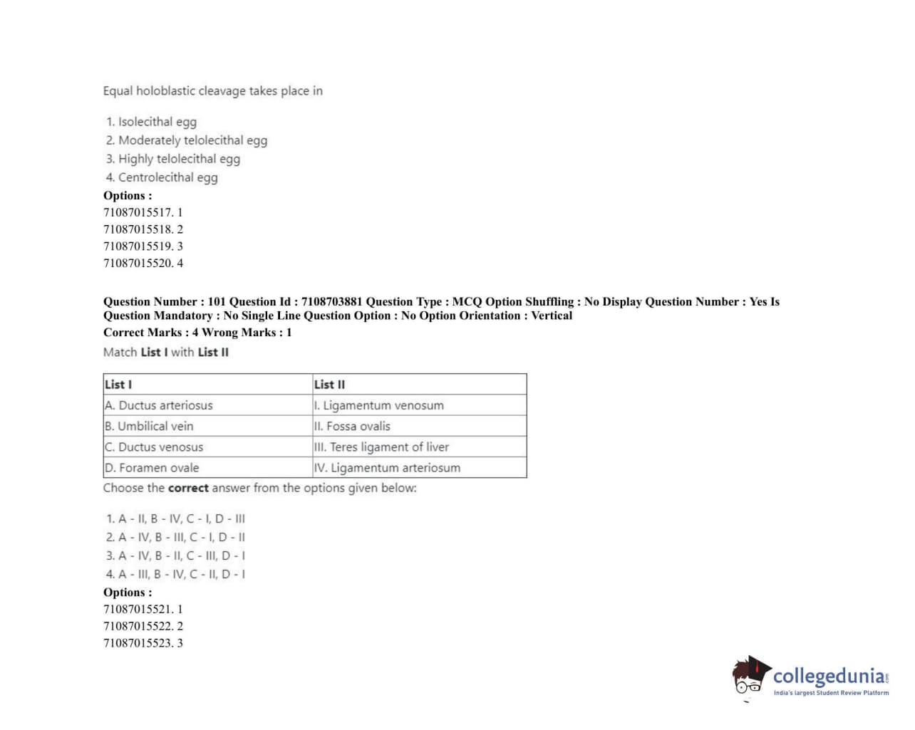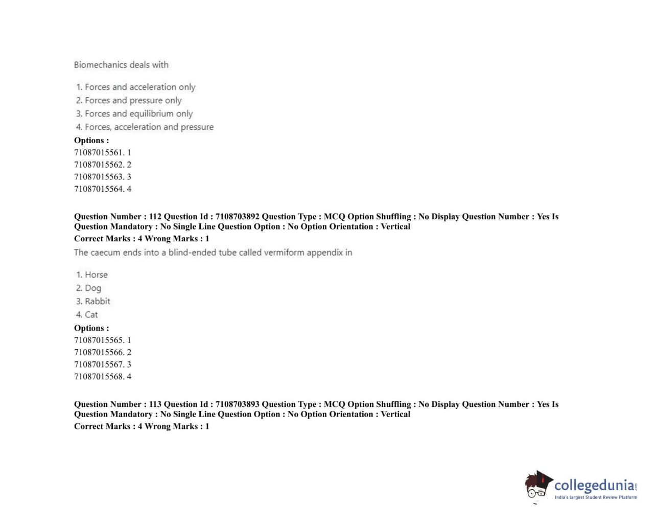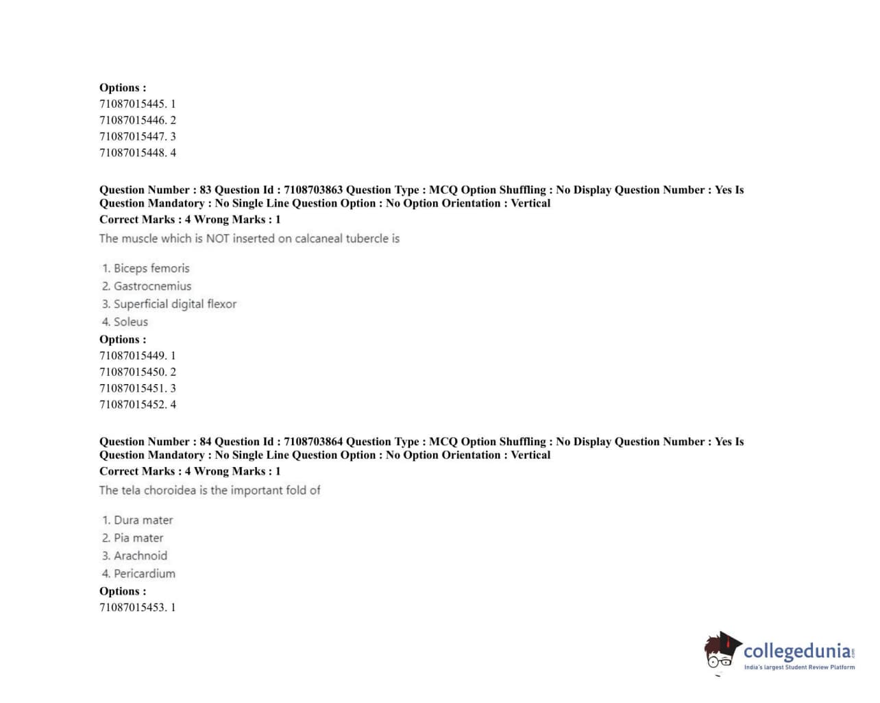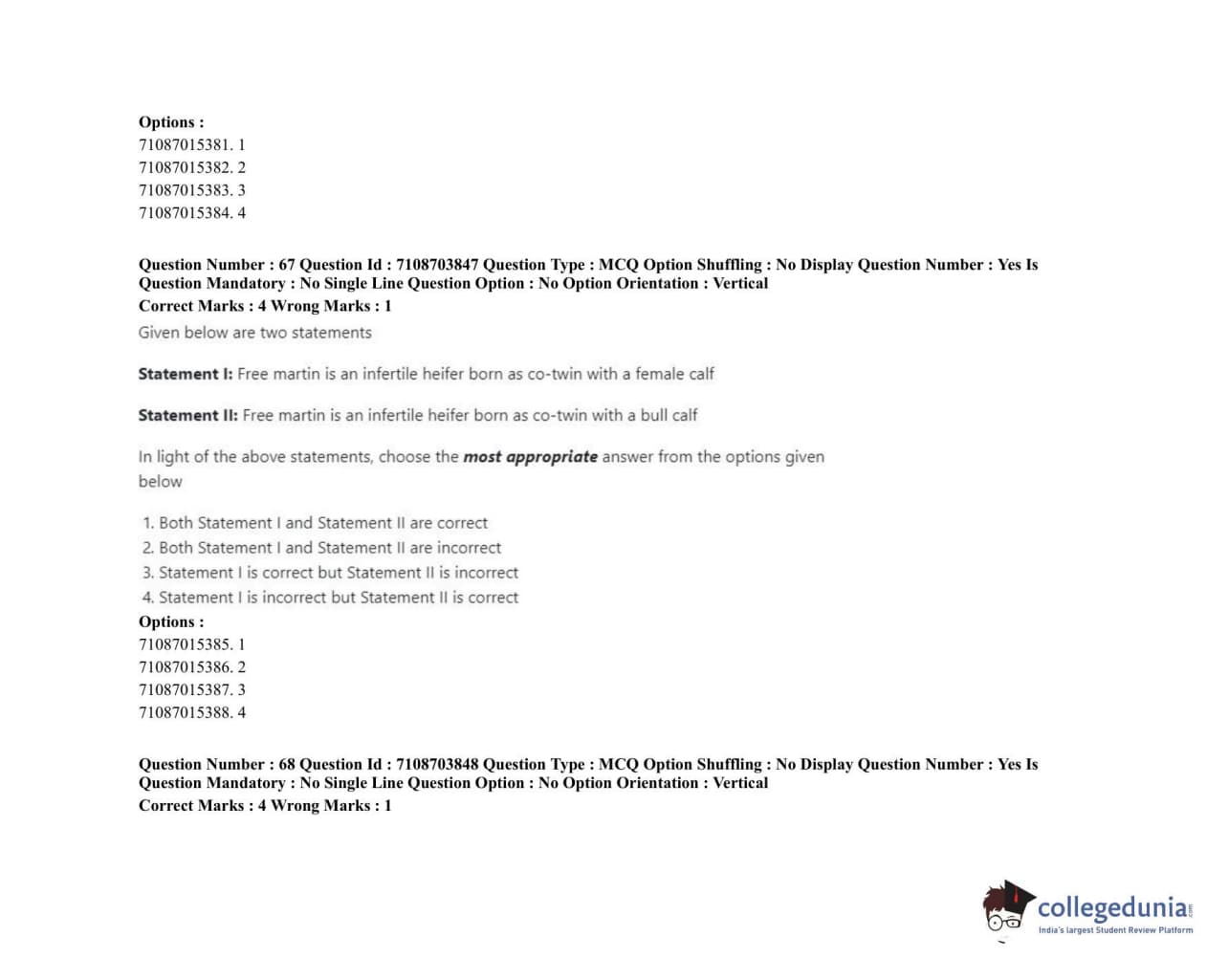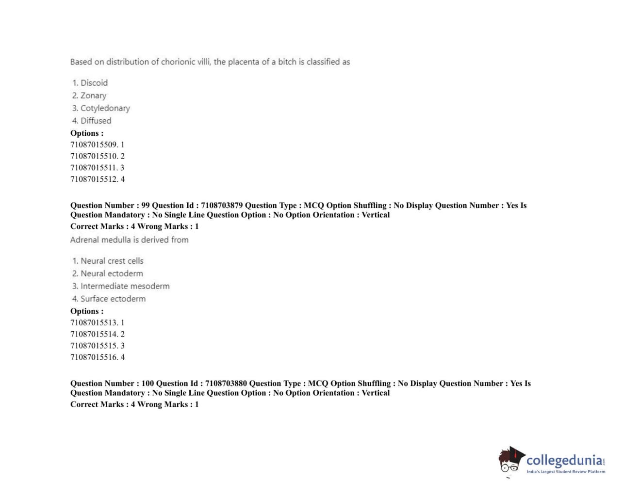 ICAR AIEEA 2020 JRF - VETERINARY ANATOMY AND HISTOLOGY Question Paper with Answer Key PDFs Afternoon Session