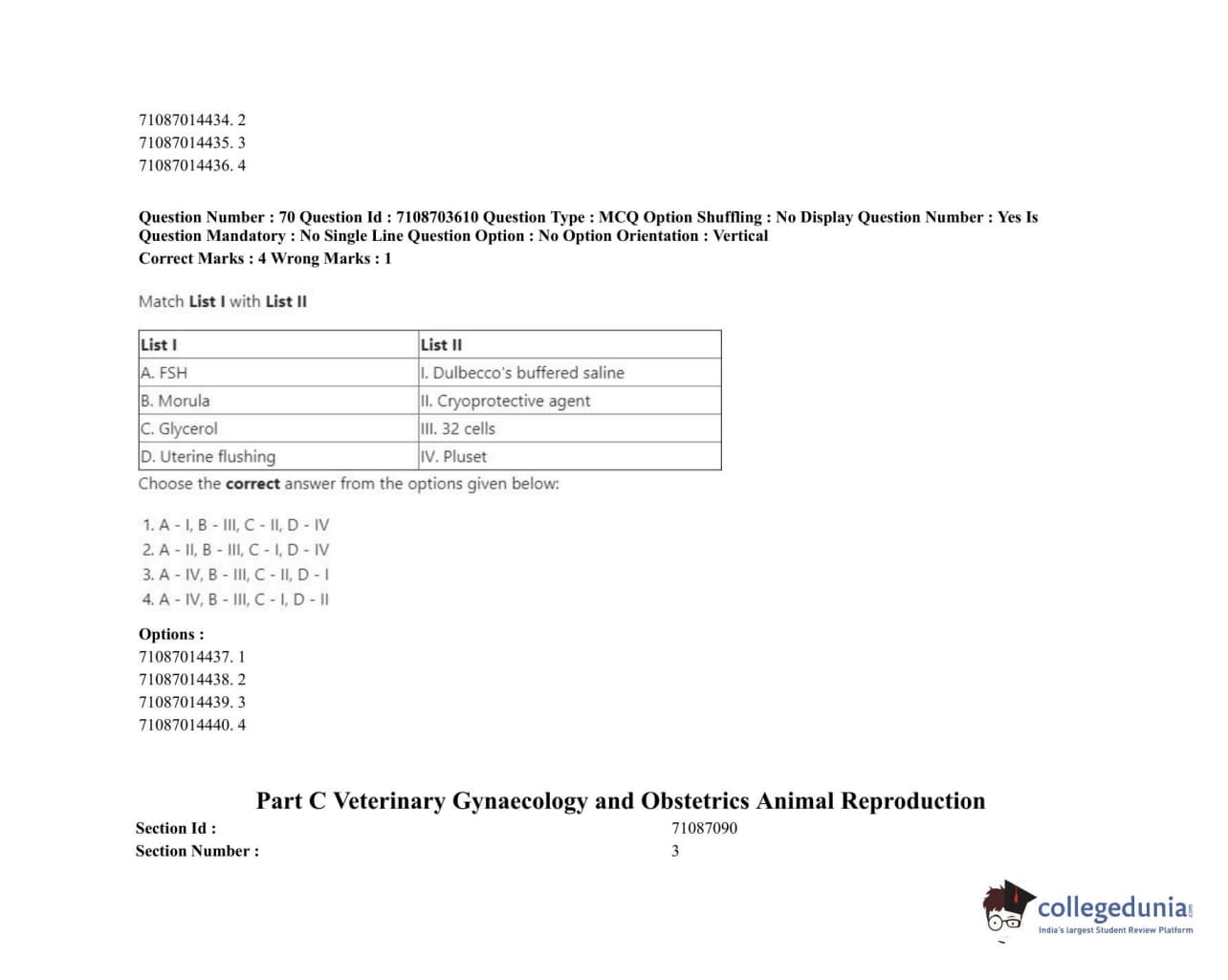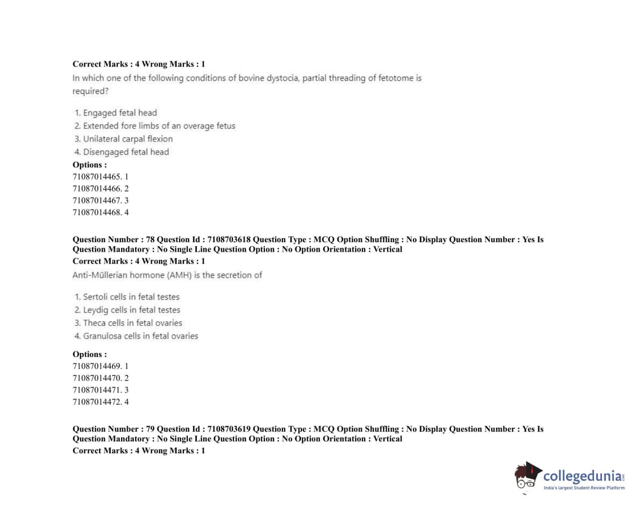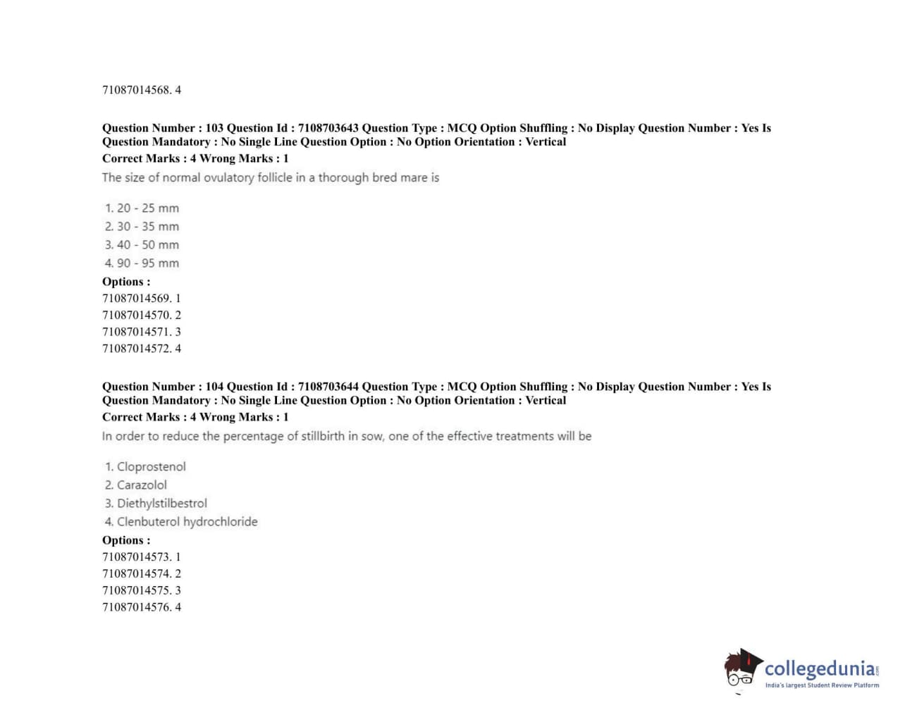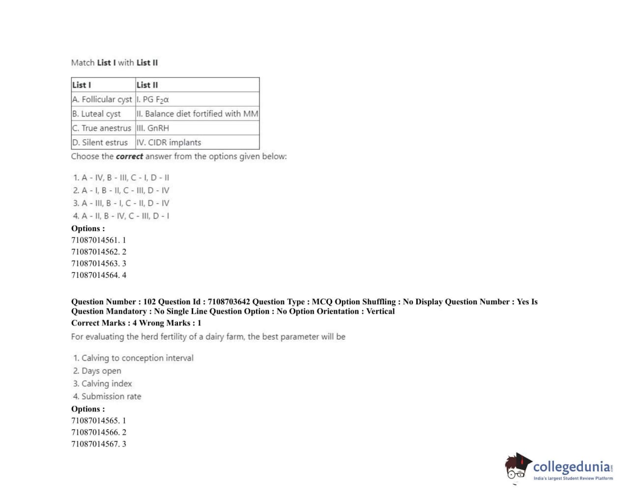 ICAR AIEEA 2020 JRF - VETERINARY GYNAECOLOGY AND OBSTETRICS ANIMAL REPRODUCTION Question Paper with Answer Key PDFs Afternoon Session