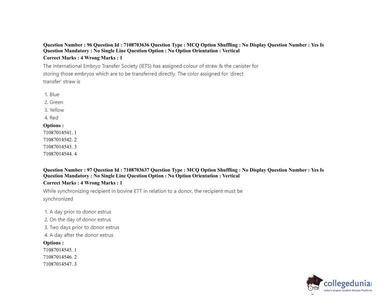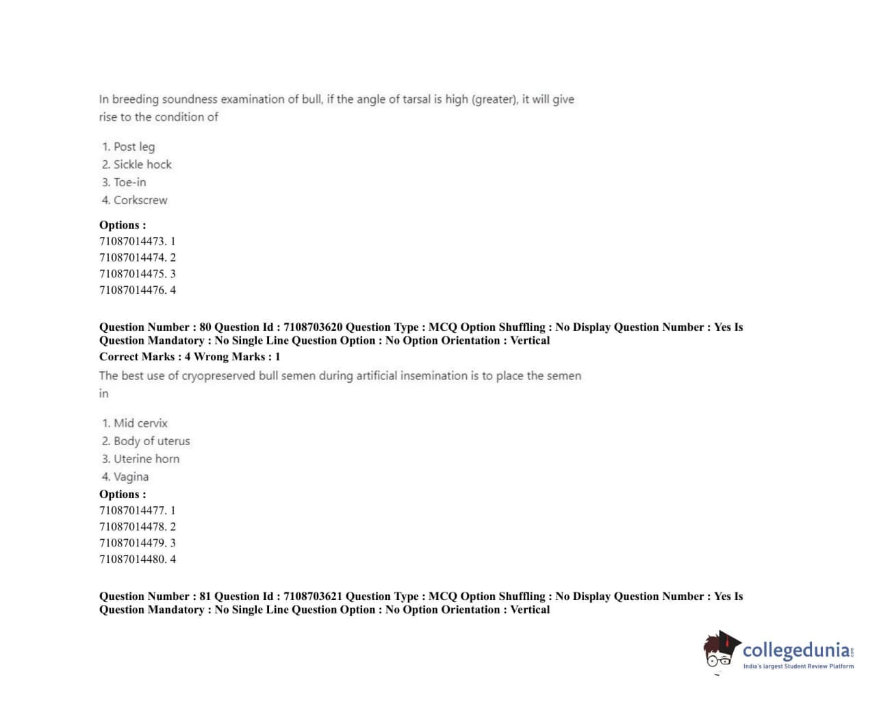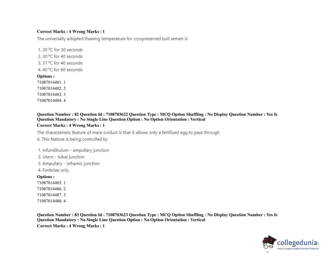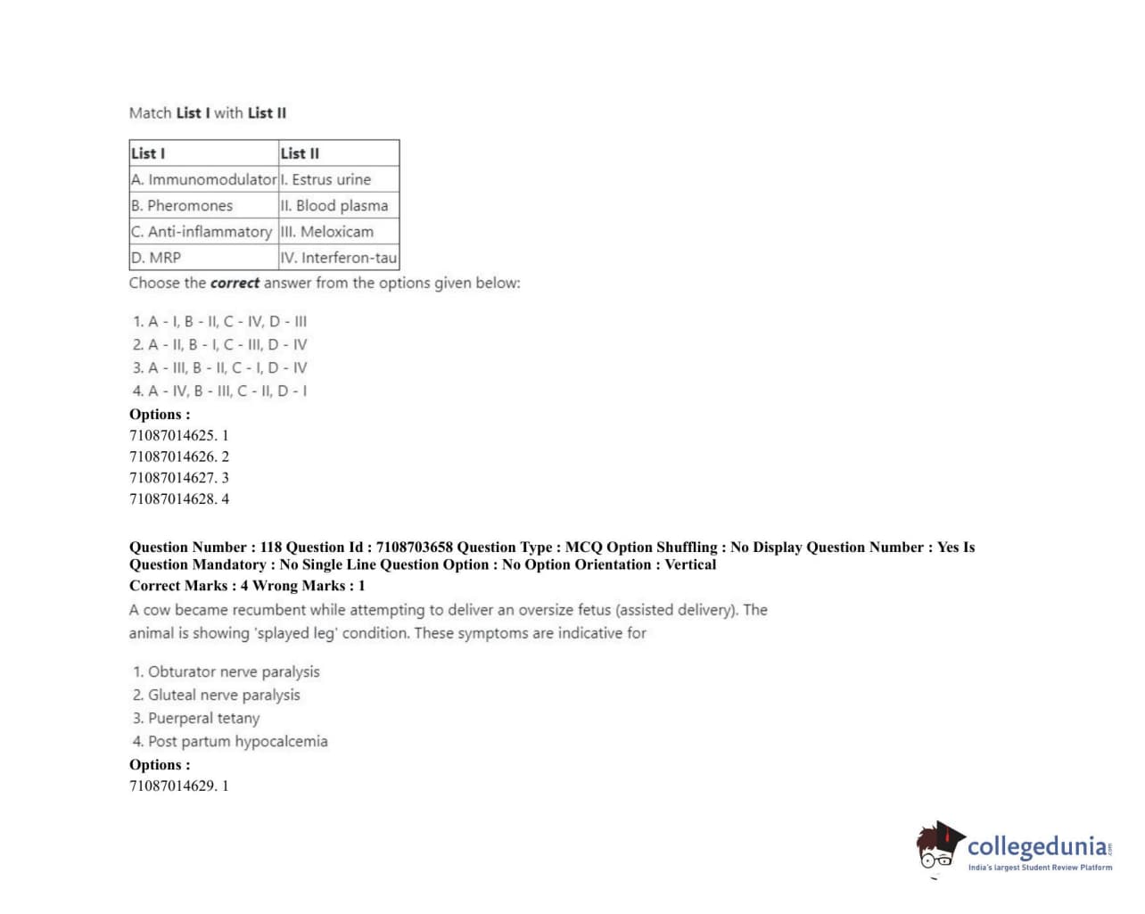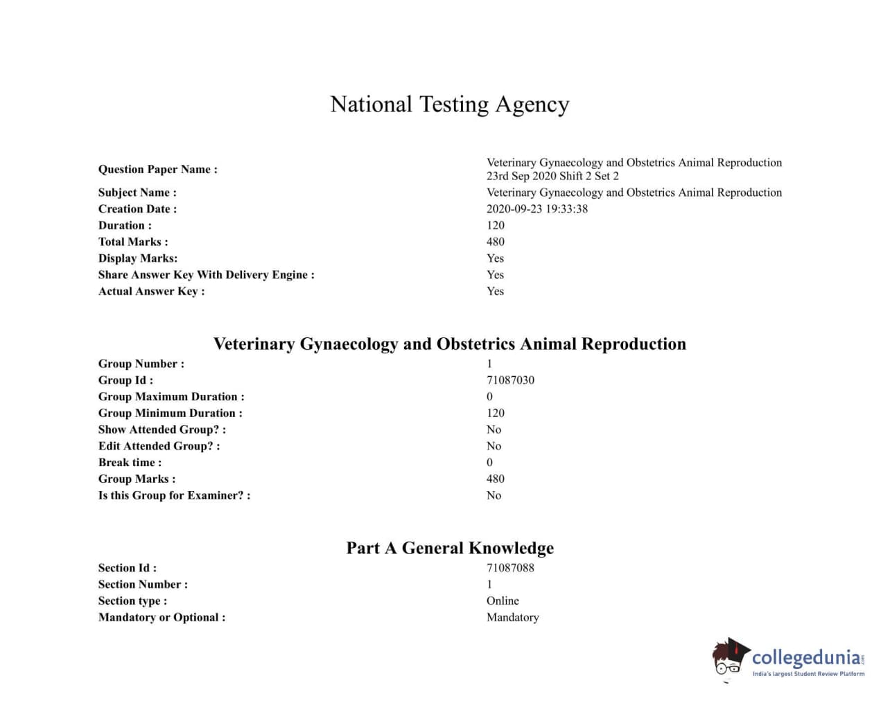 ICAR AIEEA 2020 JRF - VETERINARY GYNAECOLOGY AND OBSTETRICS ANIMAL REPRODUCTION Question Paper with Answer Key PDFs Afternoon Session