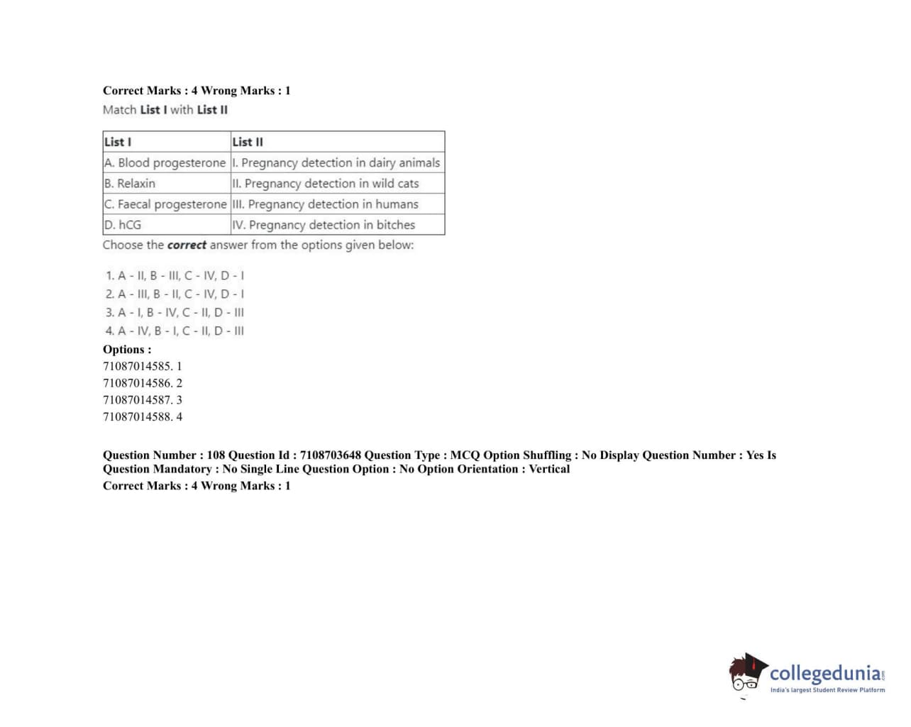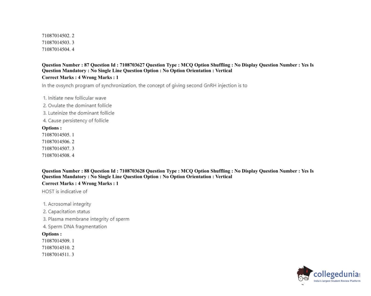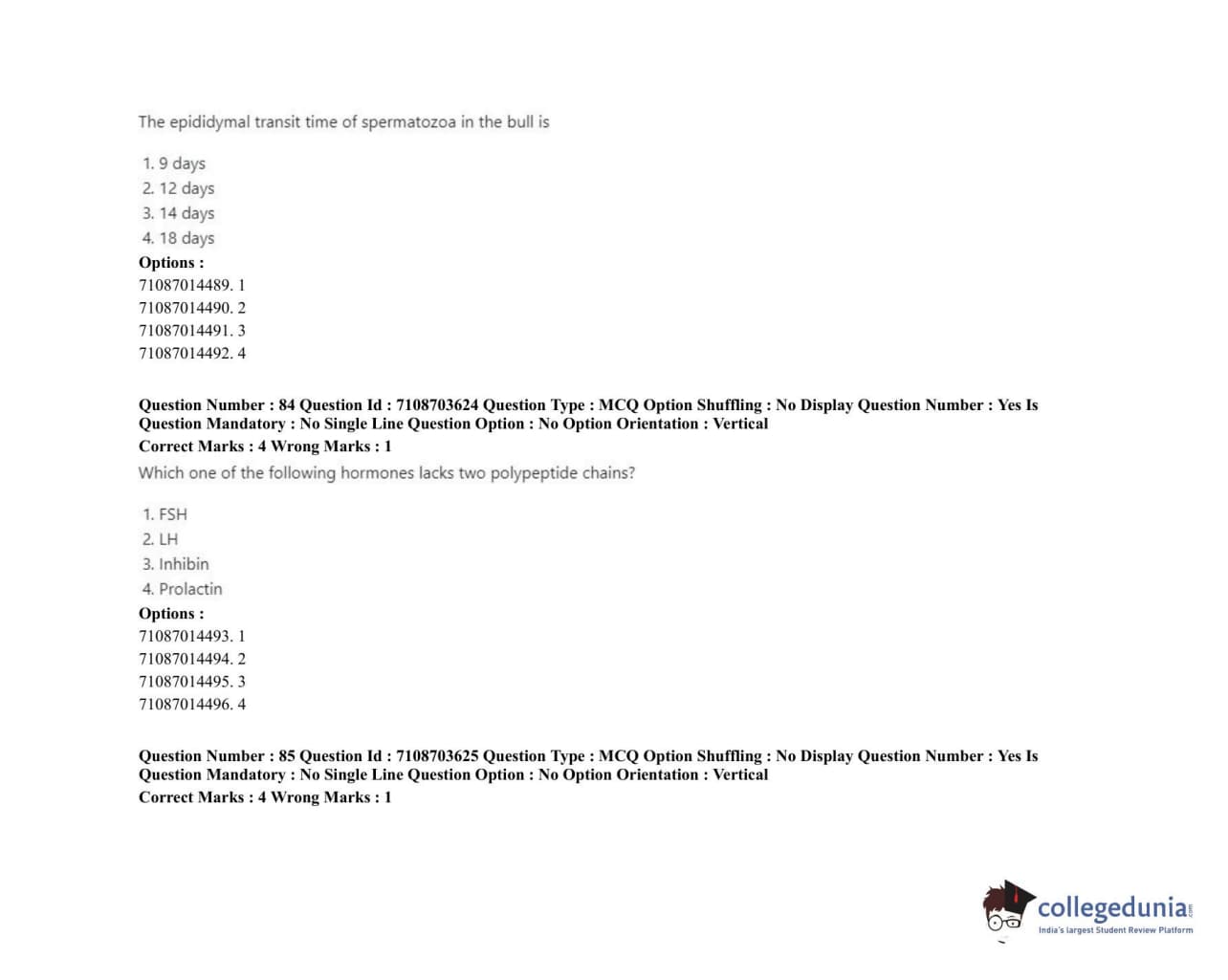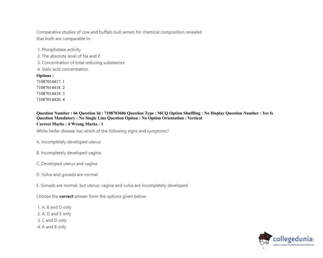 ICAR AIEEA 2020 JRF - VETERINARY GYNAECOLOGY AND OBSTETRICS ANIMAL REPRODUCTION Question Paper with Answer Key PDFs Afternoon Session