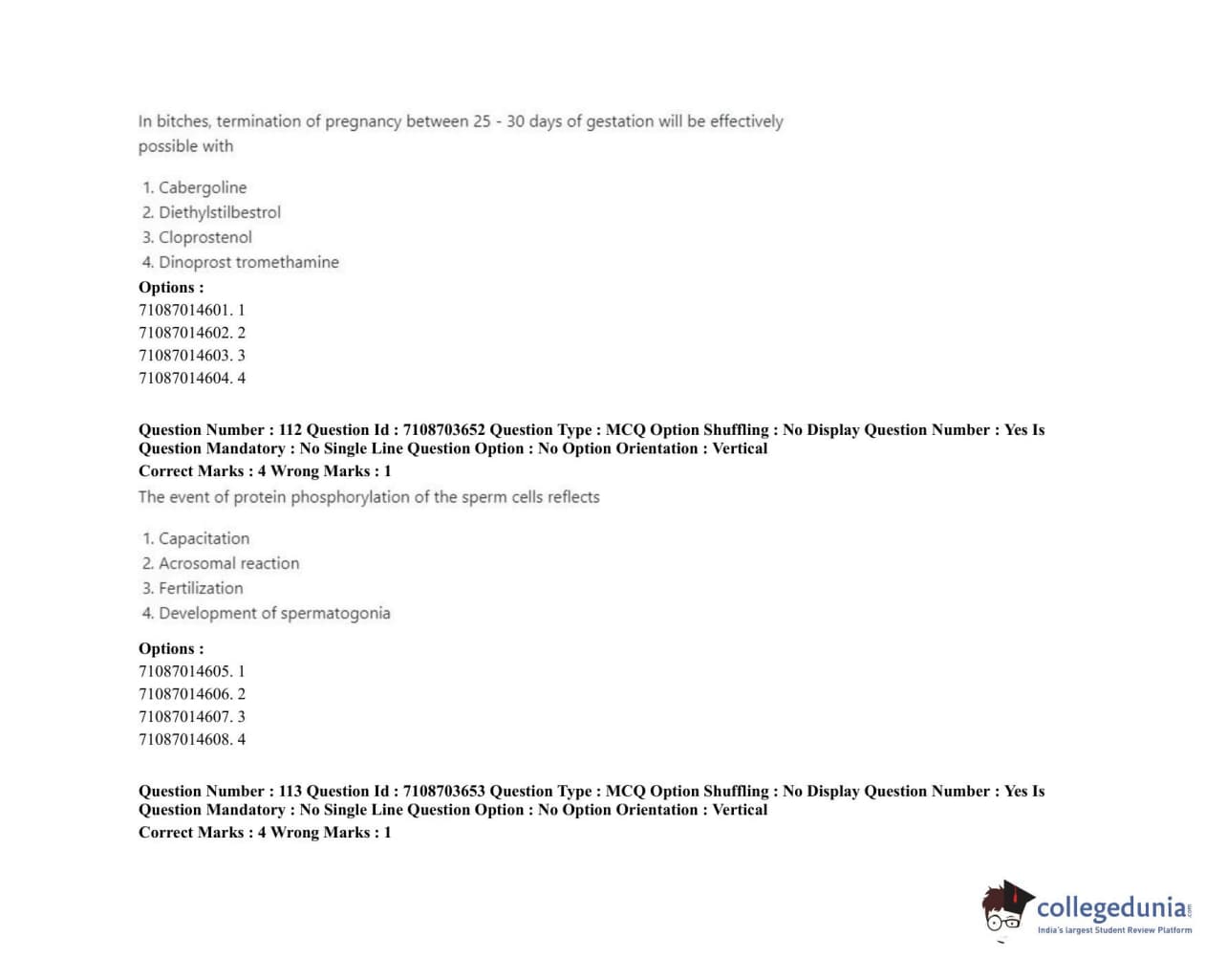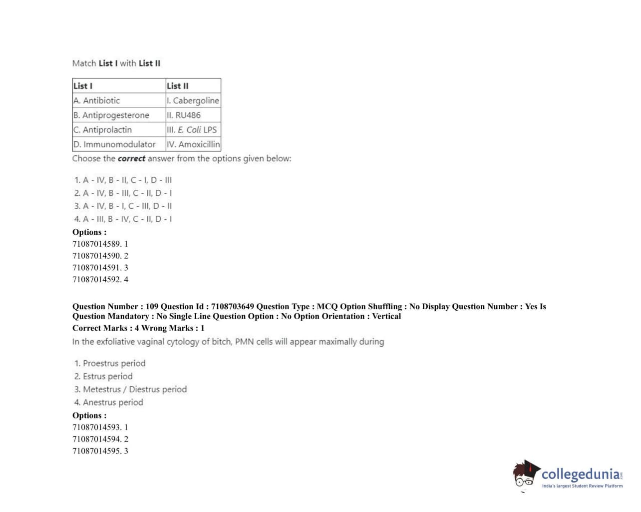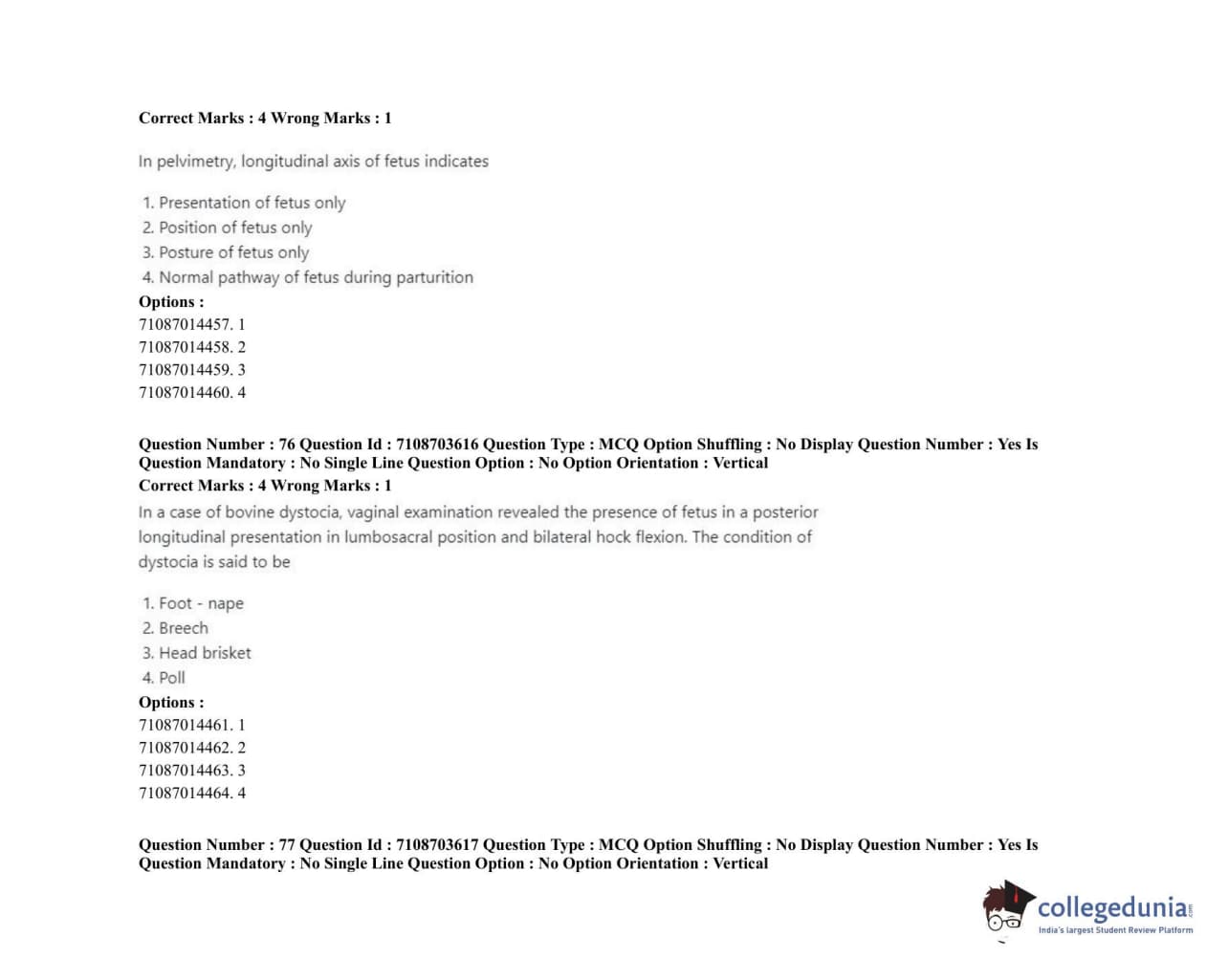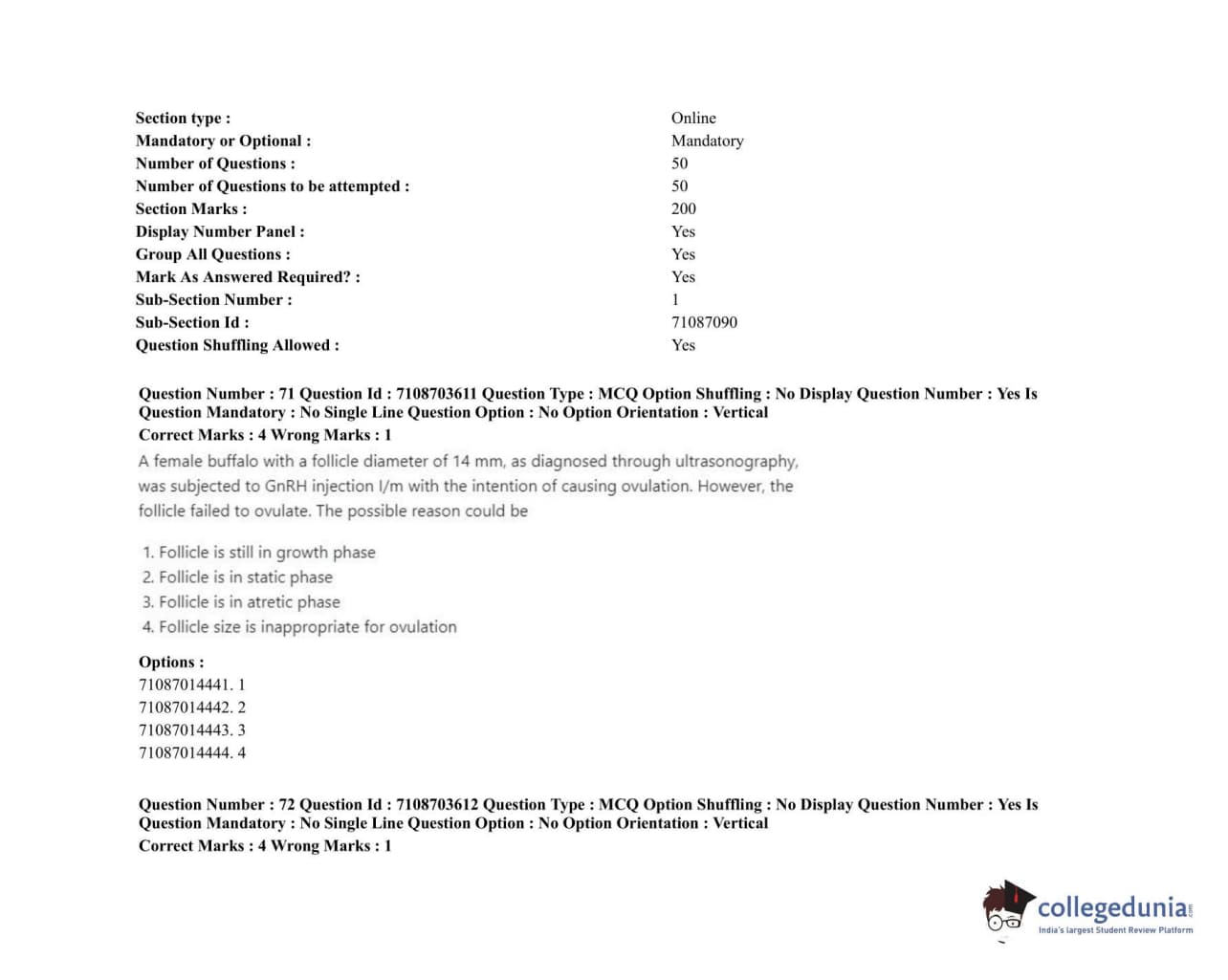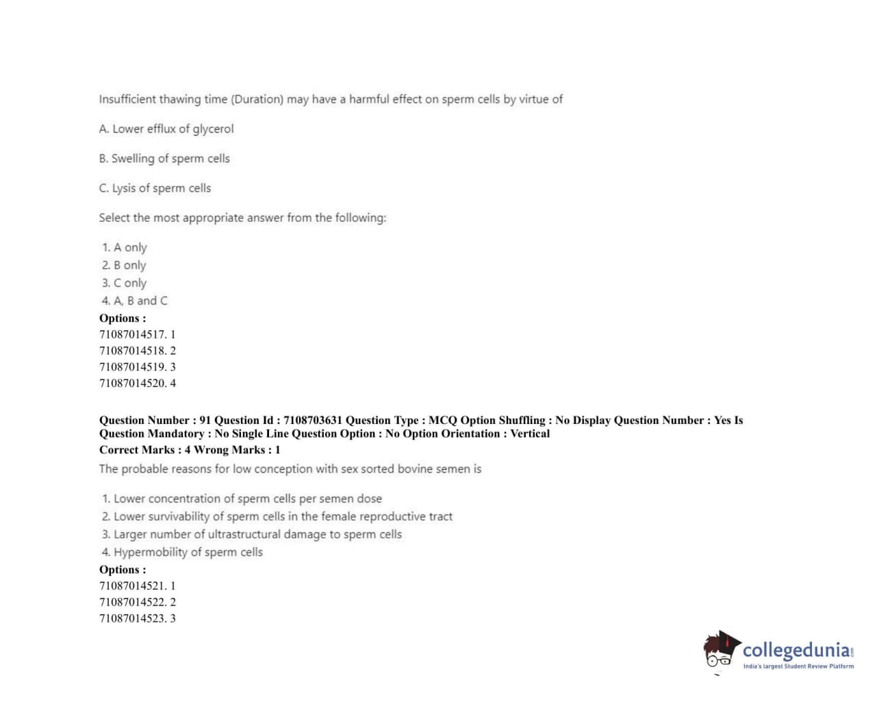 ICAR AIEEA 2020 JRF - VETERINARY GYNAECOLOGY AND OBSTETRICS ANIMAL REPRODUCTION Question Paper with Answer Key PDFs Afternoon Session