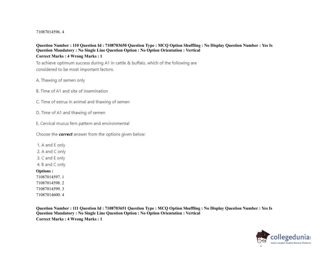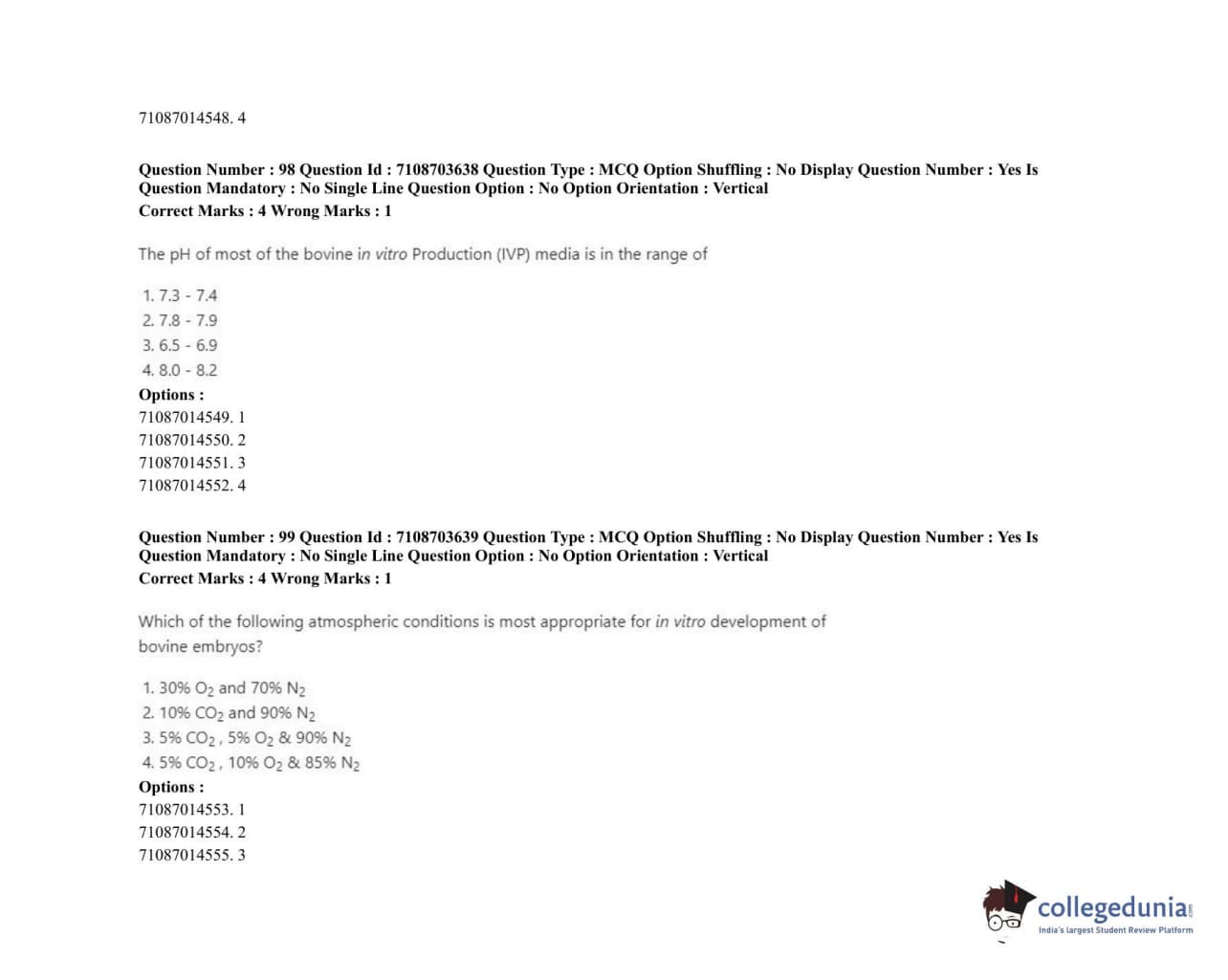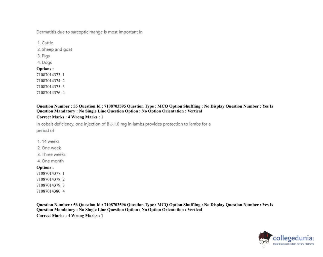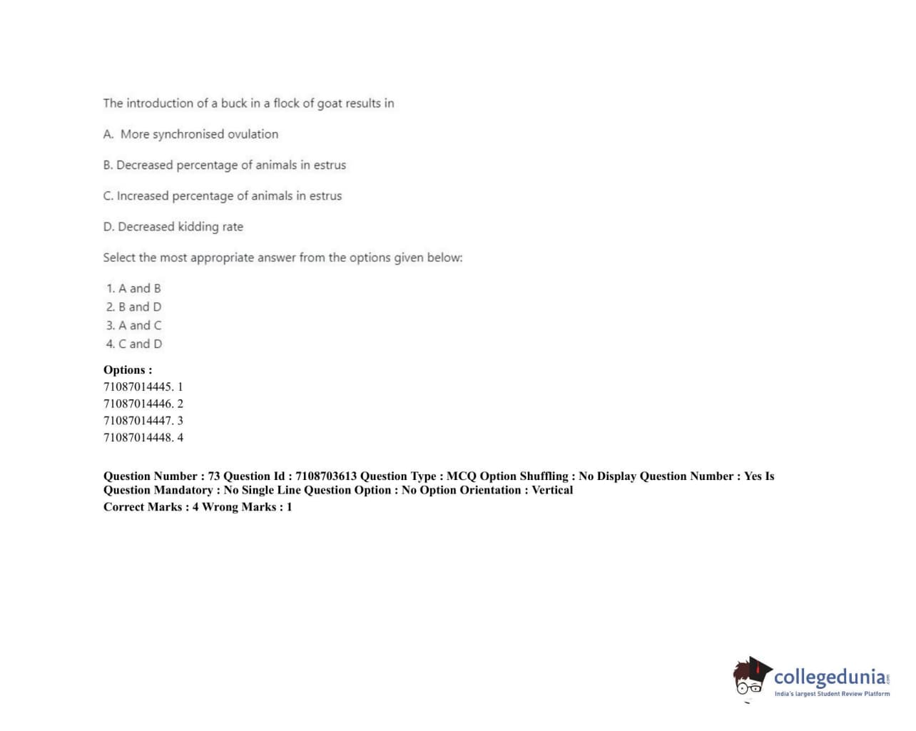 ICAR AIEEA 2020 JRF - VETERINARY GYNAECOLOGY AND OBSTETRICS ANIMAL REPRODUCTION Question Paper with Answer Key PDFs Afternoon Session