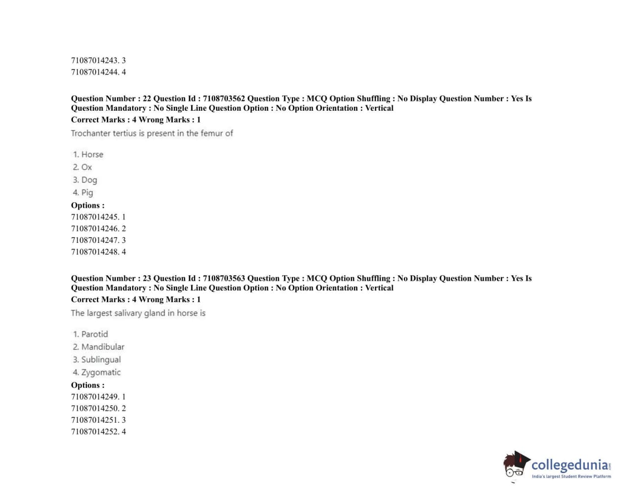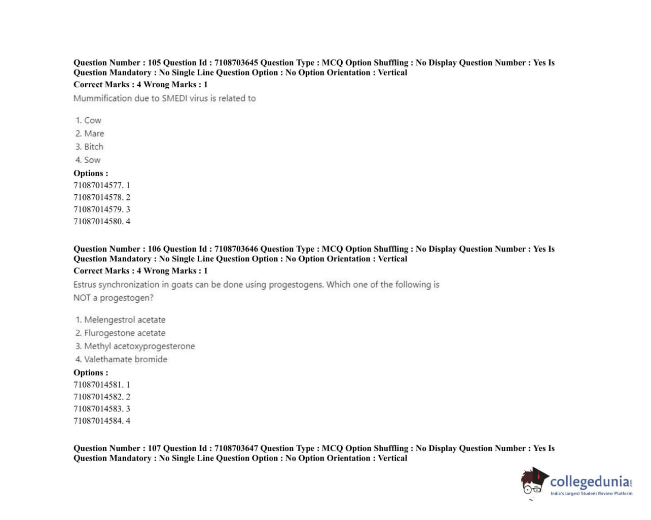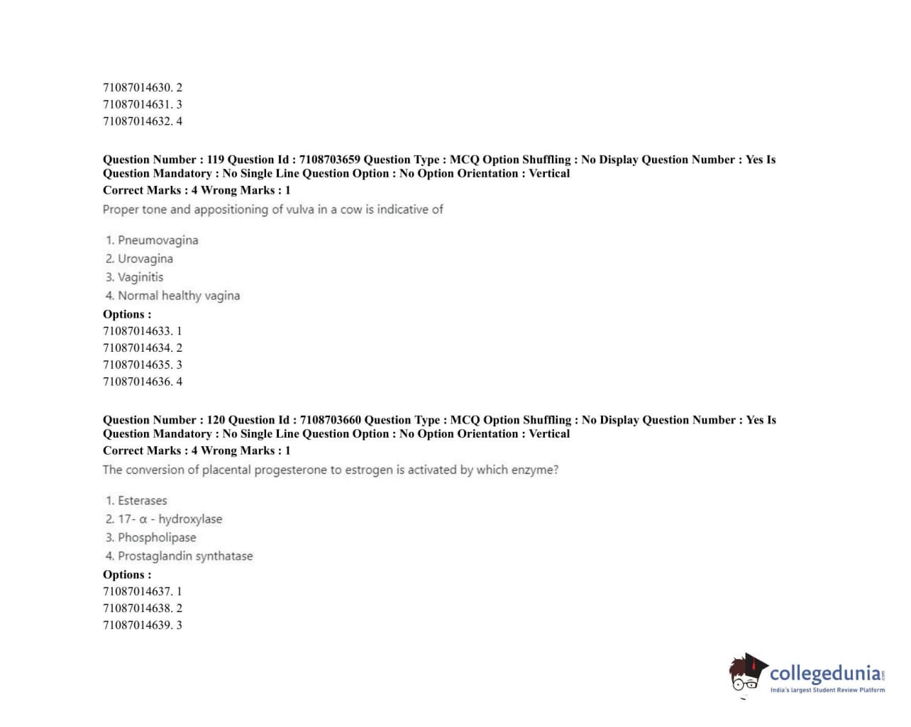 | ICAR AIEEA 2020 JRF - VETERINARY GYNAECOLOGY AND OBSTETRICS ANIMAL REPRODUCTION Question Paper PDF | ICAR AIEEA 2020 JRF - VETERINARY GYNAECOLOGY AND OBSTETRICS ANIMAL REPRODUCTION Answer Key PDF |