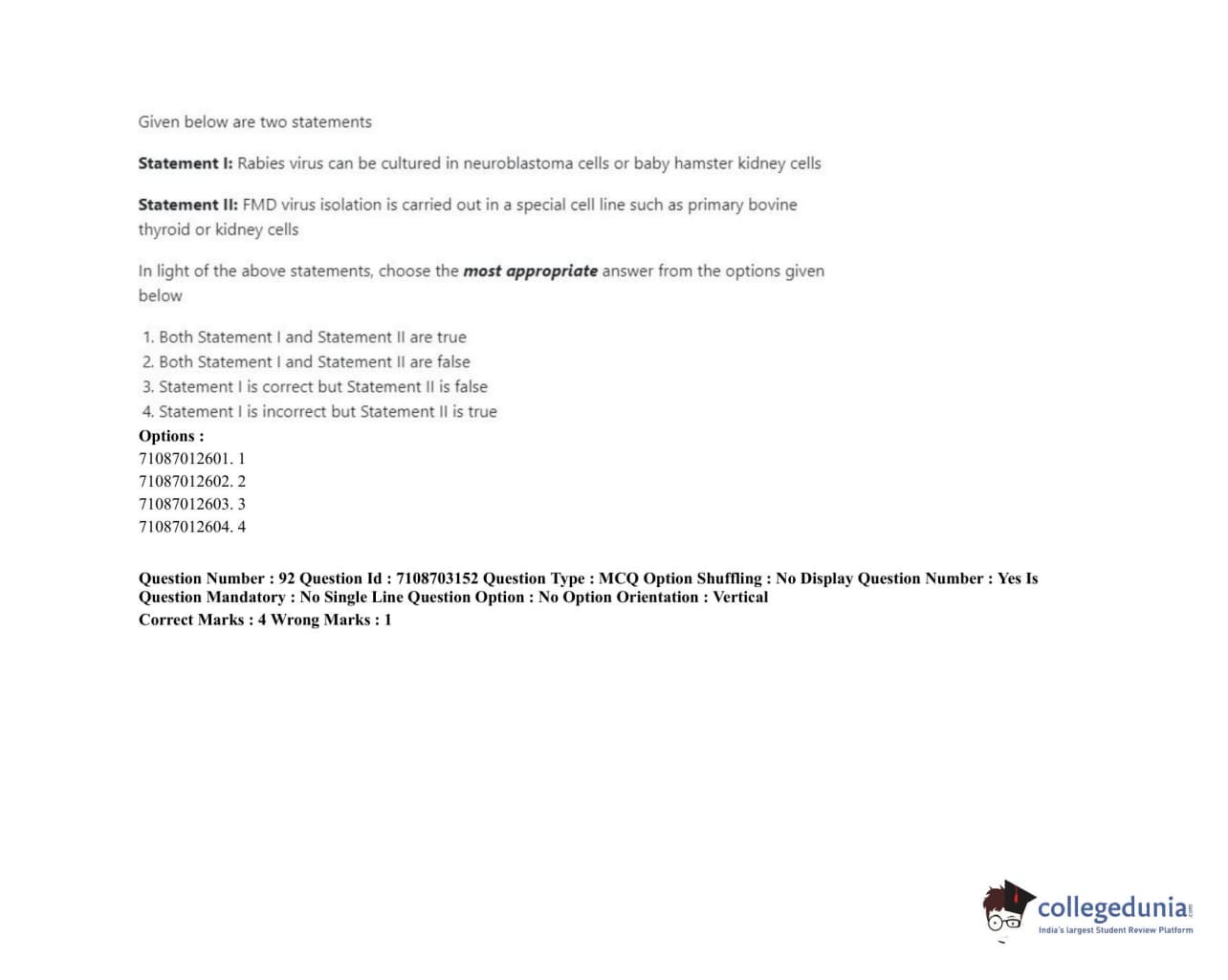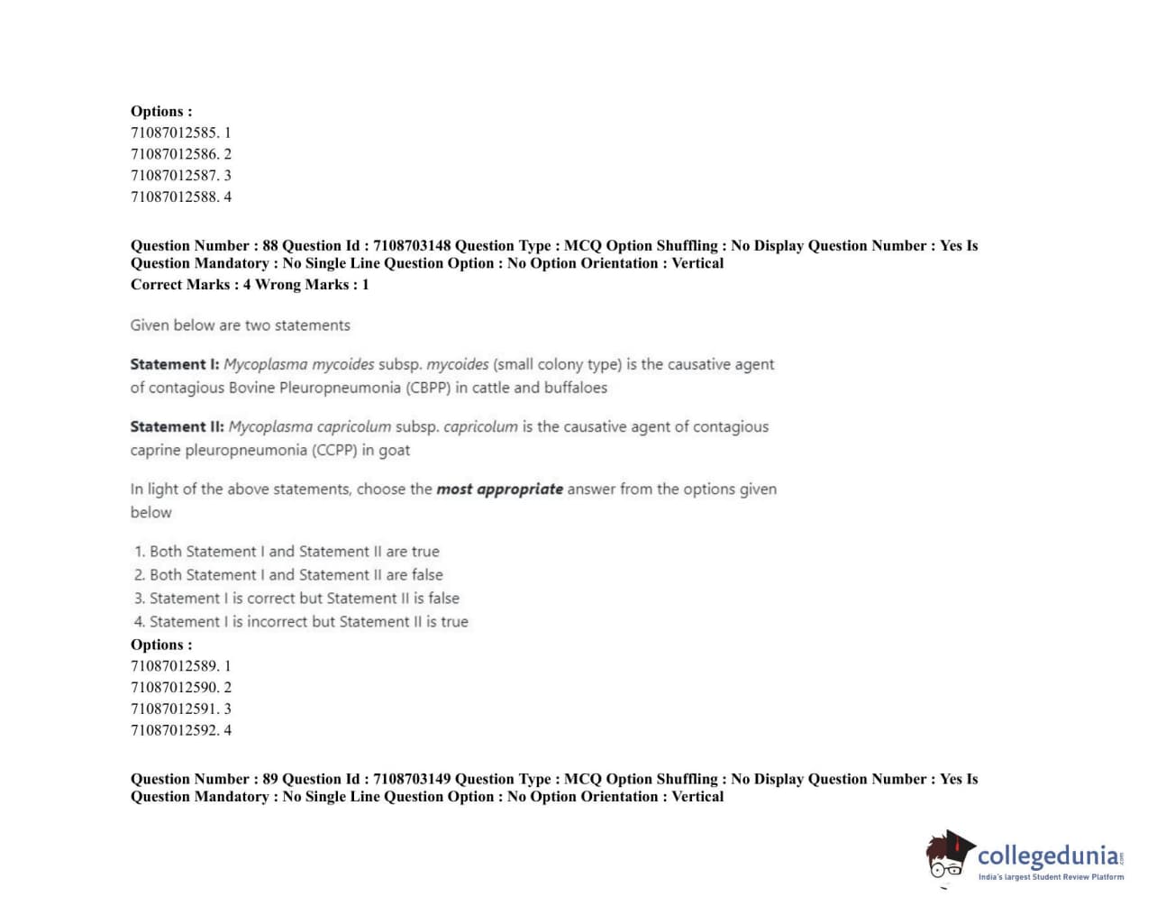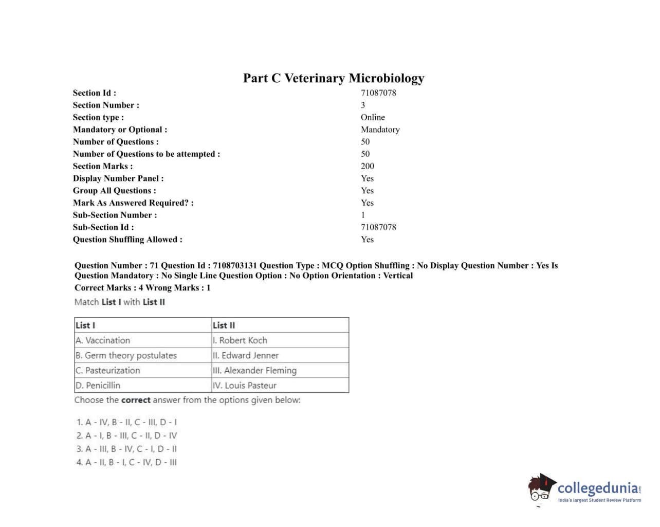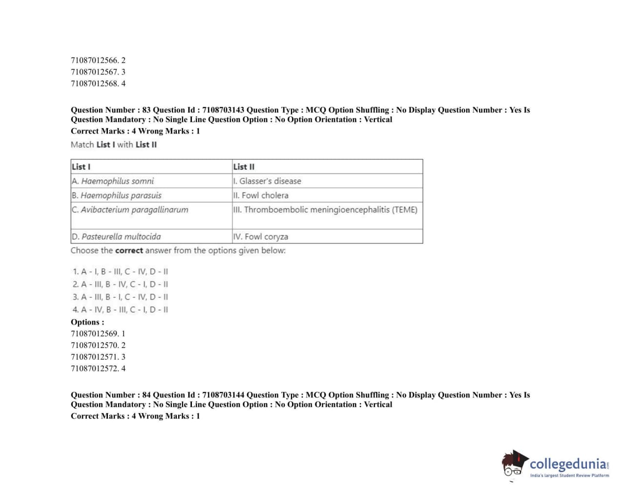 ICAR AIEEA 2020 JRF - VETERINARY MICROBIOLOGY Question Paper with Answer Key PDFs Afternoon Session