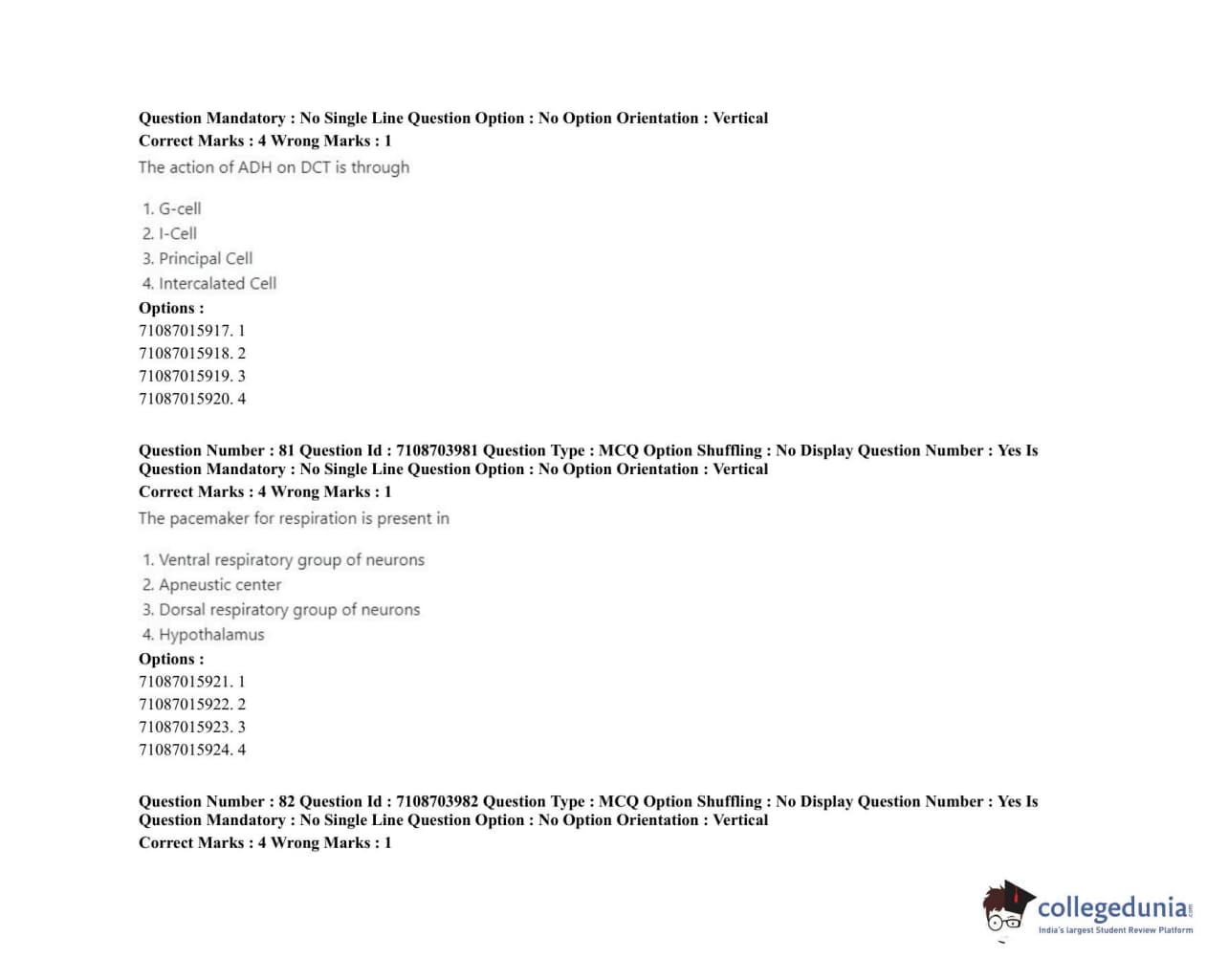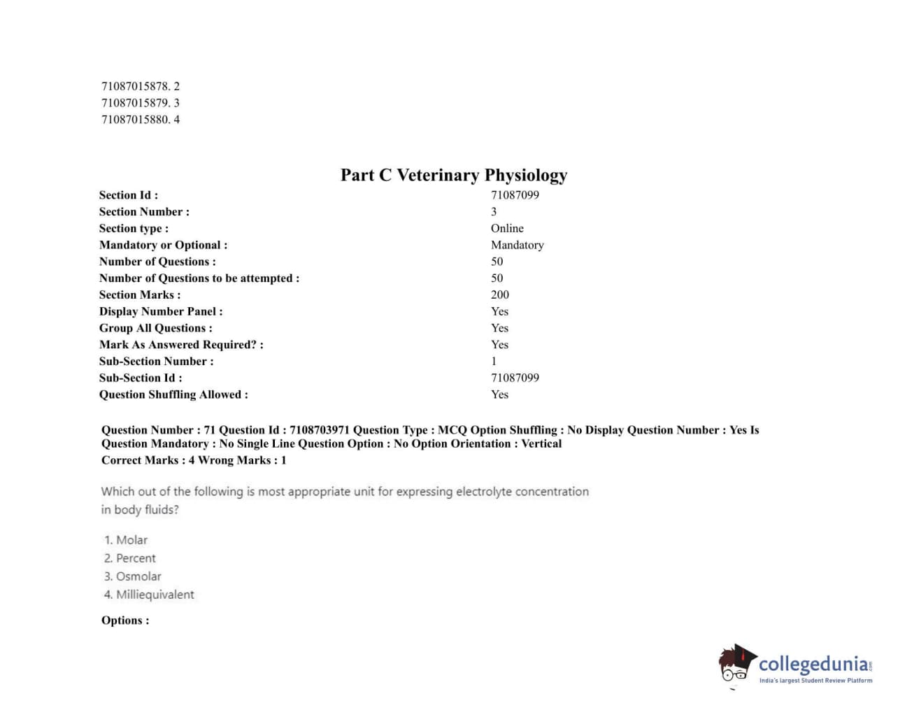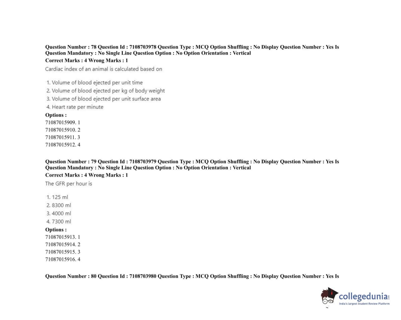 ICAR AIEEA 2020 JRF - VETERINARY PHYSIOLOGY Question Paper with Answer Key PDFs Afternoon Session