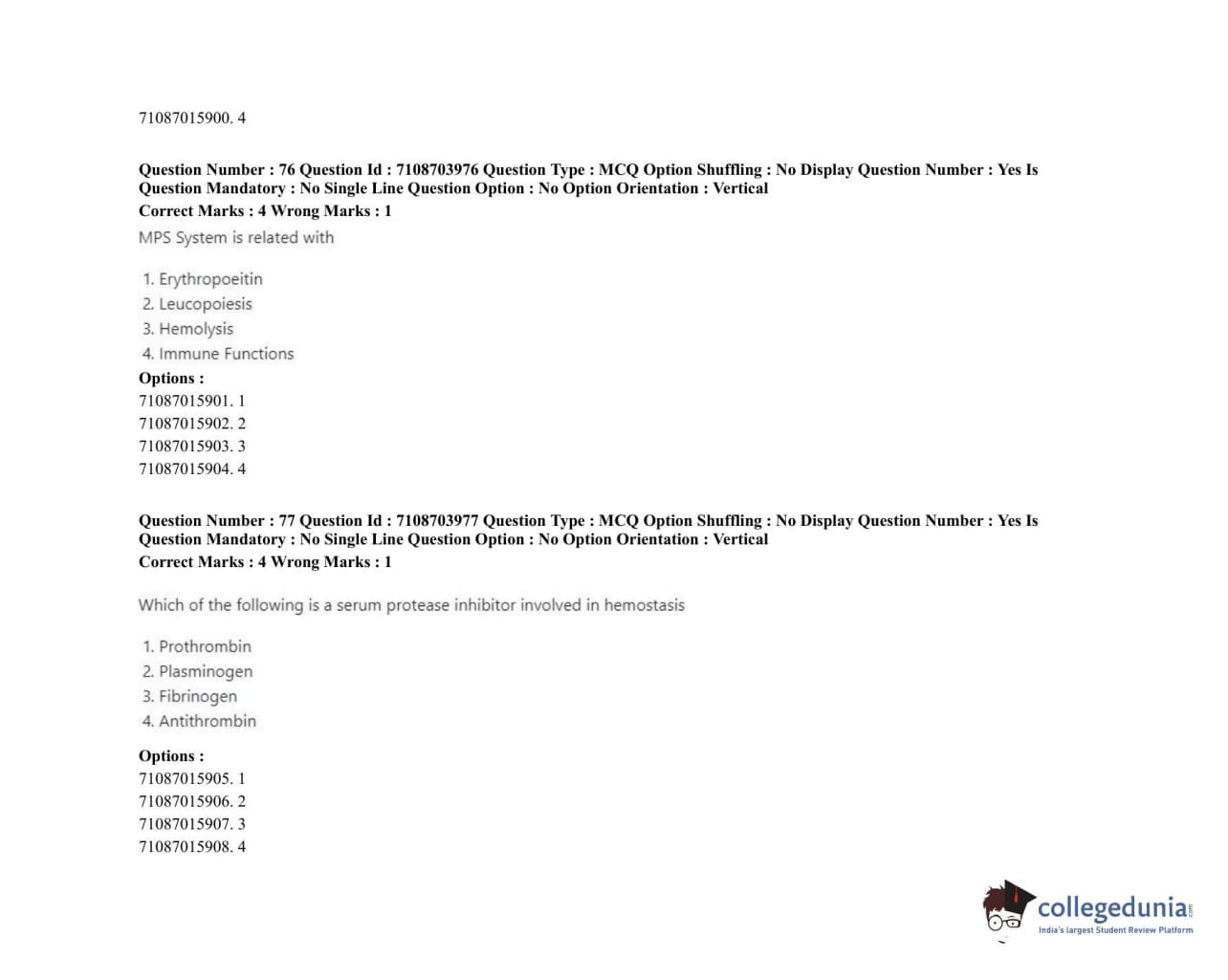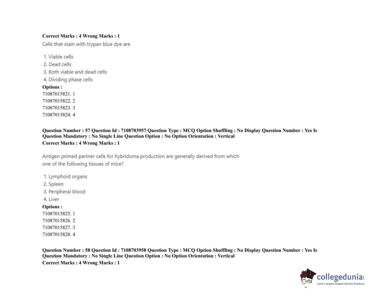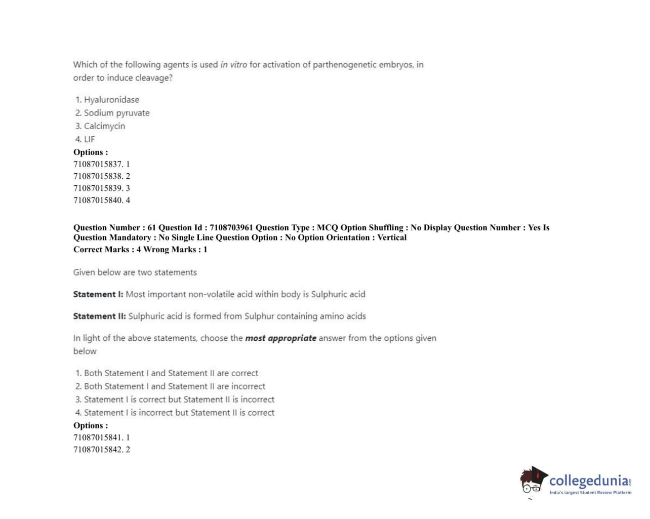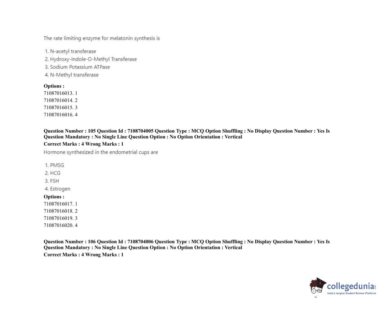 ICAR AIEEA 2020 JRF - VETERINARY PHYSIOLOGY Question Paper with Answer Key PDFs Afternoon Session
