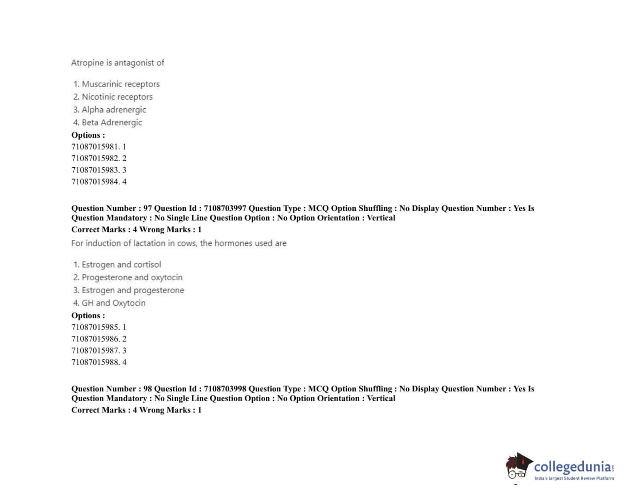 | ICAR AIEEA 2020 JRF - VETERINARY PHYSIOLOGY Question Paper PDF | ICAR AIEEA 2020 JRF - VETERINARY PHYSIOLOGY Answer Key PDF |