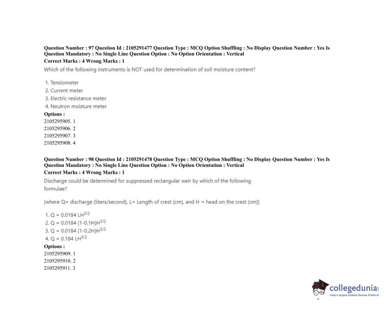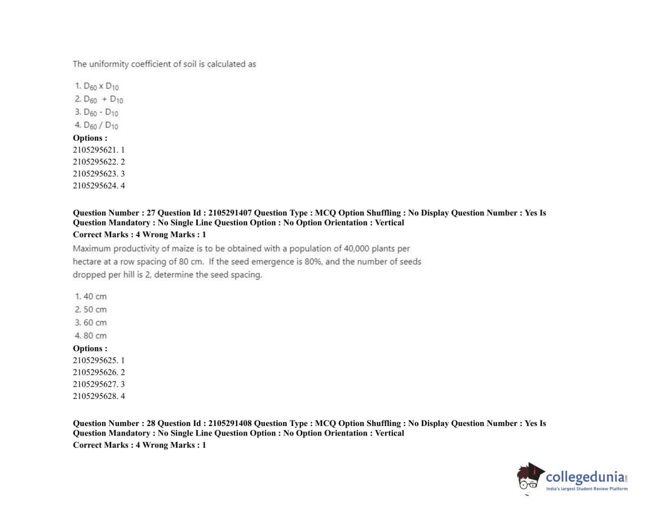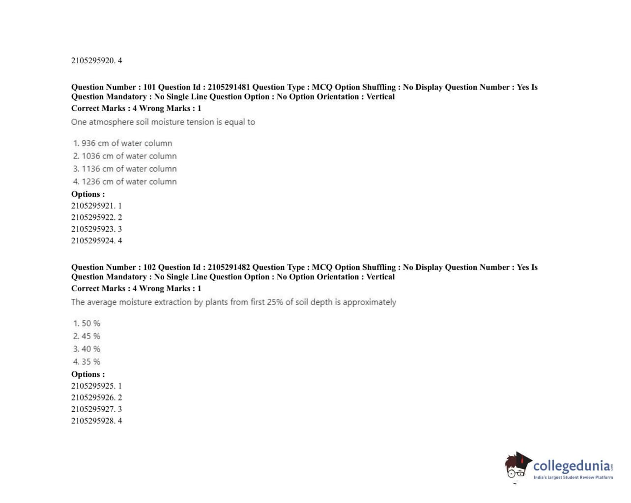 | ICAR AIEEA 2020 PG - AGRICULTURAL ENGINEERING AND TECHNOLOGY Question Paper PDF | ICAR AIEEA 2020 PG - AGRICULTURAL ENGINEERING AND TECHNOLOGY Answer Key PDF |