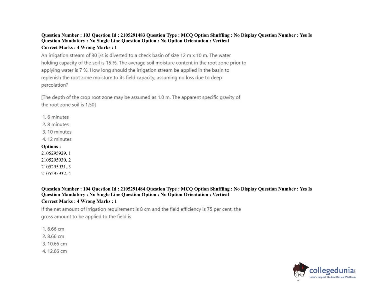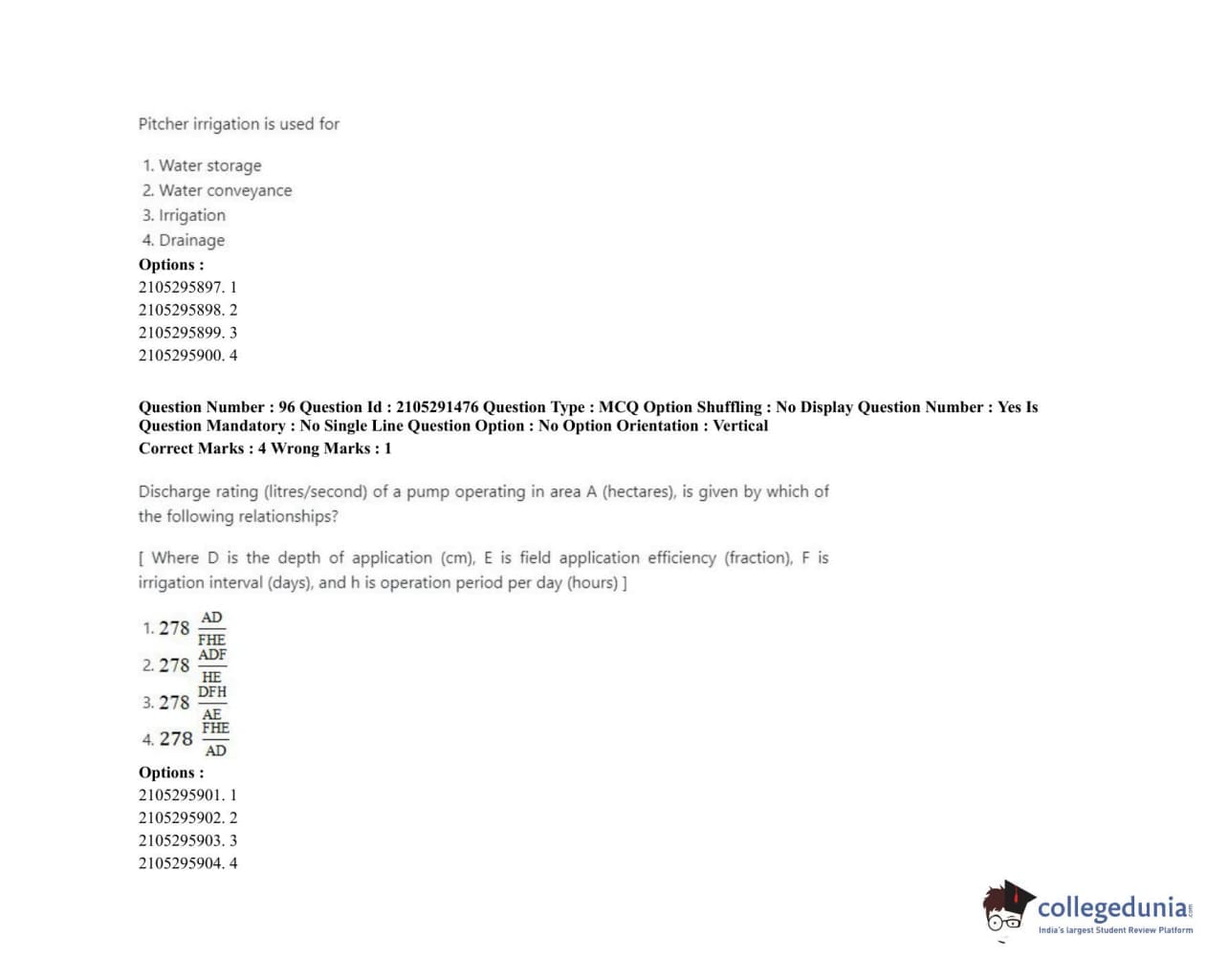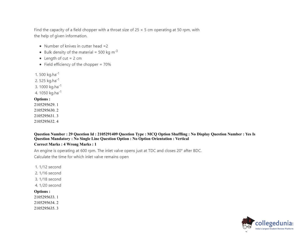 ICAR AIEEA 2020 PG - AGRICULTURAL ENGINEERING AND TECHNOLOGY Question Paper with Answer Key PDF Shift 1