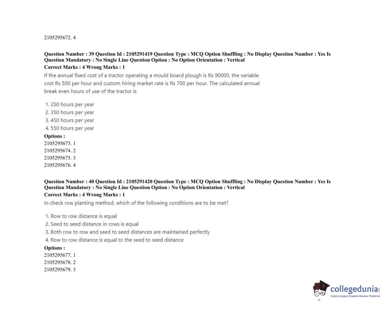 ICAR AIEEA 2020 PG - AGRICULTURAL ENGINEERING AND TECHNOLOGY Question paper with answer key pdf conducted on September 23, 2020 in Shift 1 for Set 2 is available for download. The exam was successfully organized by National Testing Agency (NTA). The question paper comprised a total of 120 questions.