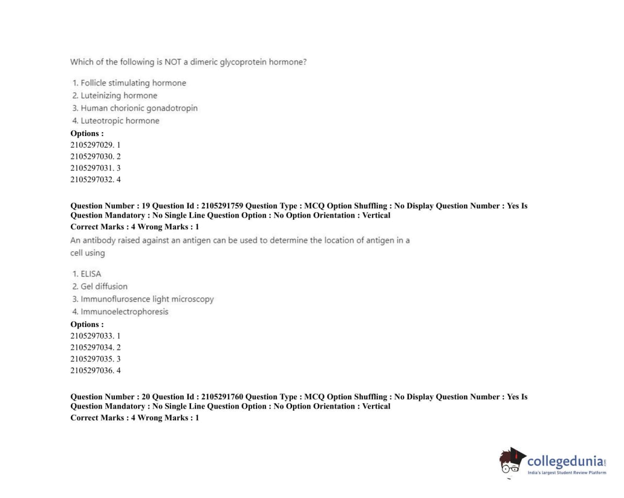 ICAR AIEEA 2020 PG - ANIMAL BIOTECHNOLOGY Question Paper with Answer Key PDFs Shift 1
