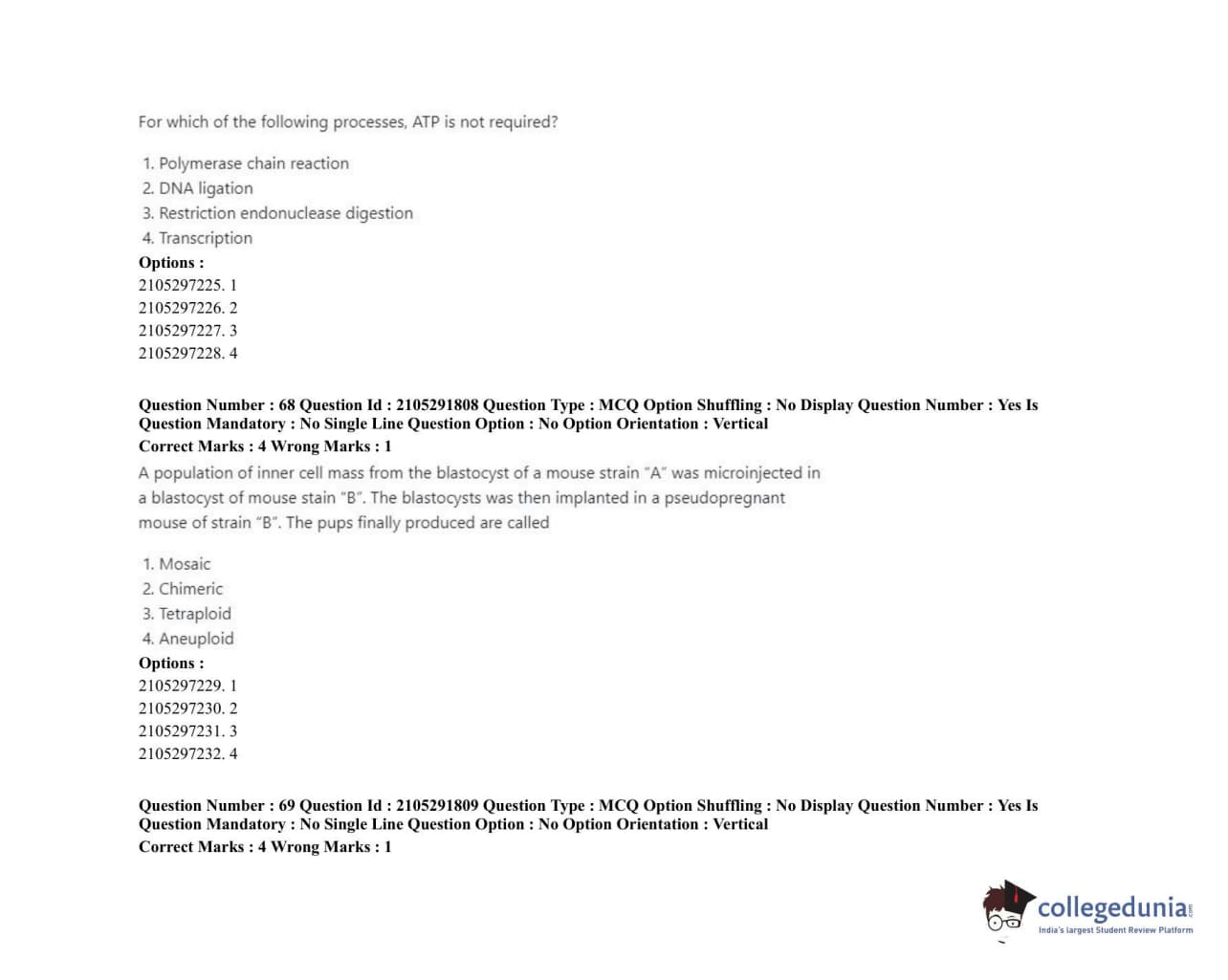 ICAR AIEEA 2020 PG - ANIMAL BIOTECHNOLOGY Question paper with answer key pdf conducted on September 23, 2020 in Shift 1 for Set 2 is available for download. The exam was successfully organized by National Testing Agency (NTA). The question paper comprised a total of 120 questions.