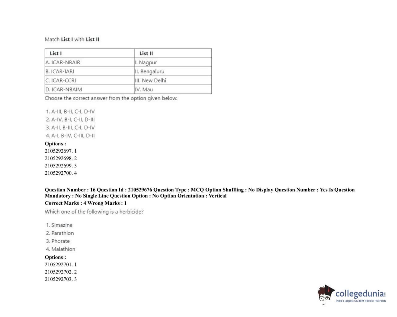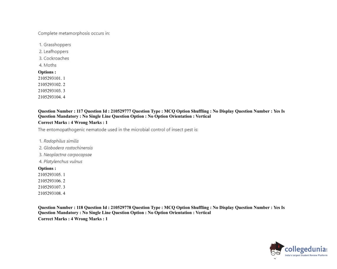 ICAR AIEEA 2020 PG - ENTOMOLOGY AND NEMATOLOGY Question paper with answer key pdf conducted on September 23, 2020 in Shift 1 for Set 2 is available for download. The exam was successfully organized by National Testing Agency (NTA). The question paper comprised a total of 120 questions.