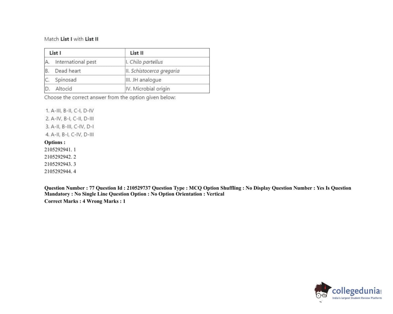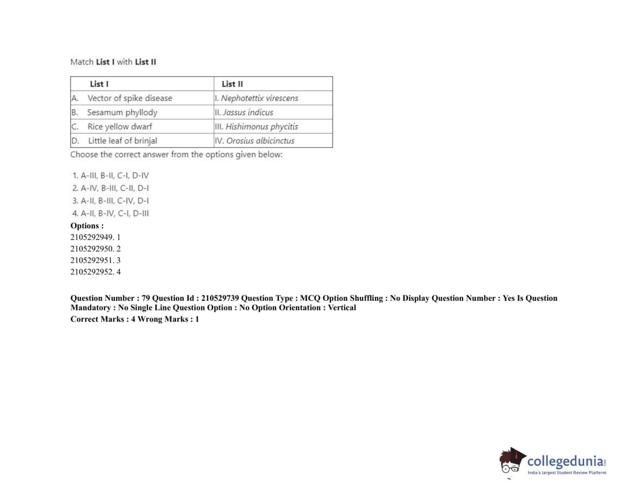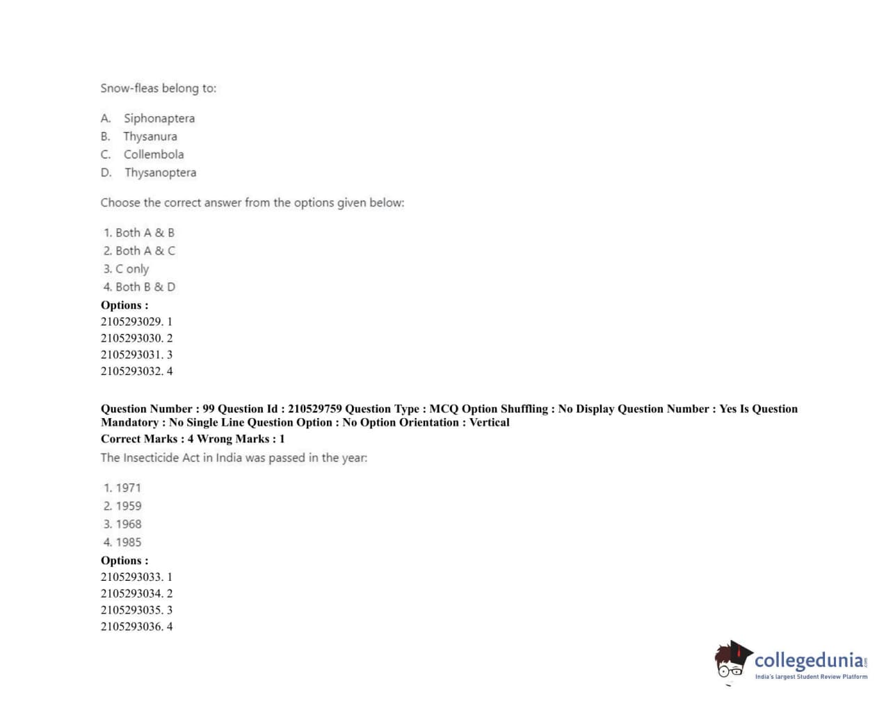 ICAR AIEEA 2020 PG - ENTOMOLOGY AND NEMATOLOGY Question Paper with Answer Key PDFs Shift 1