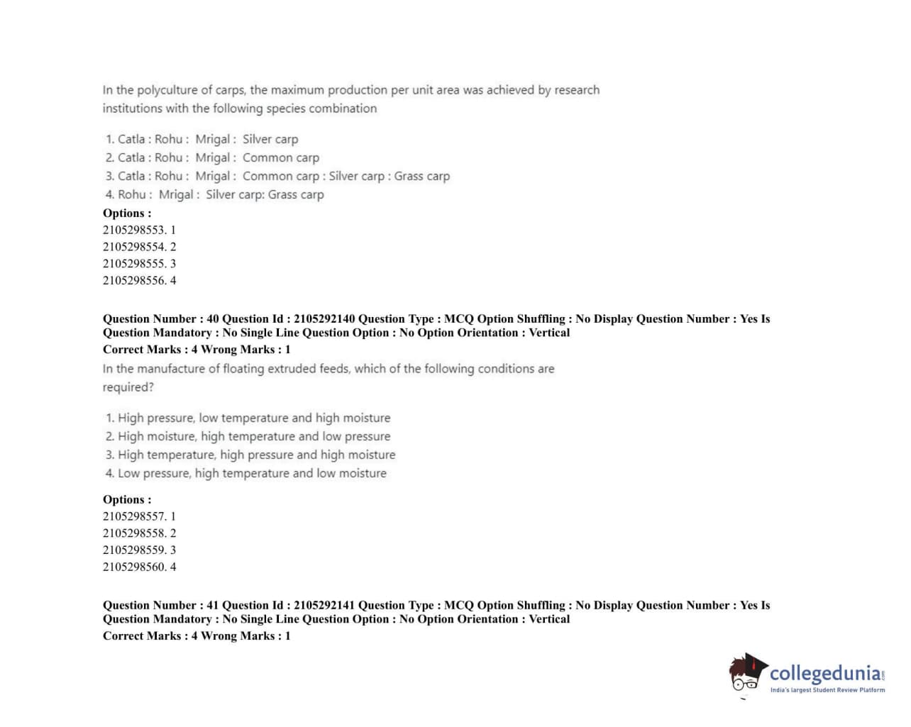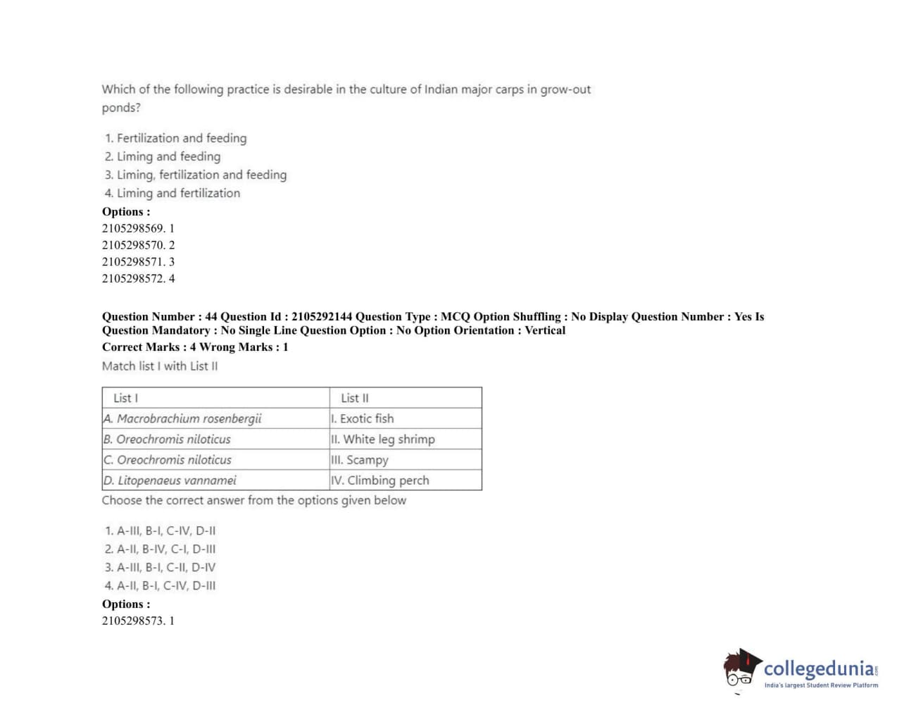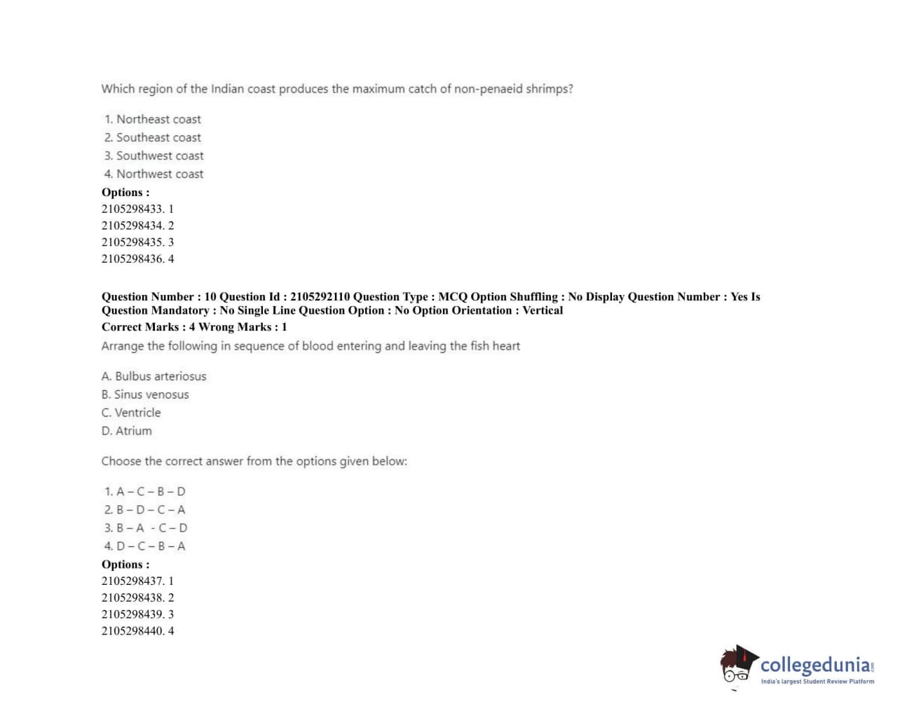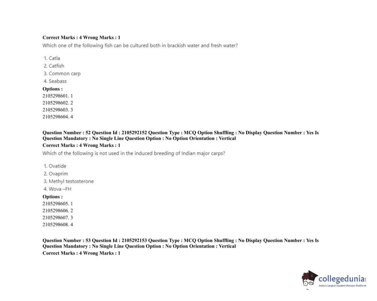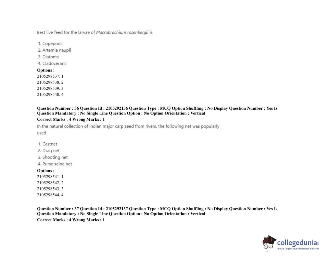 ICAR AIEEA 2020 PG - FISHERIES SCIENCES Question Paper with Answer Key PDFs Shift 1
