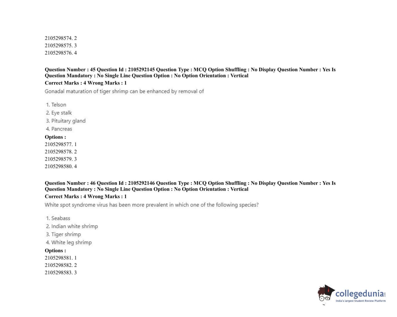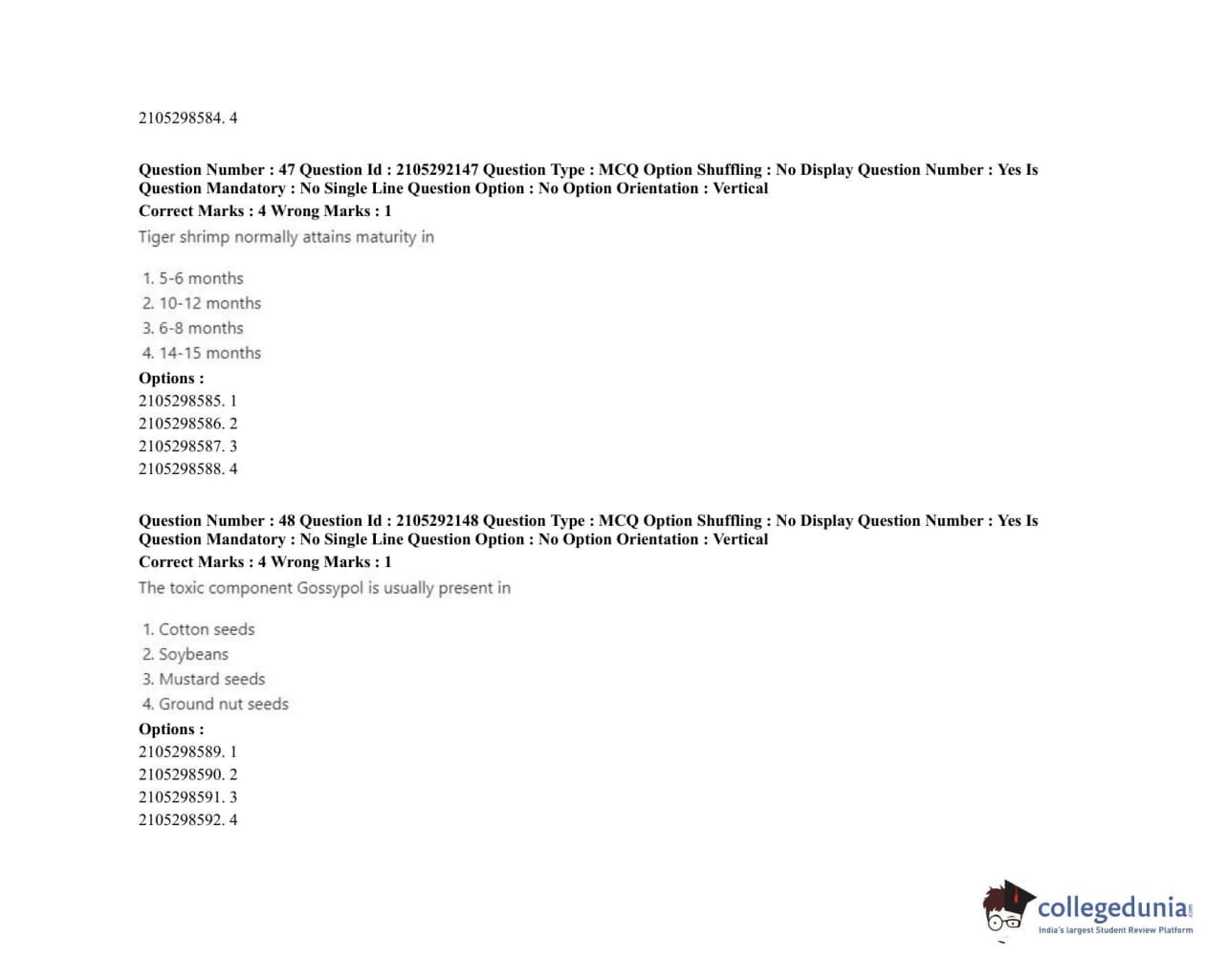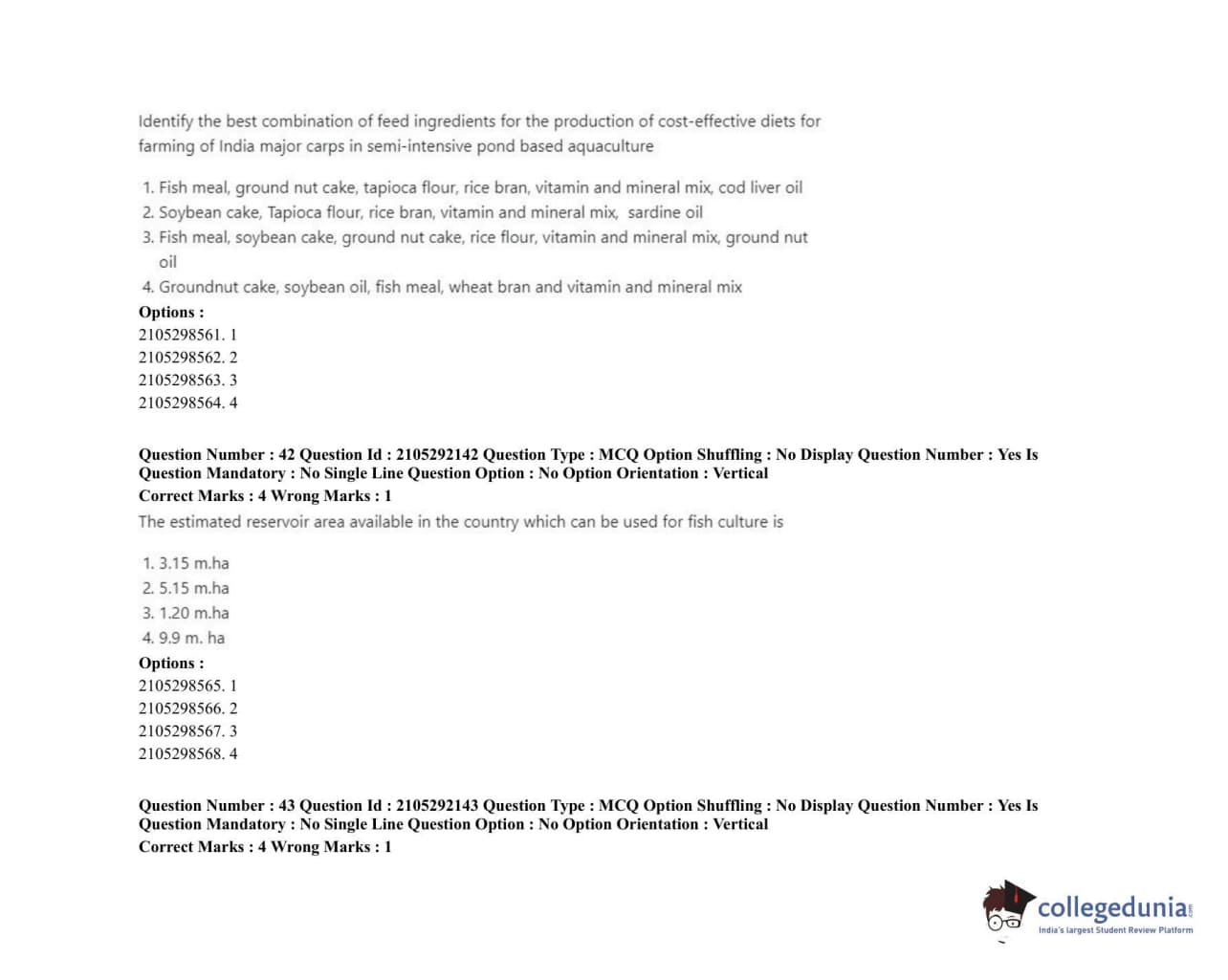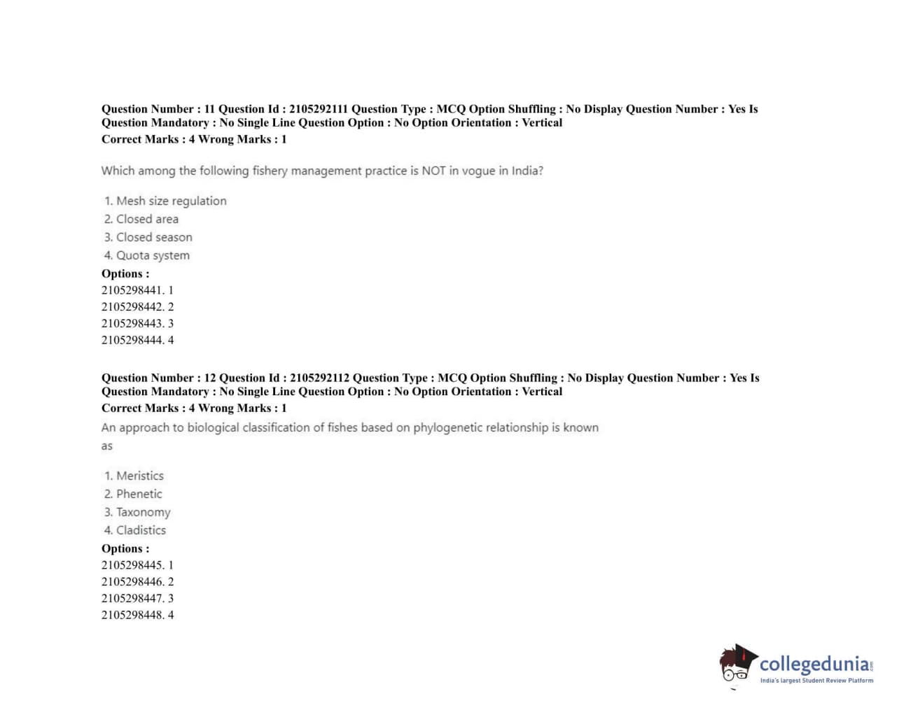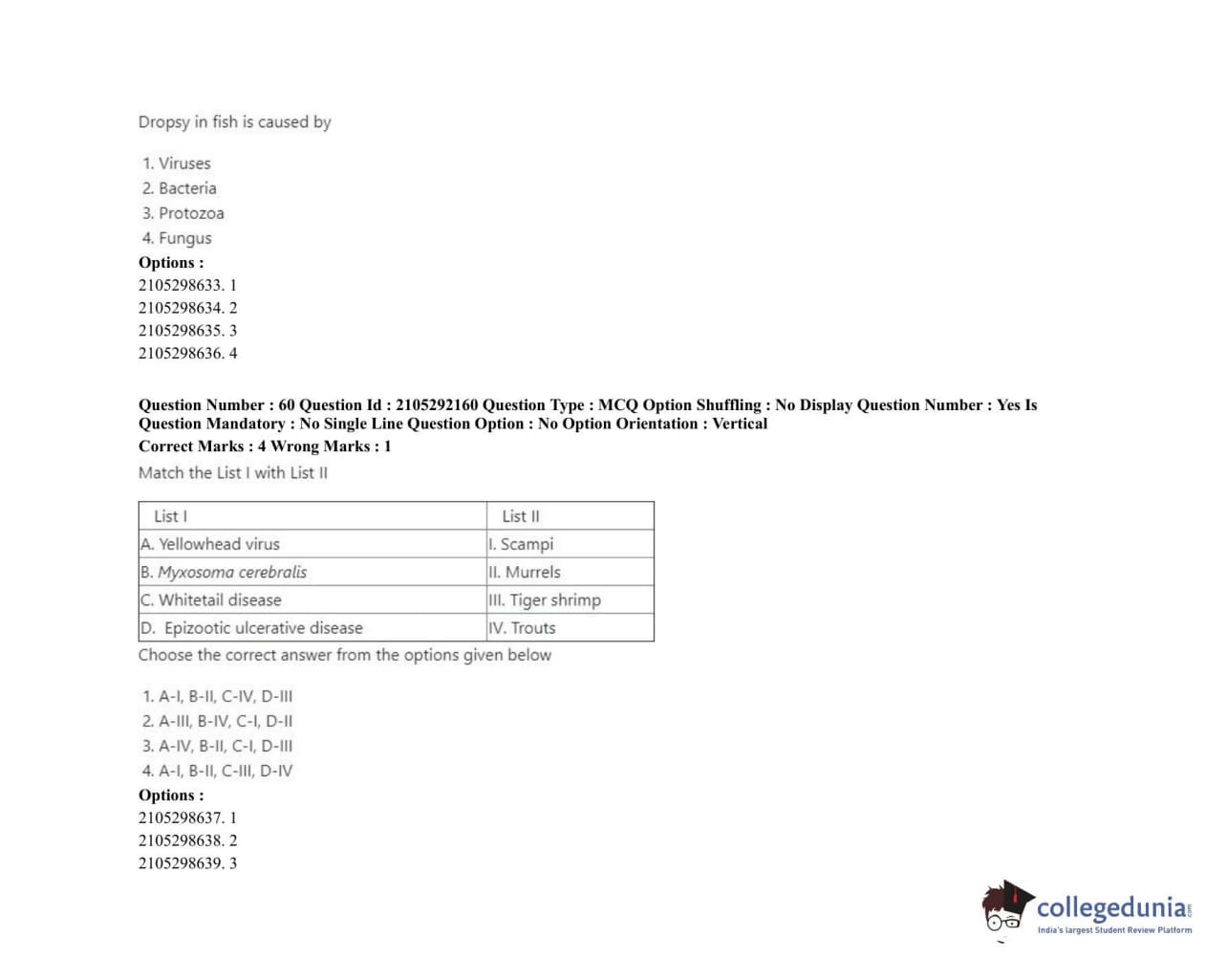 ICAR AIEEA 2020 PG - FISHERIES SCIENCES Question Paper with Answer Key PDFs Shift 1