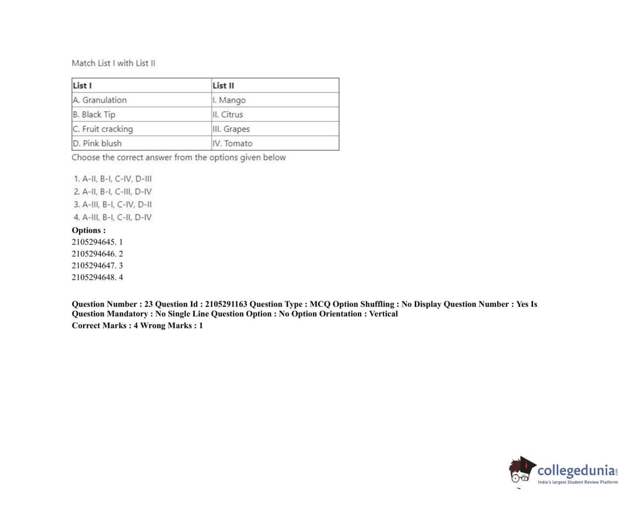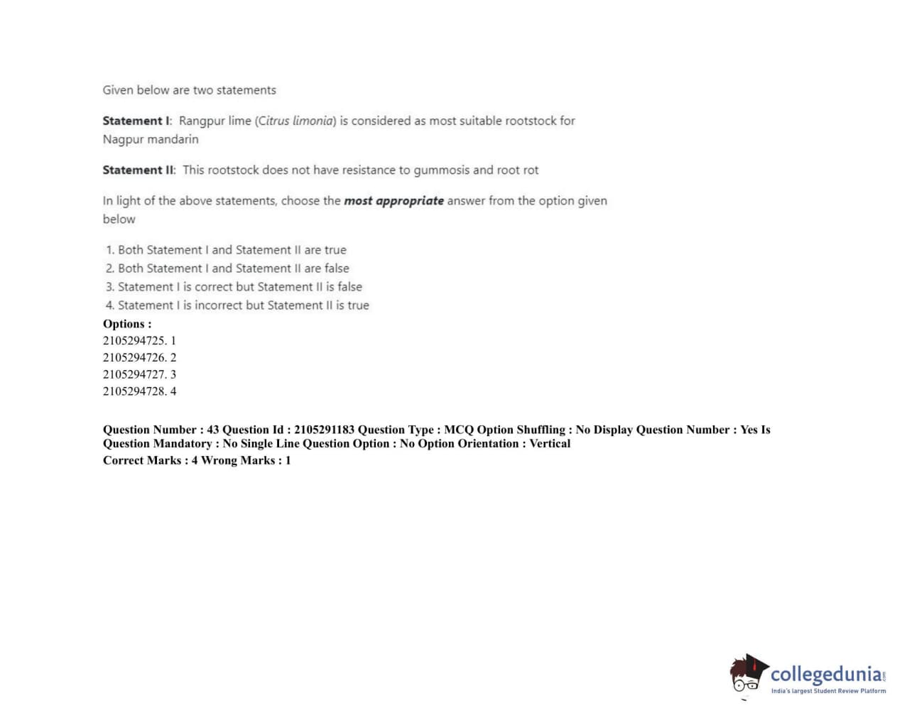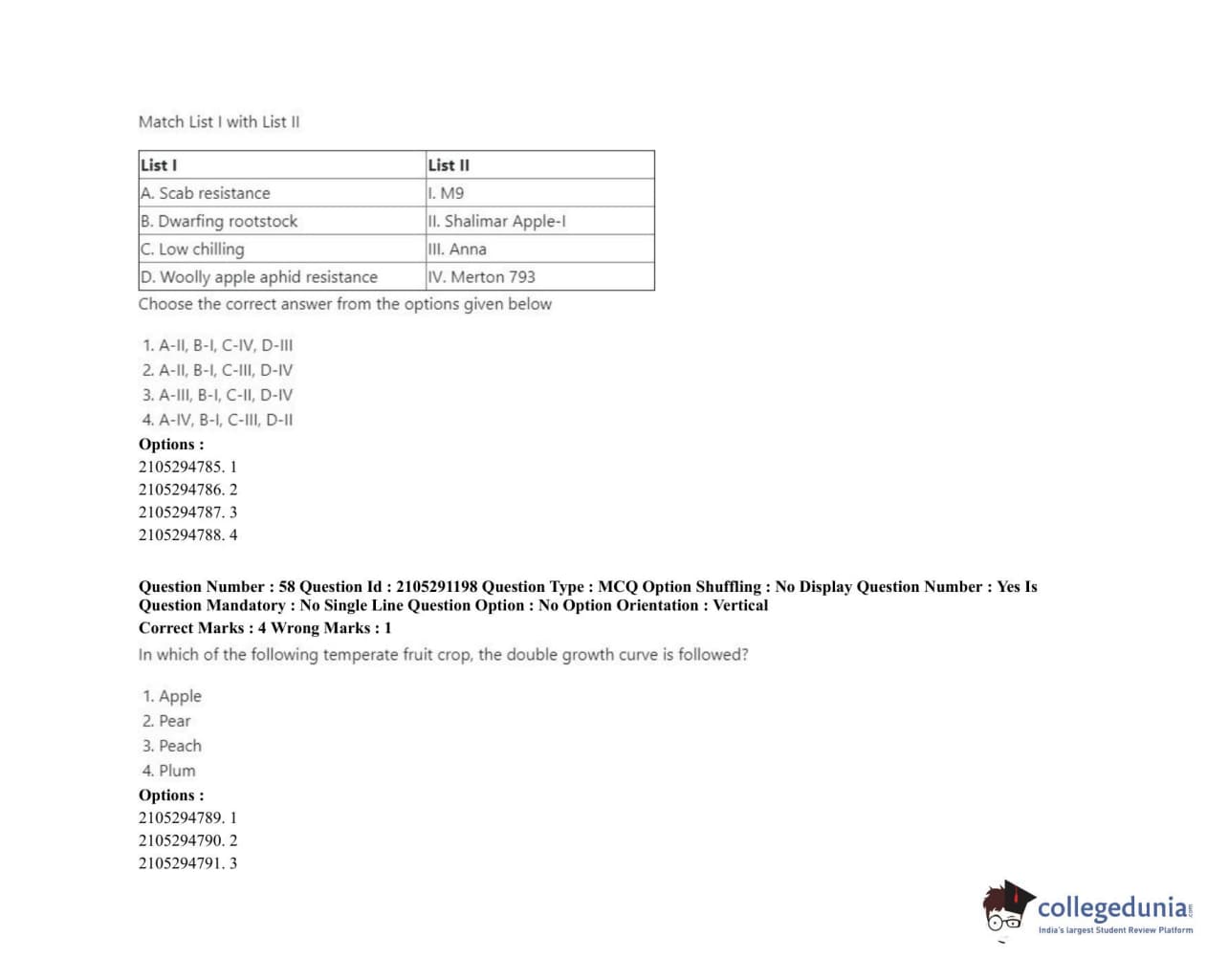 ICAR AIEEA 2020 PG - HORTICULTURE Question Paper with Answer Key PDFs Shift 1