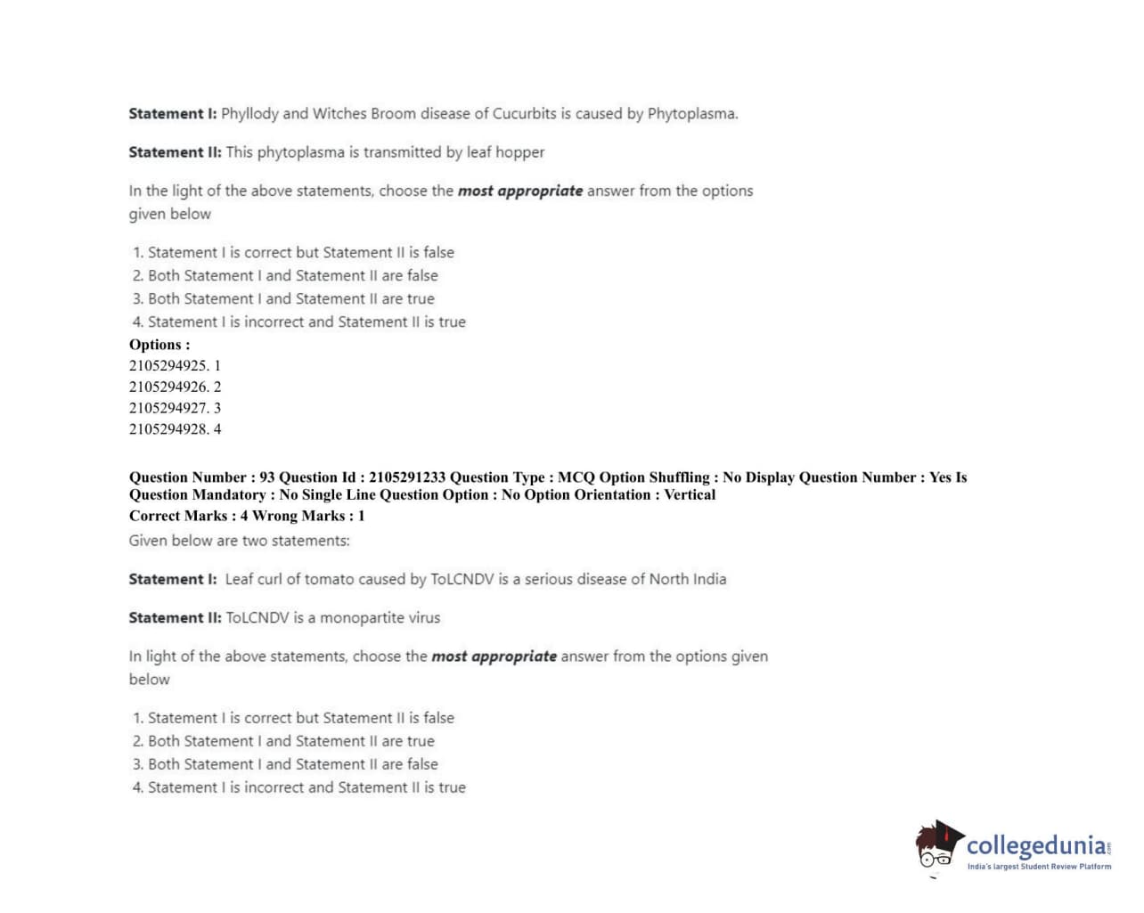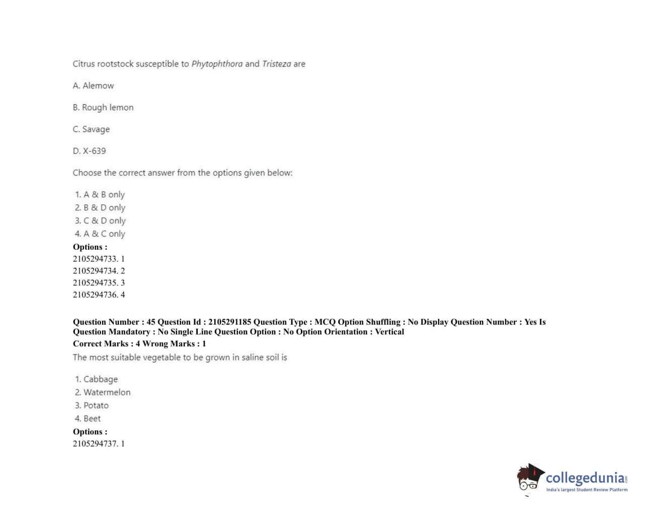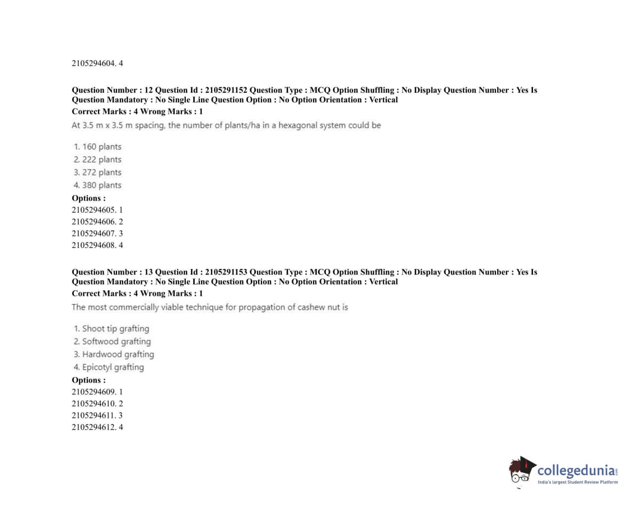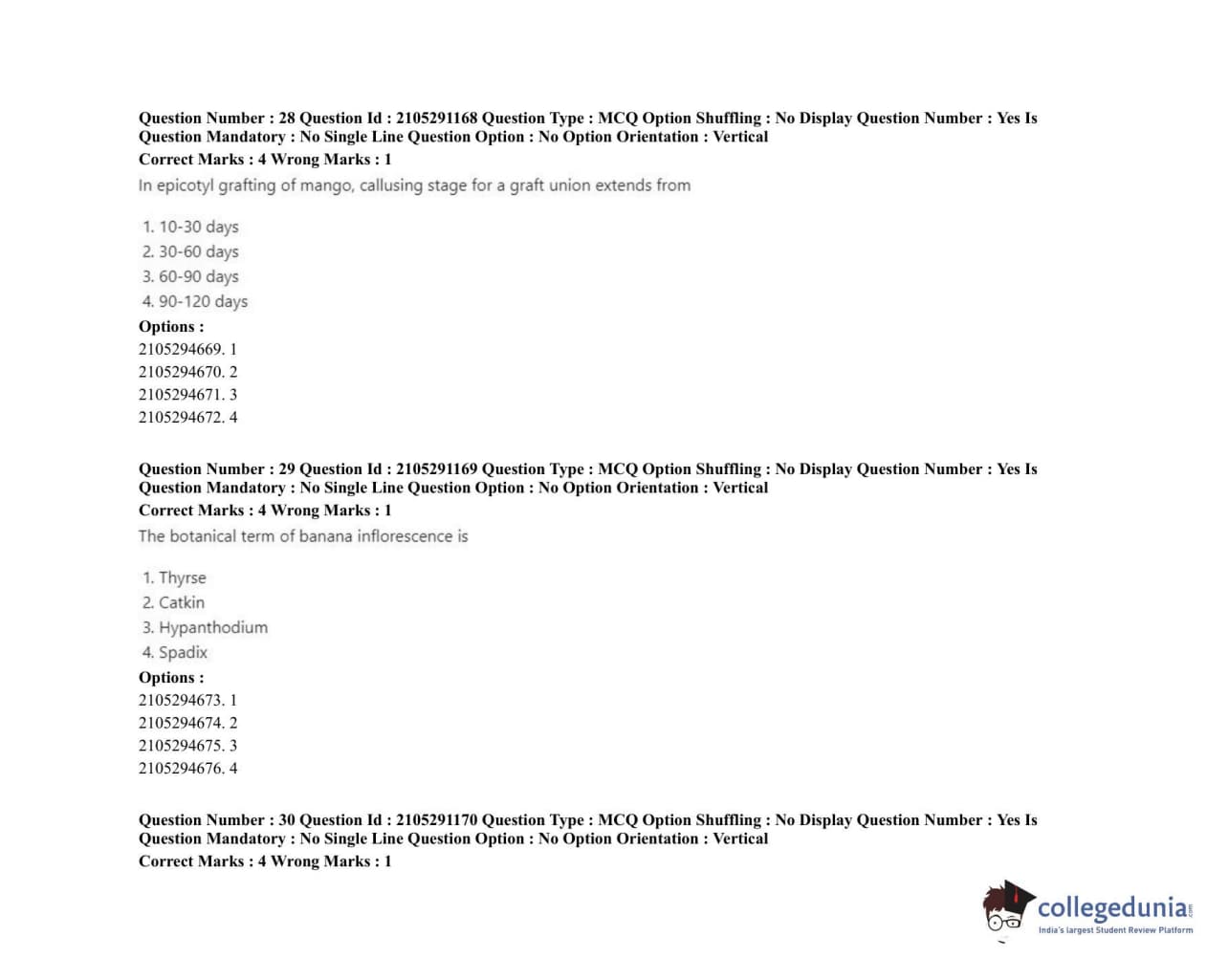 ICAR AIEEA 2020 PG - HORTICULTURE Question Paper with Answer Key PDFs Shift 1