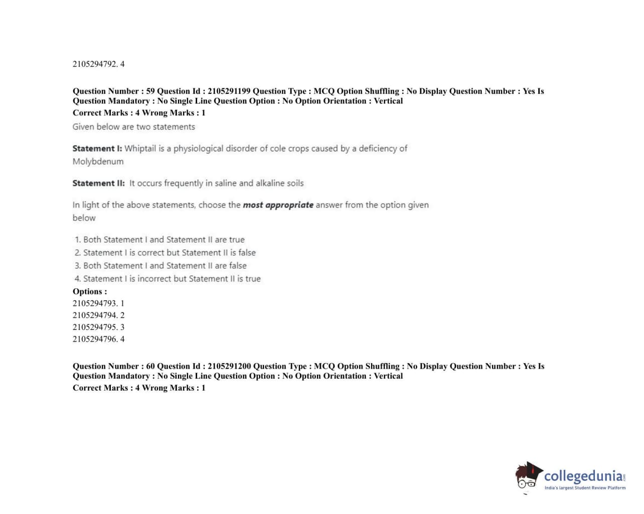 ICAR AIEEA 2020 PG - HORTICULTURE Question paper with answer key pdf conducted on September 23, 2020 in Shift 1 for Set 2 is available for download. The exam was successfully organized by National Testing Agency (NTA). The question paper comprised a total of 120 questions.
