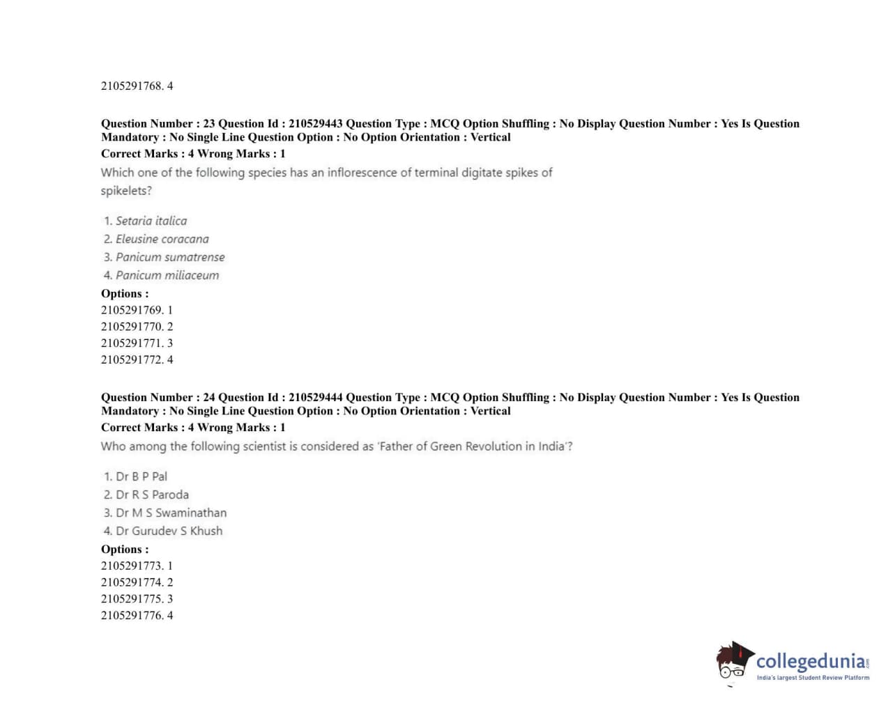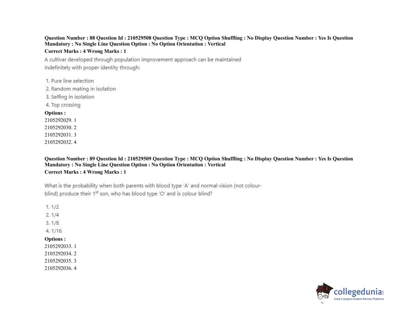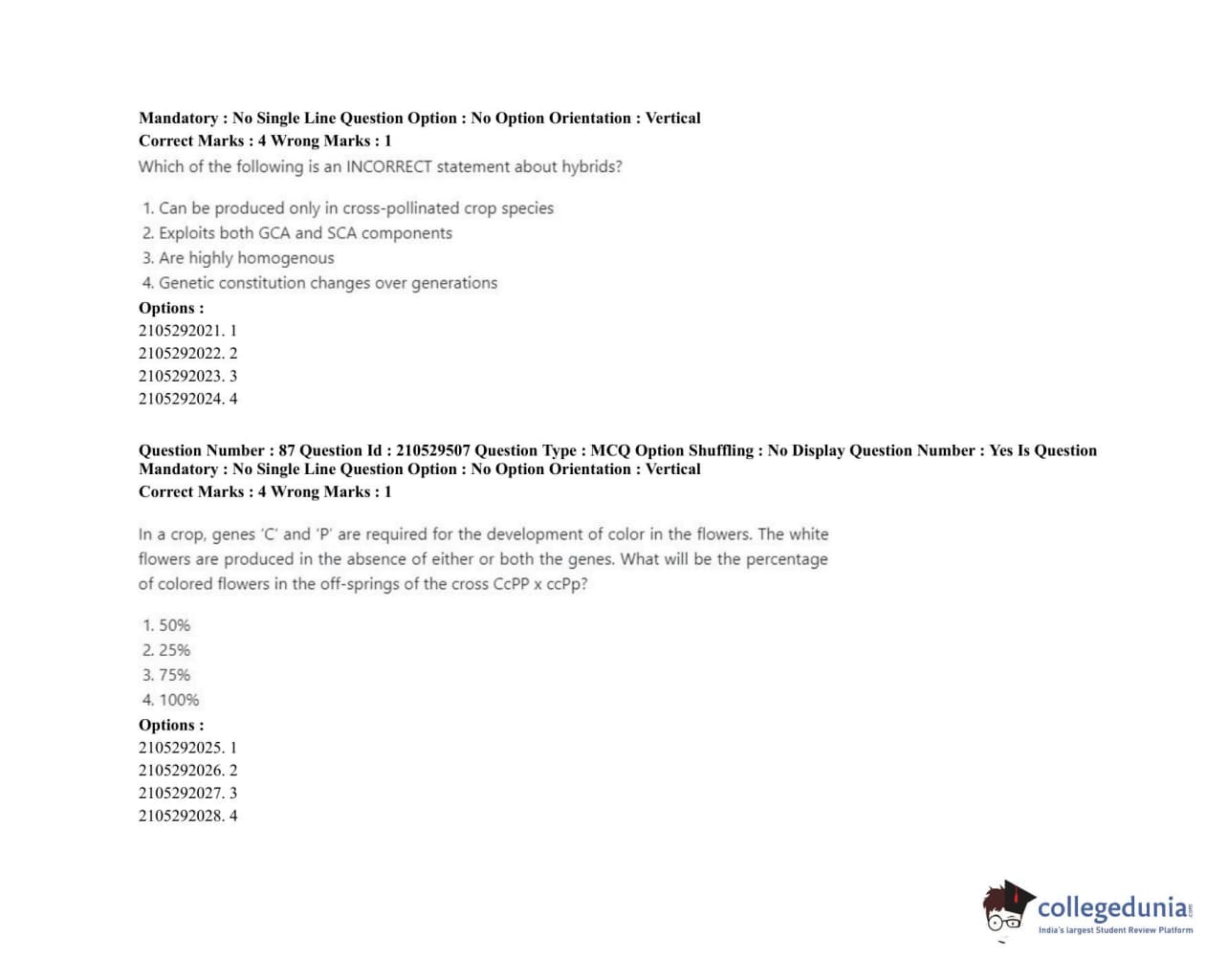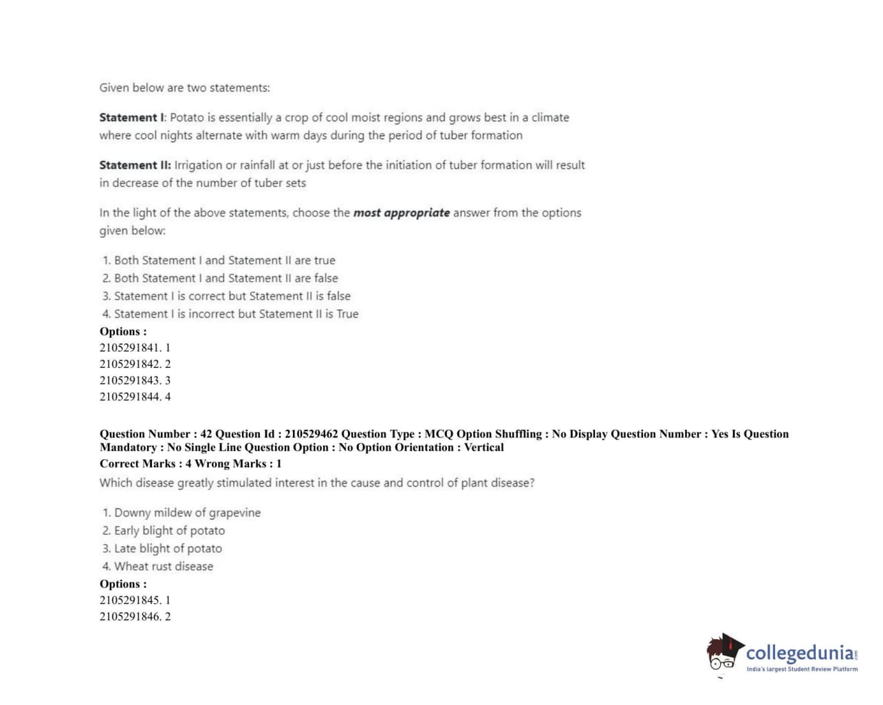 ICAR AIEEA 2020 PG - PLANT SCIENCES Question Paper with Answer Key PDFs Shift 1