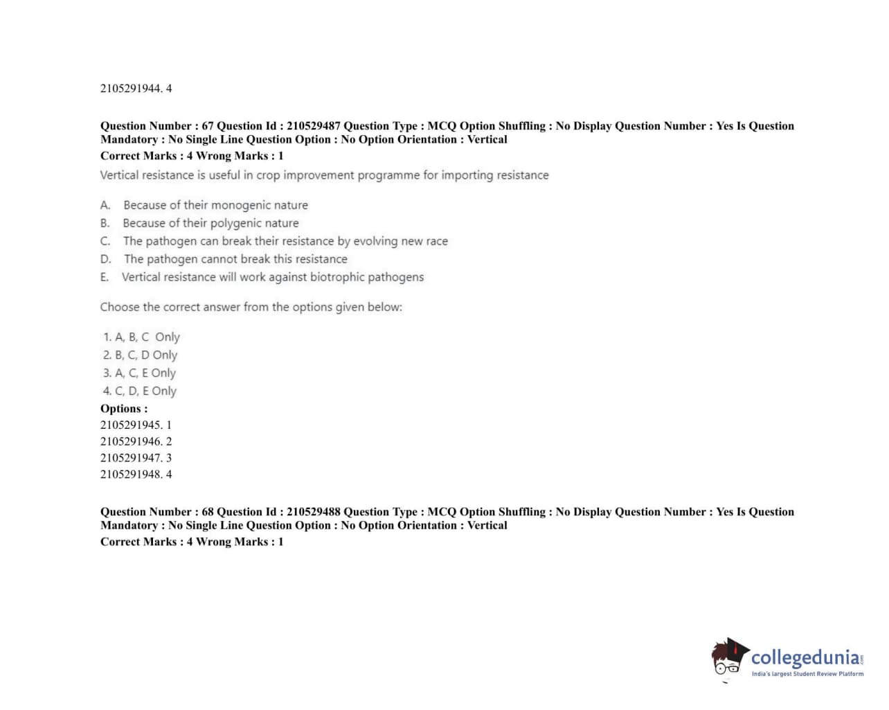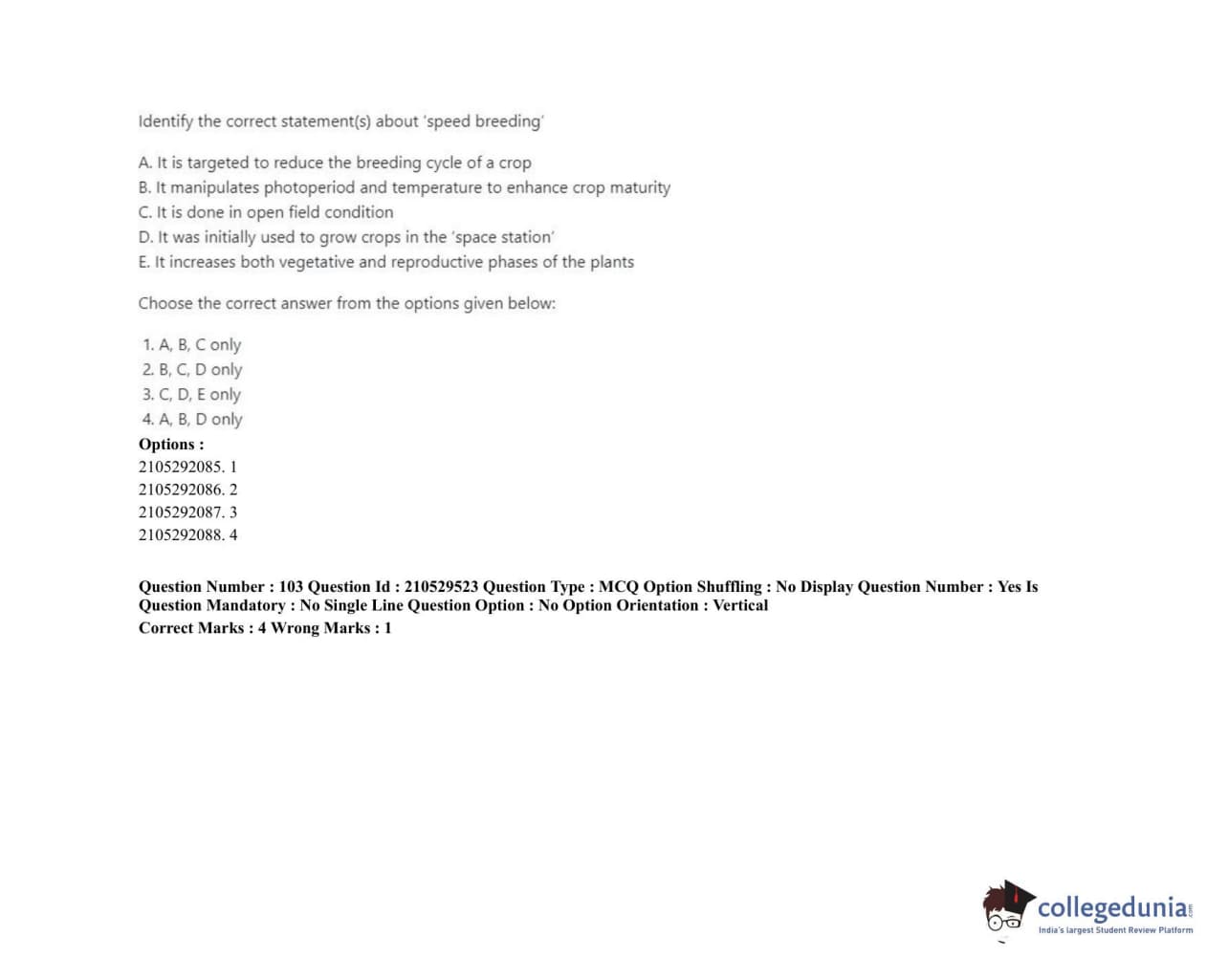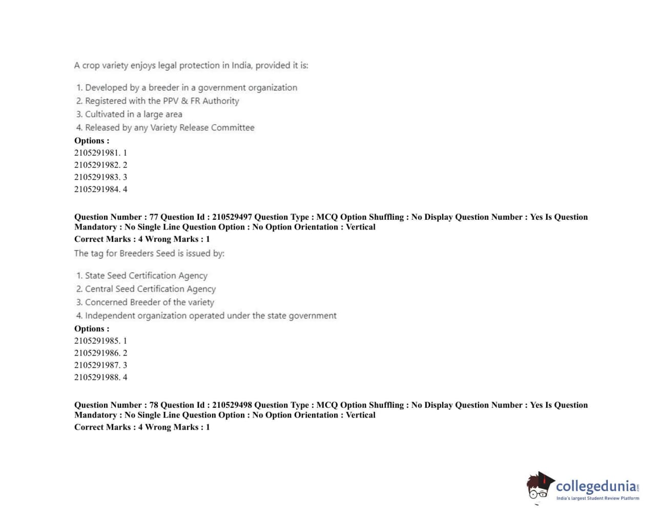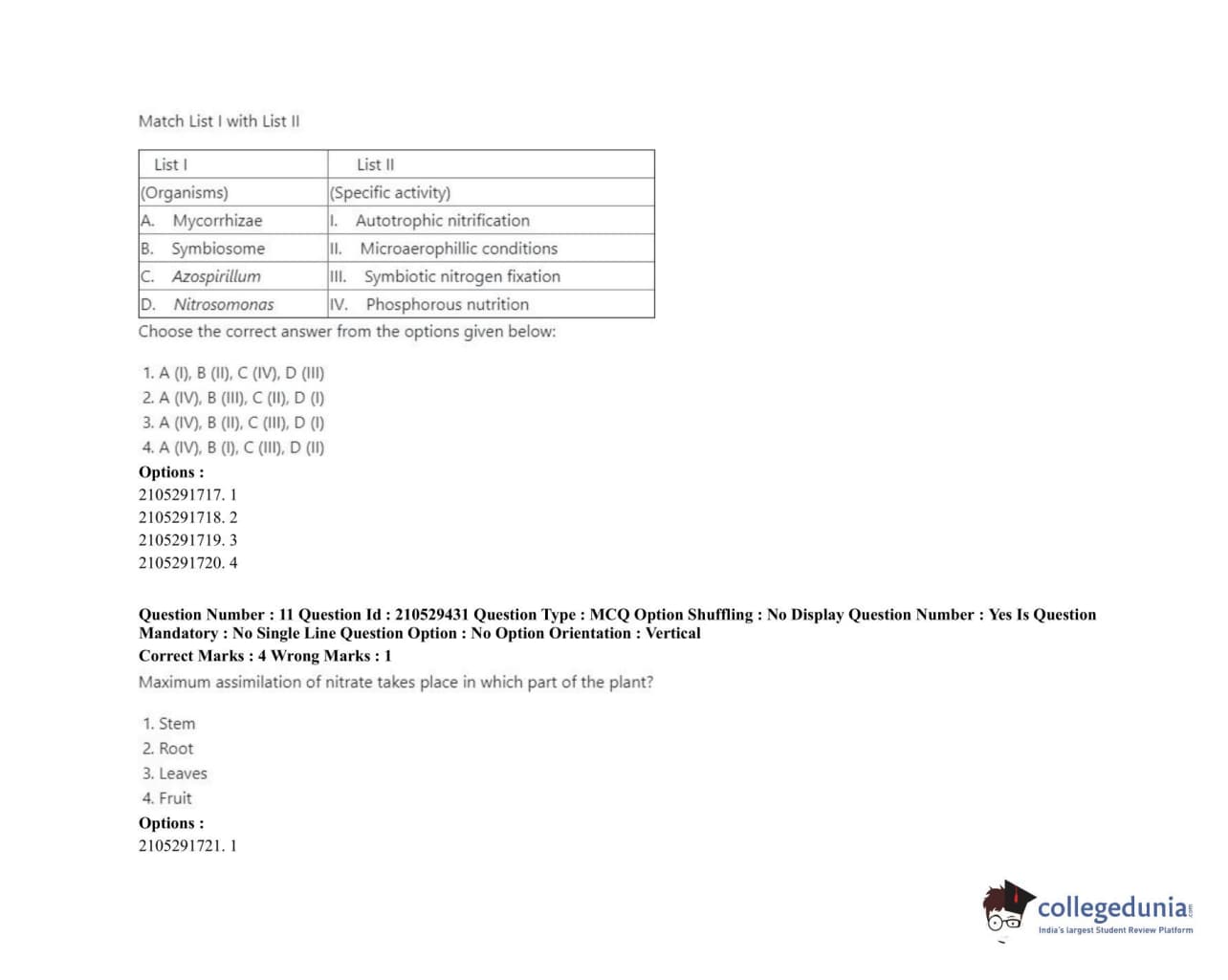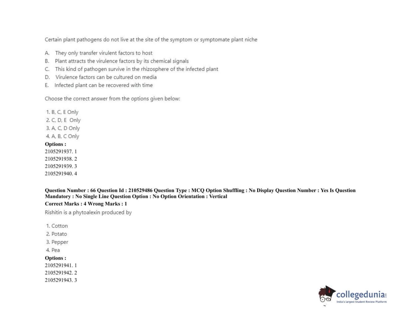 ICAR AIEEA 2020 PG - PLANT SCIENCES Question Paper with Answer Key PDFs Shift 1