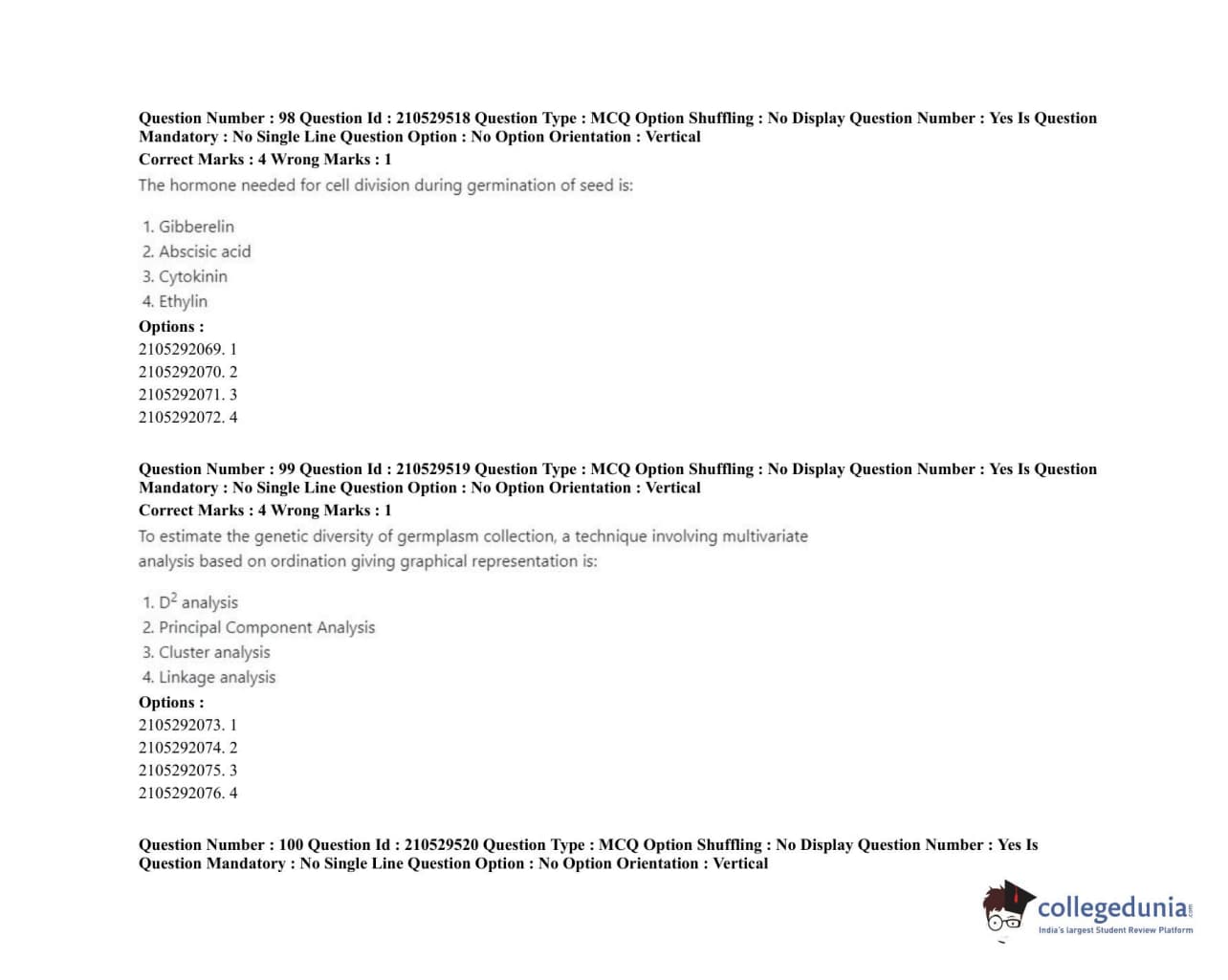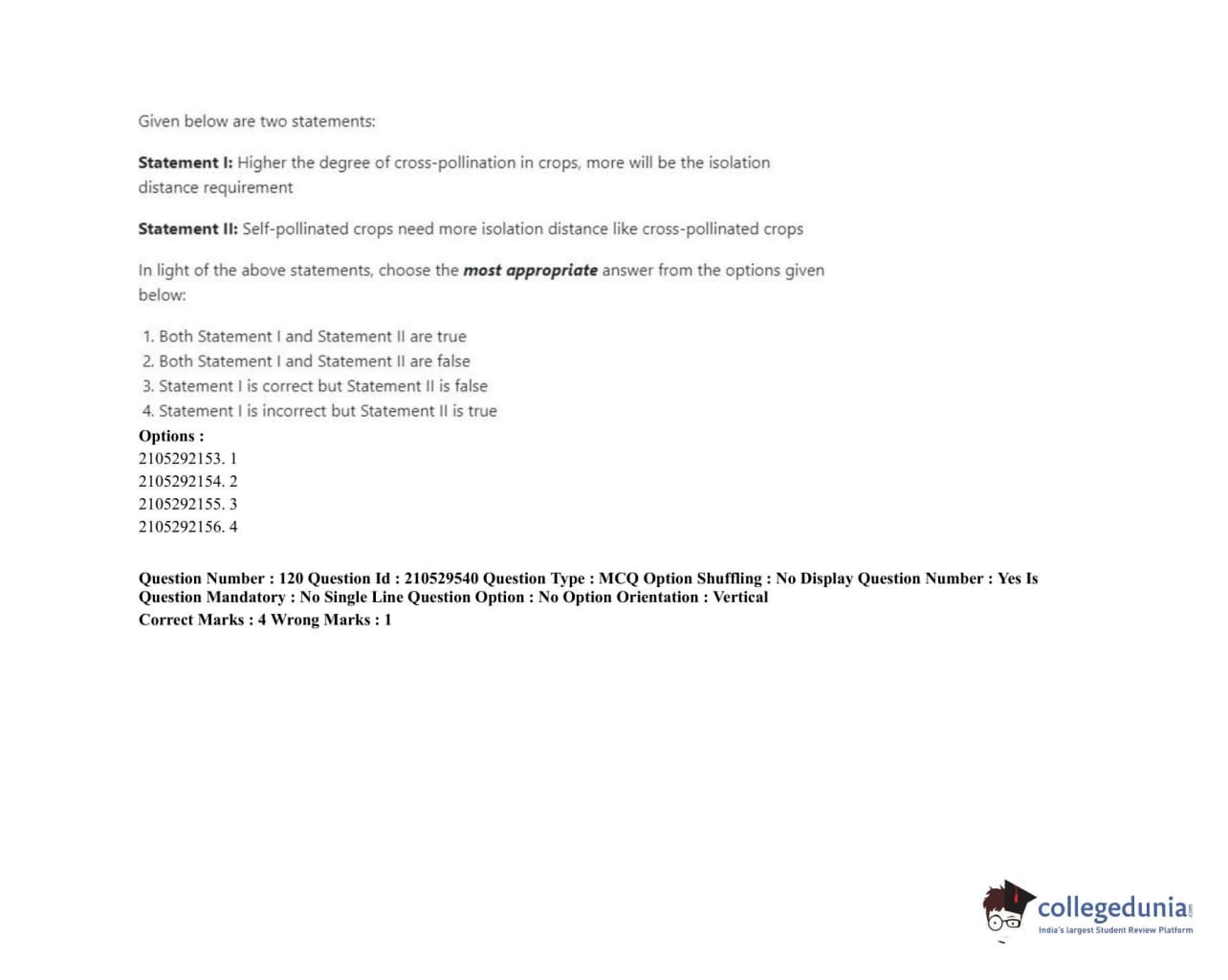 ICAR AIEEA 2020 PG - PLANT SCIENCES Question paper with answer key pdf conducted on September 23, 2020 in Shift 1 for Set 2 is available for download. The exam was successfully organized by National Testing Agency (NTA). The question paper comprised a total of 120 questions.