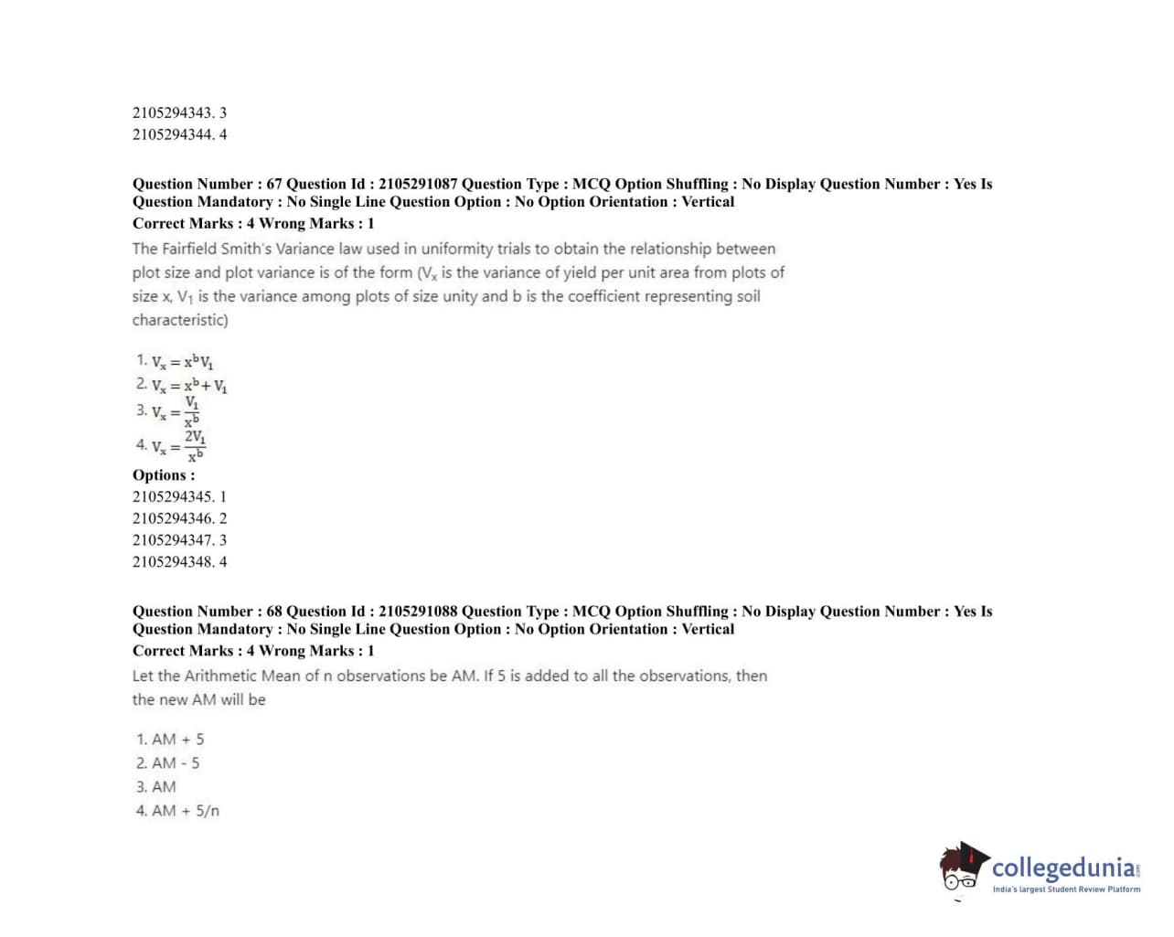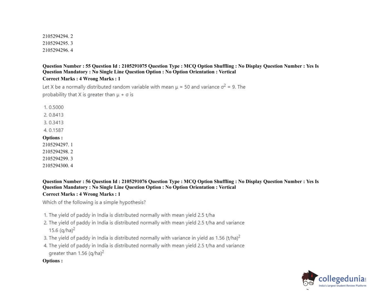 | ICAR AIEEA 2020 PG - STATISTICAL SCIENCE Question Paper PDF | ICAR AIEEA 2020 PG - STATISTICAL SCIENCE Answer Key PDF |