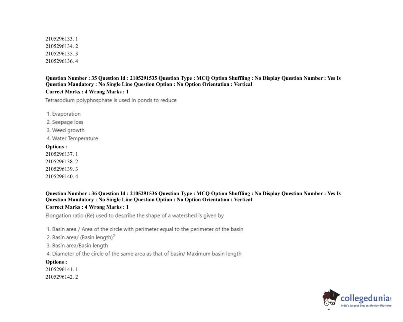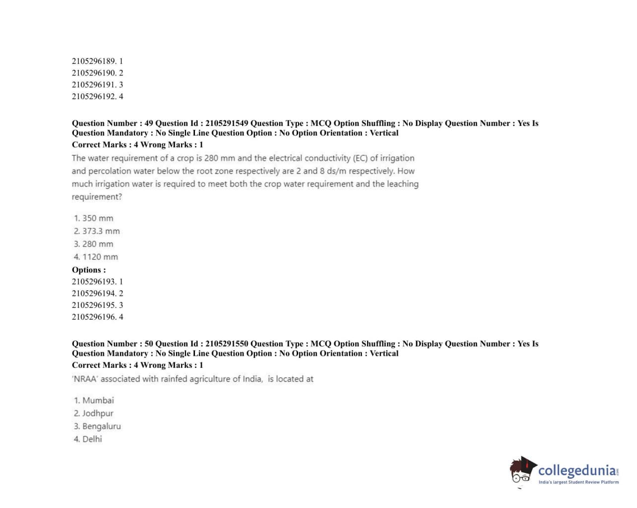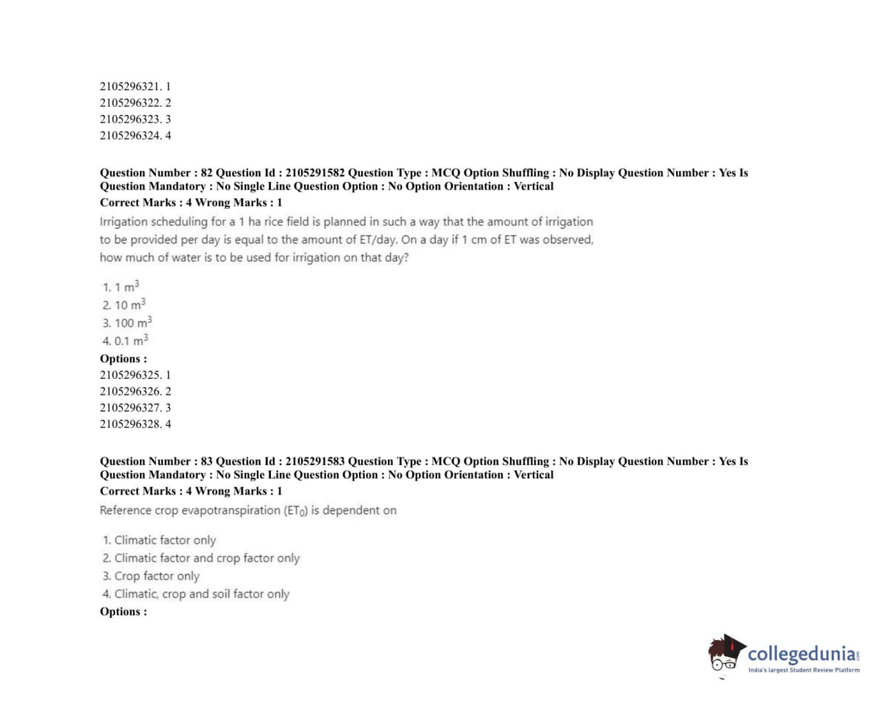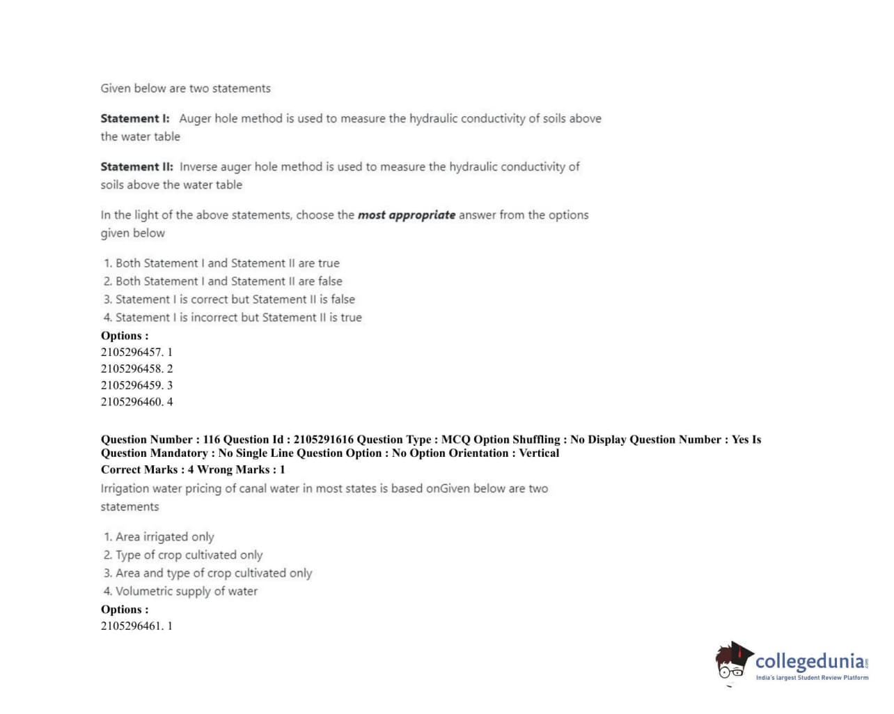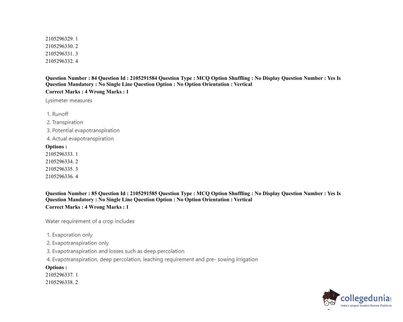 | ICAR AIEEA 2020 PG - WATER SCIENCE AND TECHNOLOGY Question Paper PDF | ICAR AIEEA 2020 PG - WATER SCIENCE AND TECHNOLOGY Answer Key PDF |