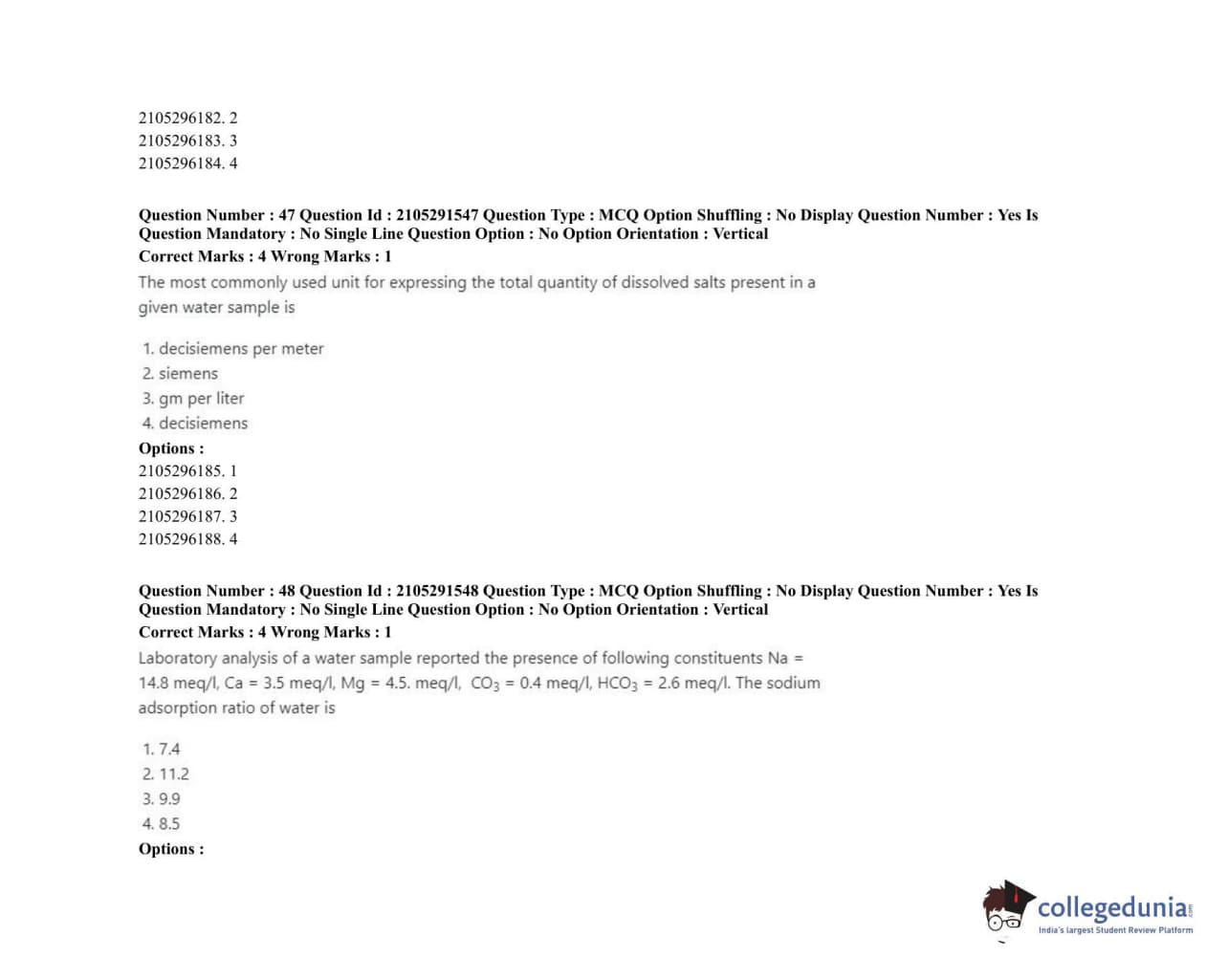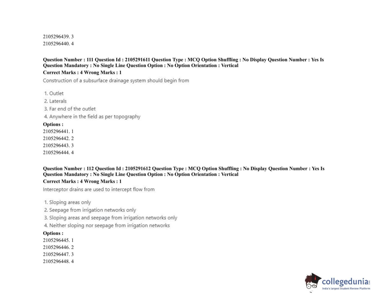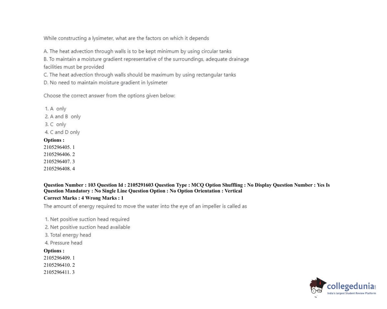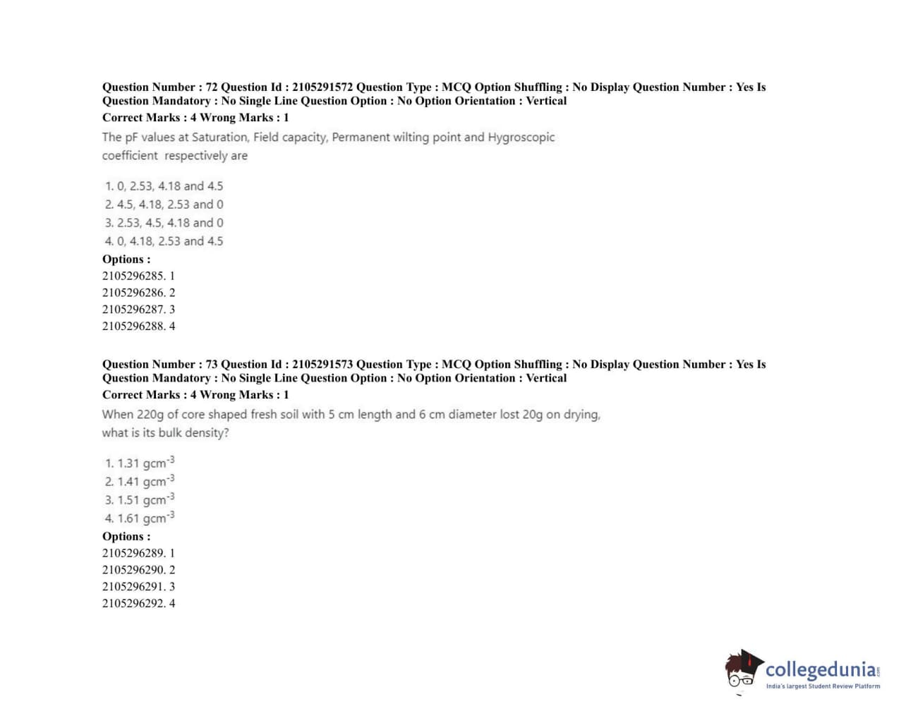 | ICAR AIEEA 2020 PG - WATER SCIENCE AND TECHNOLOGY Question Paper PDF | ICAR AIEEA 2020 PG - WATER SCIENCE AND TECHNOLOGY Answer Key PDF |