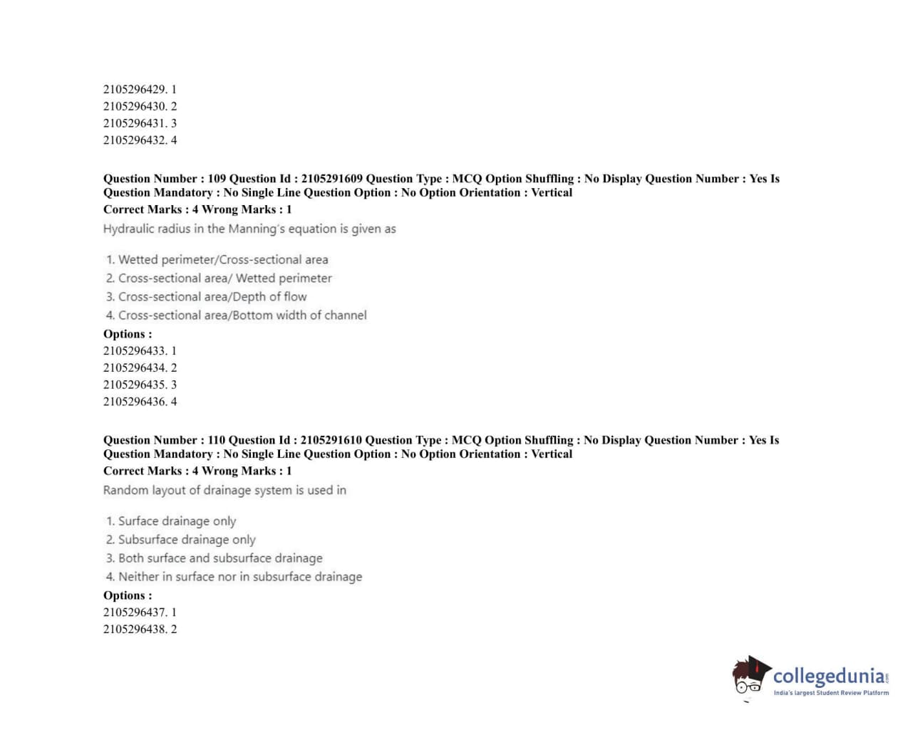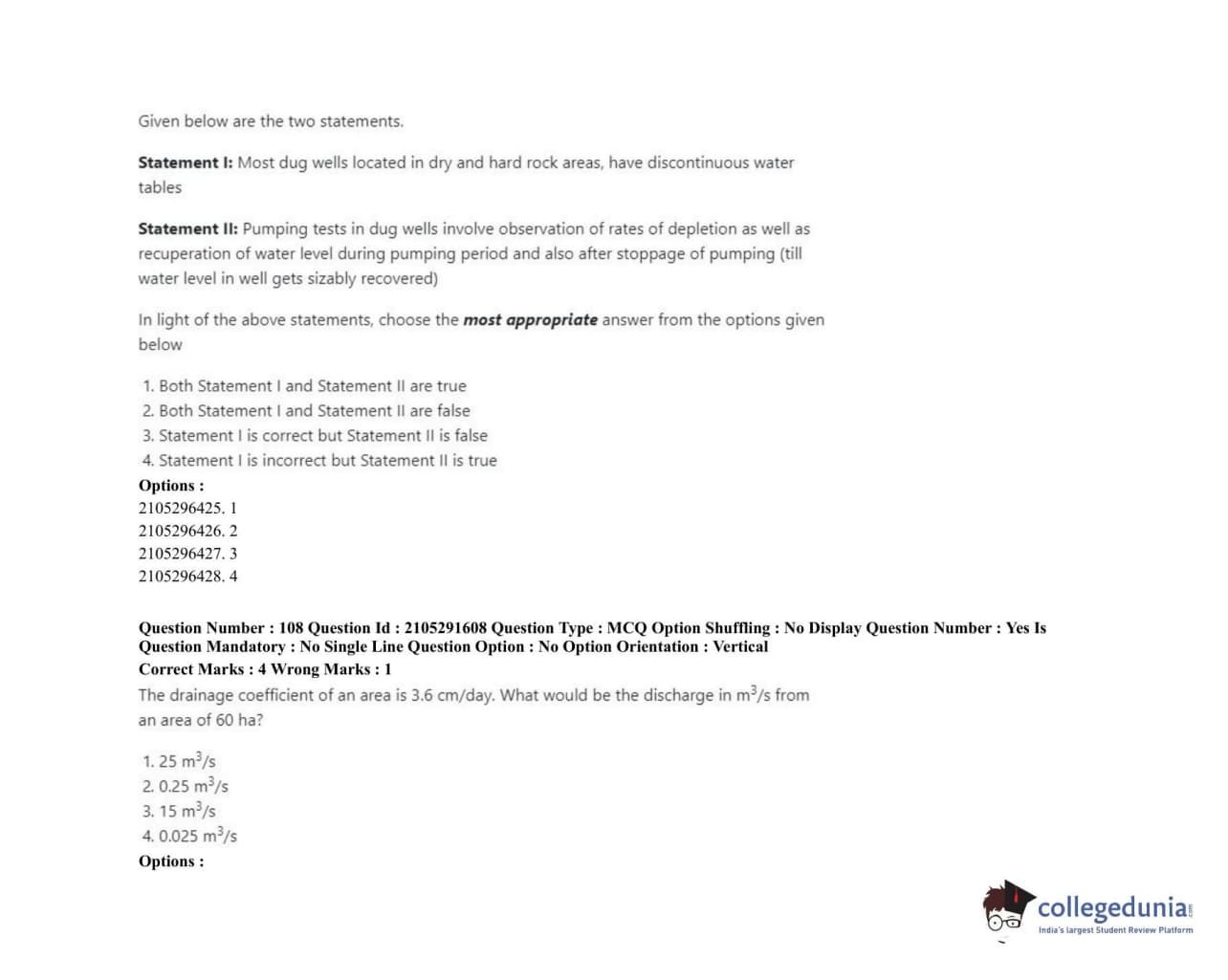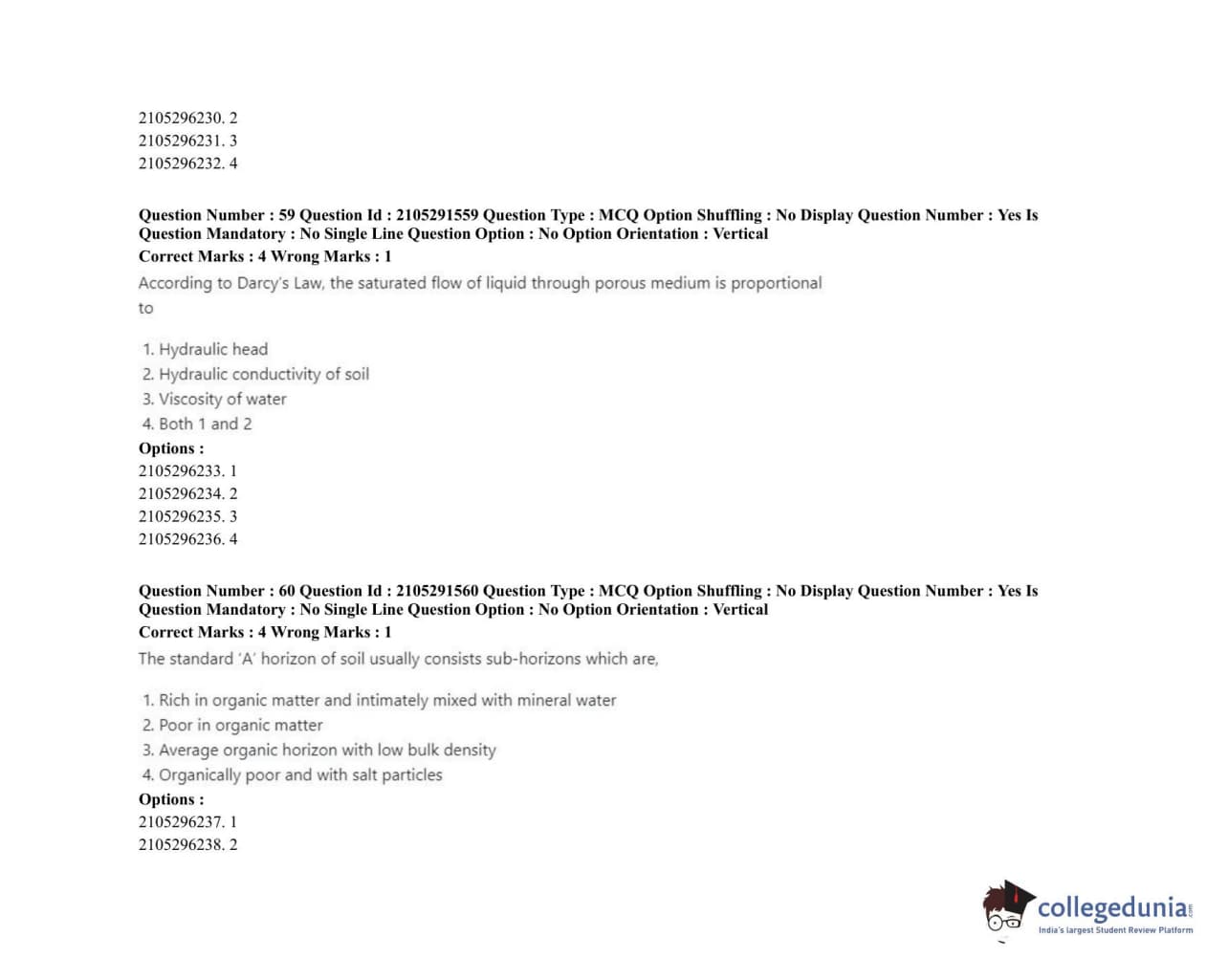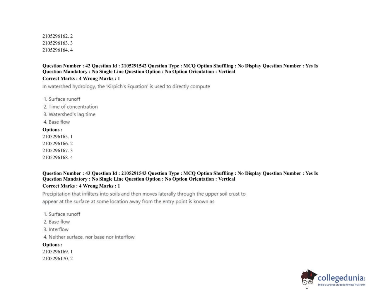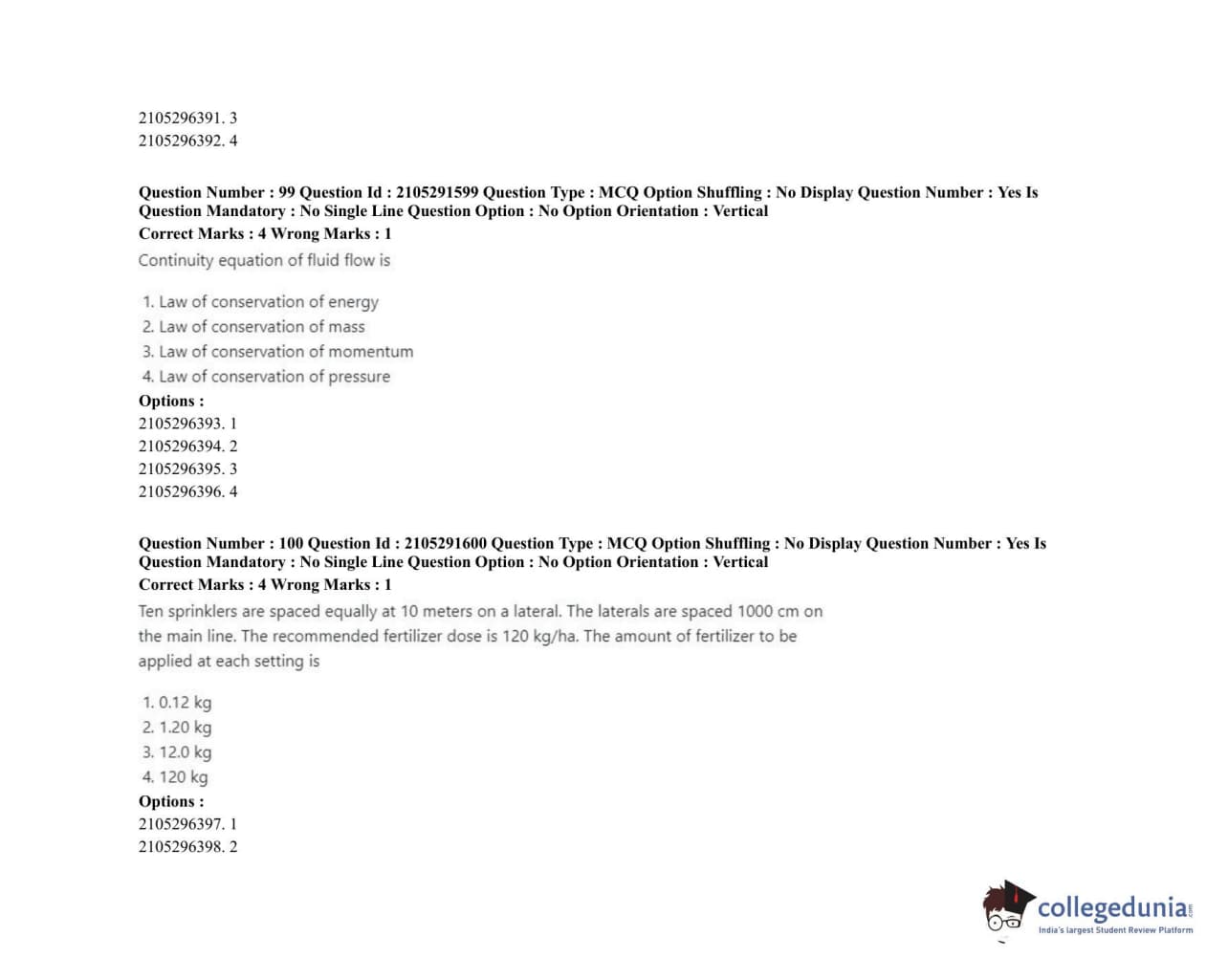 | ICAR AIEEA 2020 PG - WATER SCIENCE AND TECHNOLOGY Question Paper PDF | ICAR AIEEA 2020 PG - WATER SCIENCE AND TECHNOLOGY Answer Key PDF |