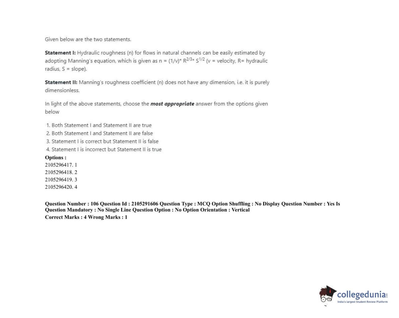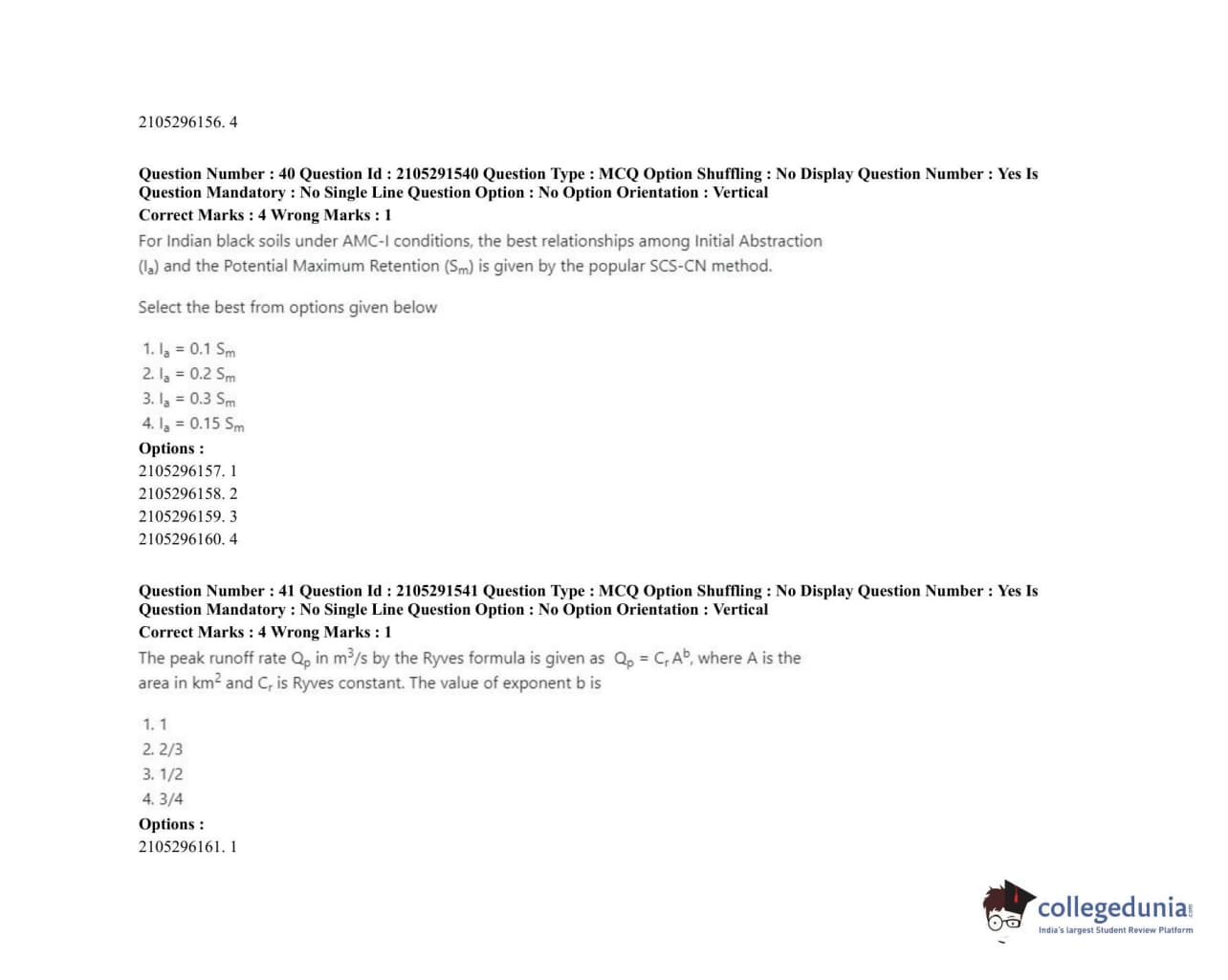 ICAR AIEEA 2020 PG - WATER SCIENCE AND TECHNOLOGY Question paper with answer key pdf conducted on September 23, 2020 in Shift 1 for Set 2 is available for download. The exam was successfully organized by National Testing Agency (NTA). The question paper comprised a total of 120 questions.