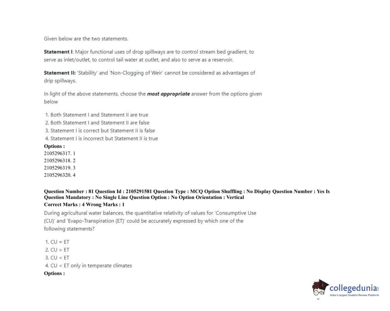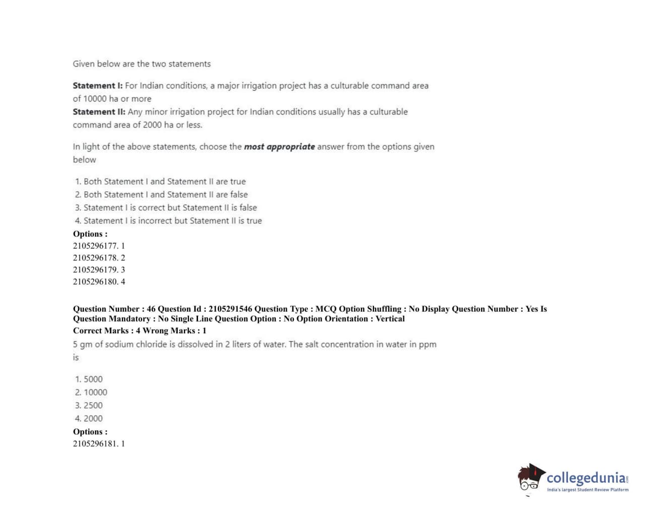 ICAR AIEEA 2020 PG - WATER SCIENCE AND TECHNOLOGY Question Paper with Answer Key PDFs Shift 1