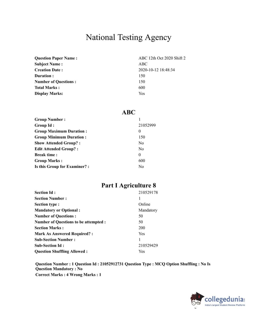 ICAR AIEEA 2020 UG - ABC Question Paper with Answer Key PDFs