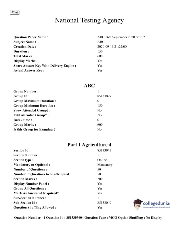 ICAR AIEEA 2020 UG - ABC Question Paper with Answer Key PDFs